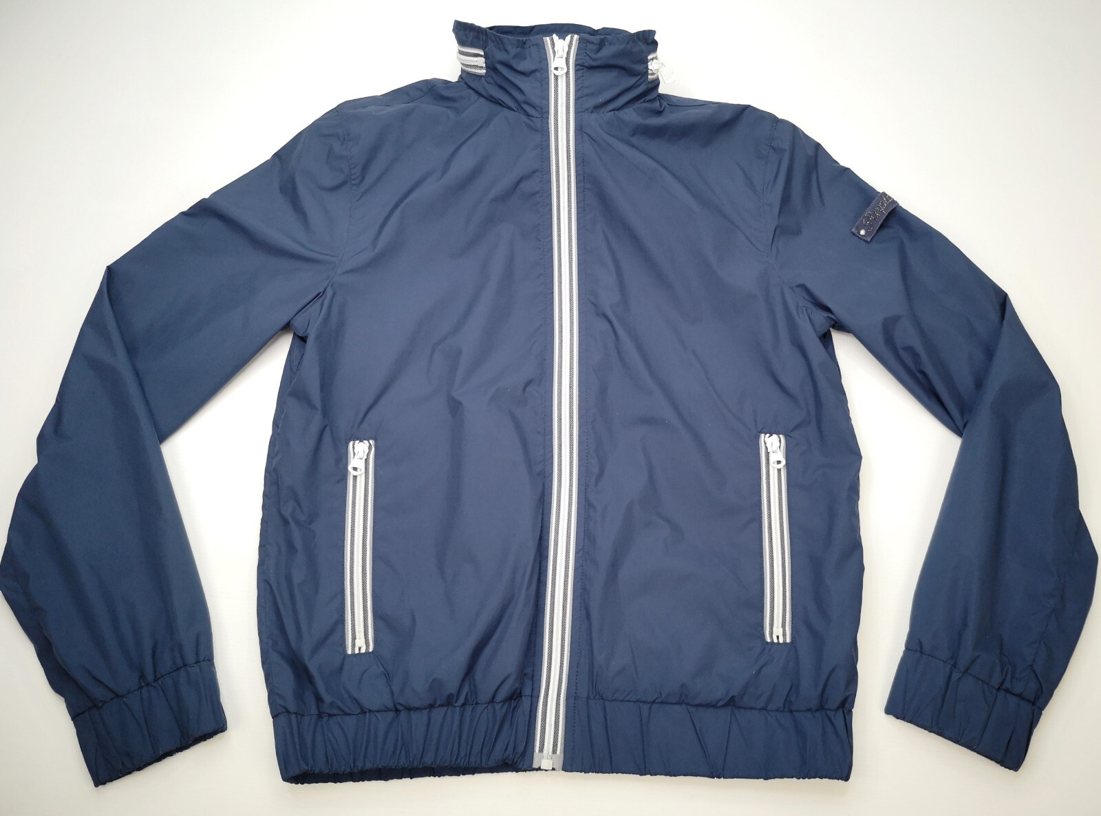________________________________________Marke: ChevignonFarbe: dunkelblauGröße: M (S) Zustand: getragen_______________________________________Beschreibung:Die Jacke wurden getragen und befindet sich in einem sehr schönen Zustand. Außen mit ganz leichten Trage- und Gebrauchsspuren und super gut erhalten.Innenfutter in einem sehr guten Zustand.Ebenfalls die Bündchen, sehr sehr gut erhalten !Reißverschluß und Druckknöpfe an den Taschen funktionieren tadellos. In der Jacke ist die Größe M angegeben. Im Vergleich mit anderen Chevignon Jacken von uns, fällt sie etwas kleiner und tendiert leicht zur Größe S.Typisch der Schnitte der damaligen Zeit ist sie im Brustbereich eher breit und dafür vom Rücken her kürzer geschnitten.Bitte die Maße prüfen für eine perfekte Passform._______________________________________Die ca. Maße sind wie folgt:Brustbreite von Achsel zu Achsel: 58cmÄrmellänge ab Höhe Schulter: 66cmRückenlänge inkl. Kragen und Bund: 63cm_______________________________________Material lt. Etikett:Außen / Innen: 100% Nylon_______________________________________Pflegeanleitung:Maschinenwäsche 30 Grad