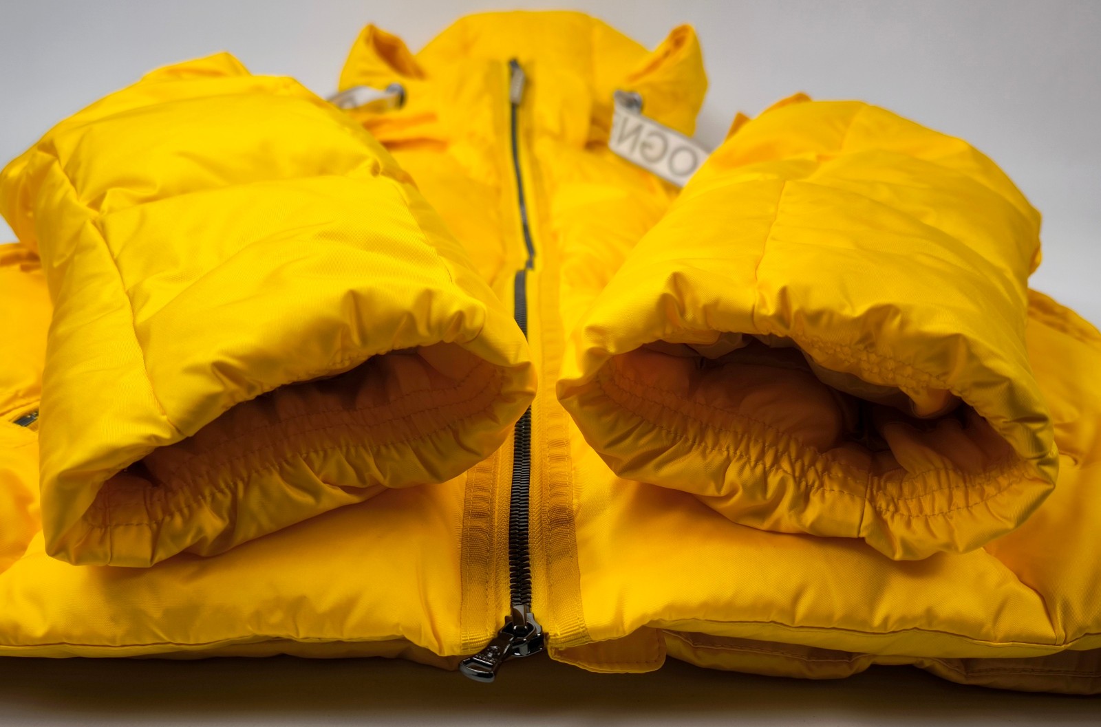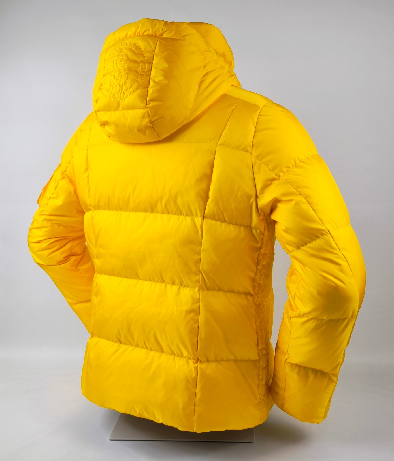 Kleines Logo am linken Oberarm und Logostick hinter dem Hauptreißverschluß.