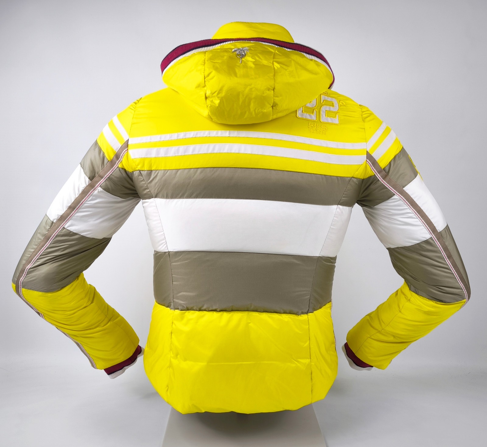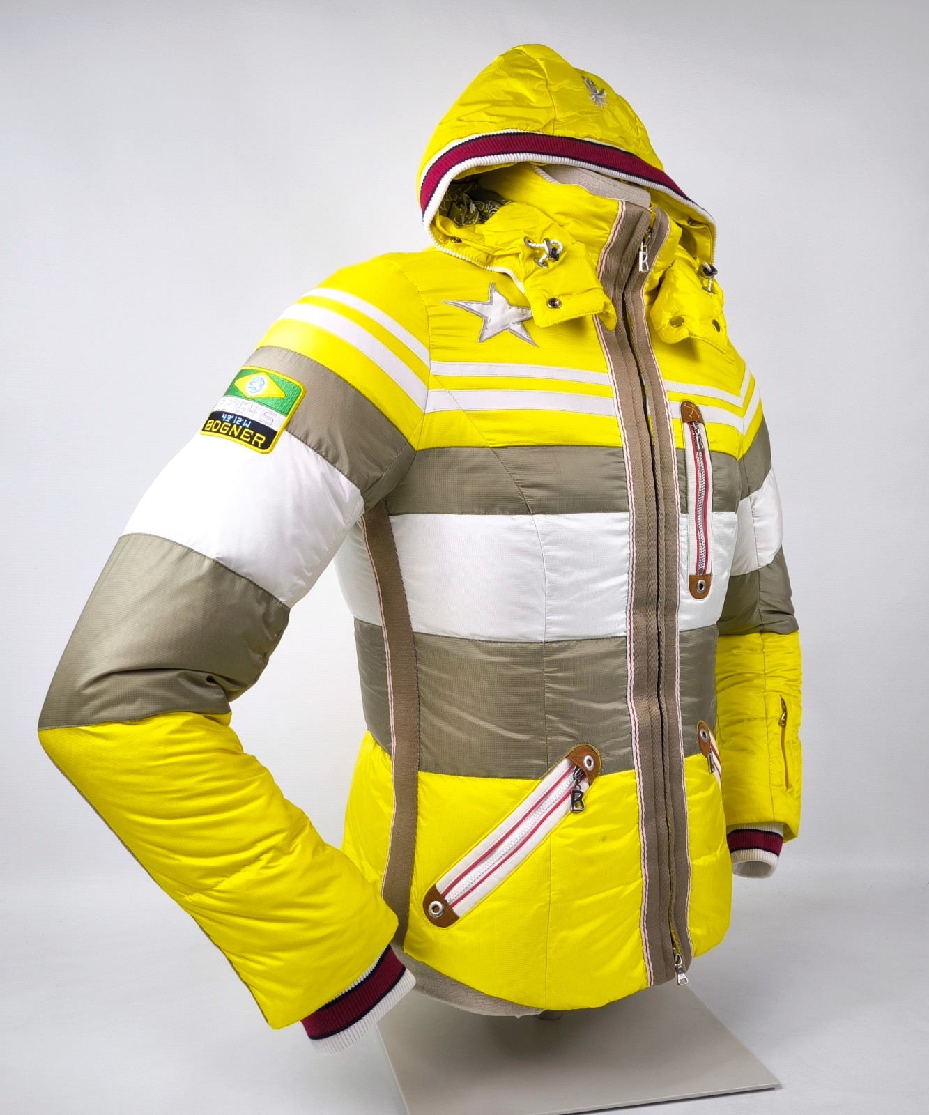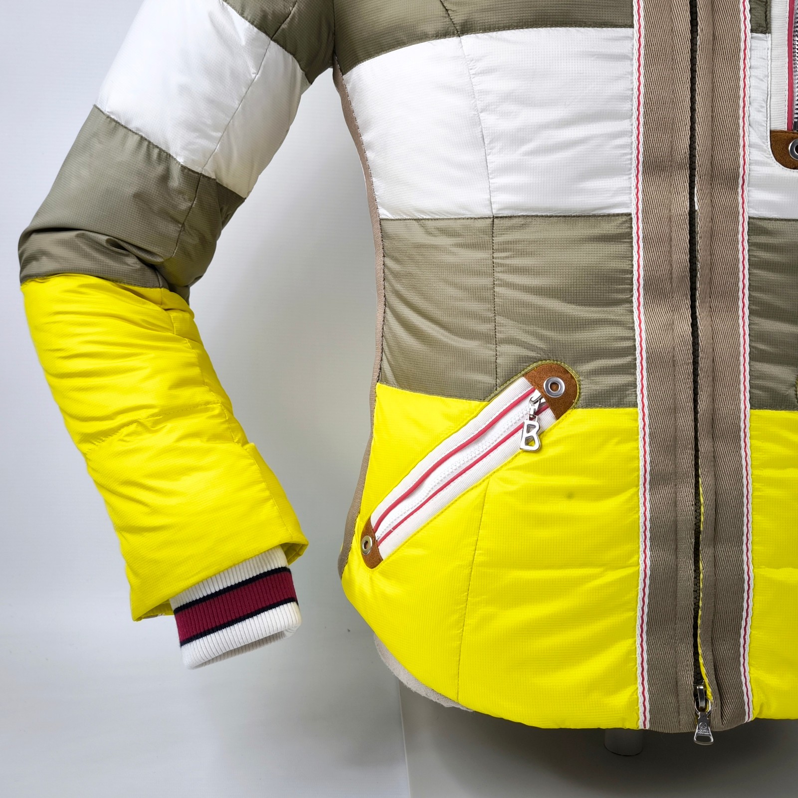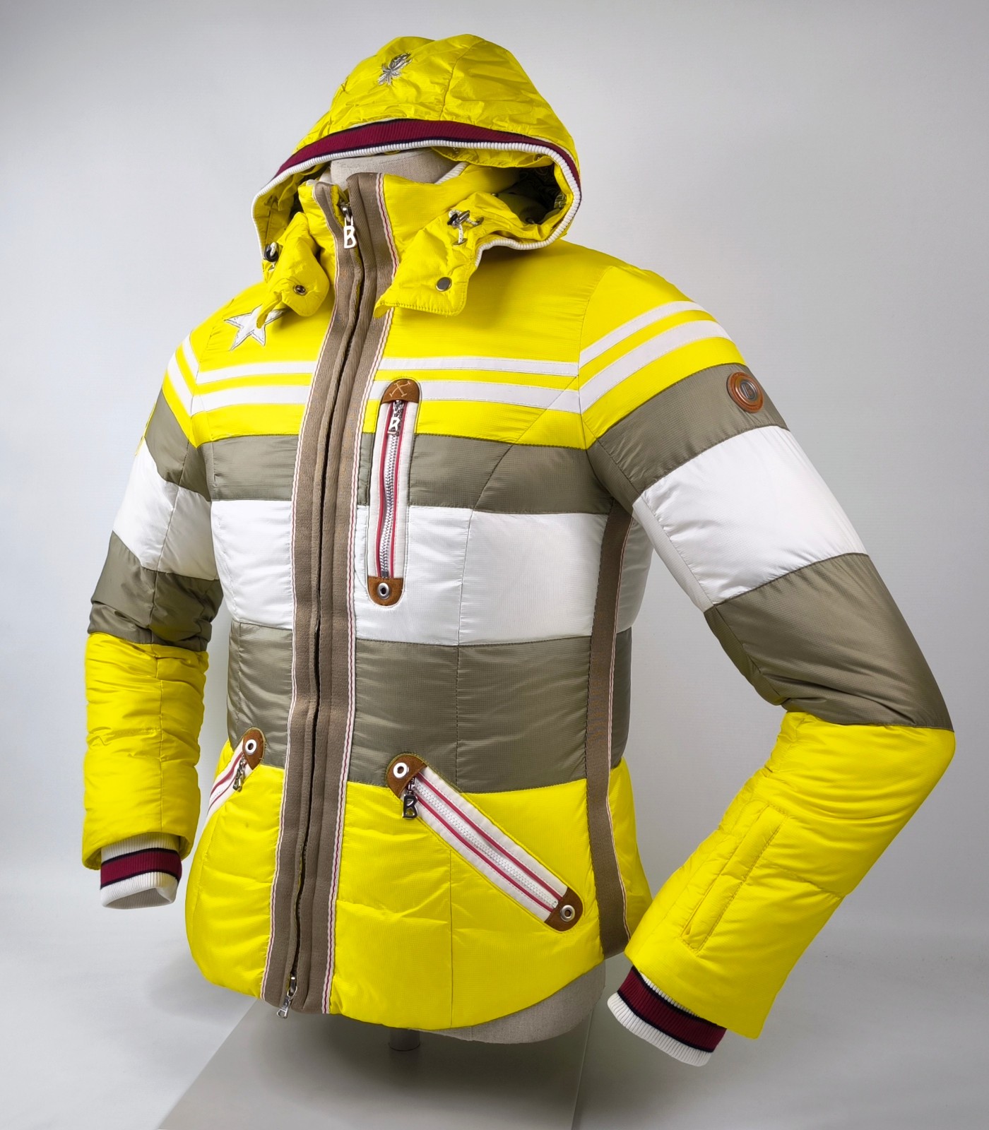 Preisvorschlag für Bogner Skijacke Daunenjacke Damen Gr. 38 (M) gelb-weiß-taupe abnehmbare Kapuze
