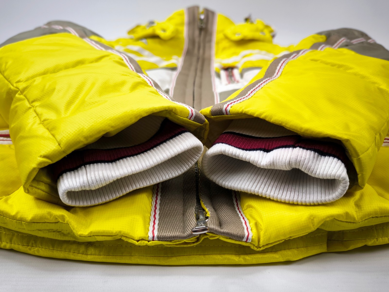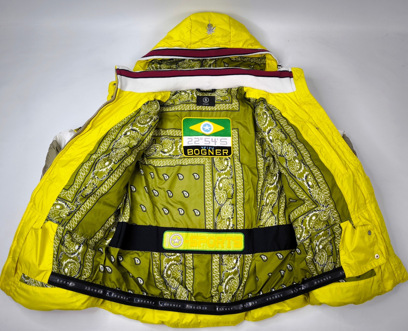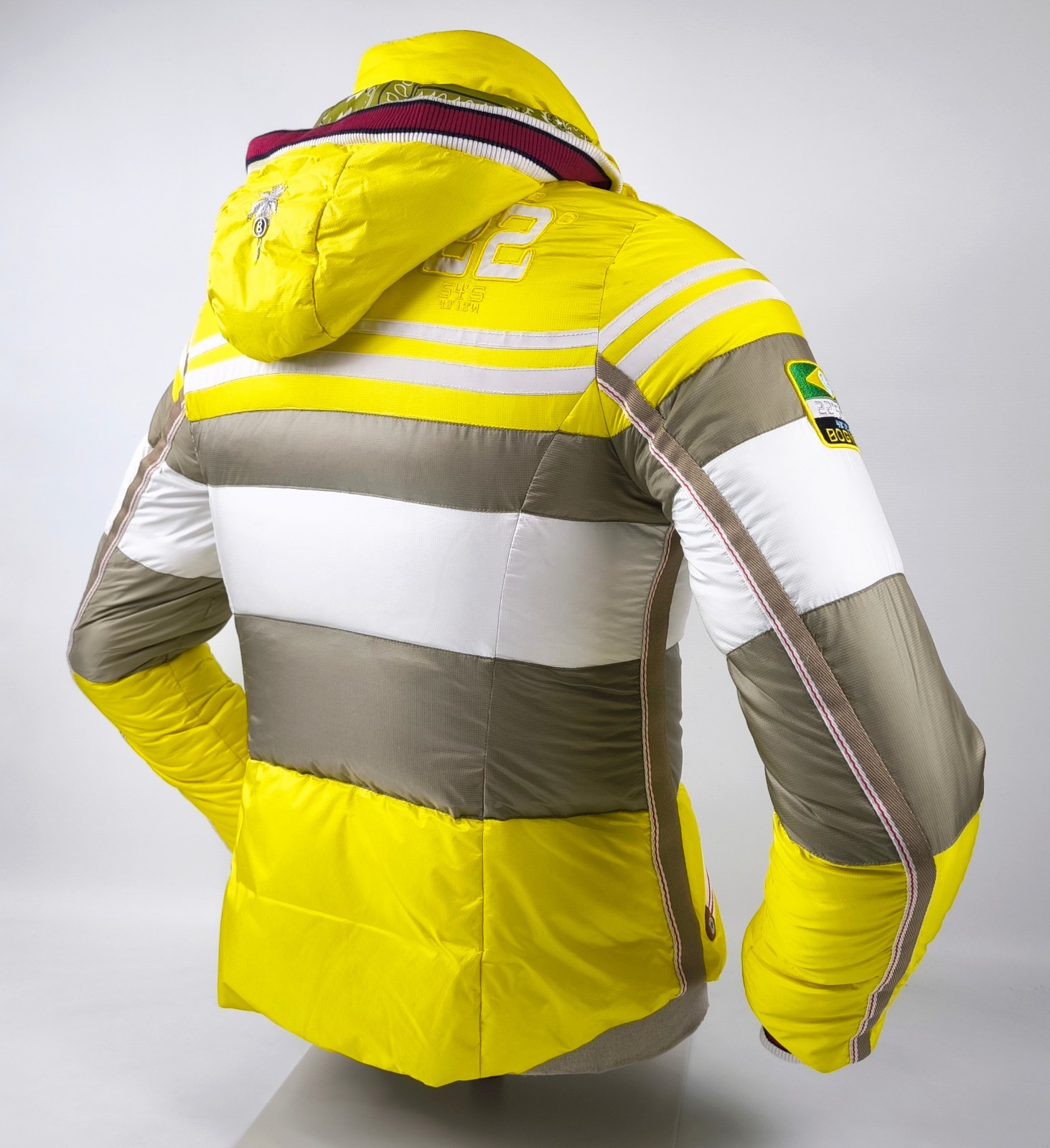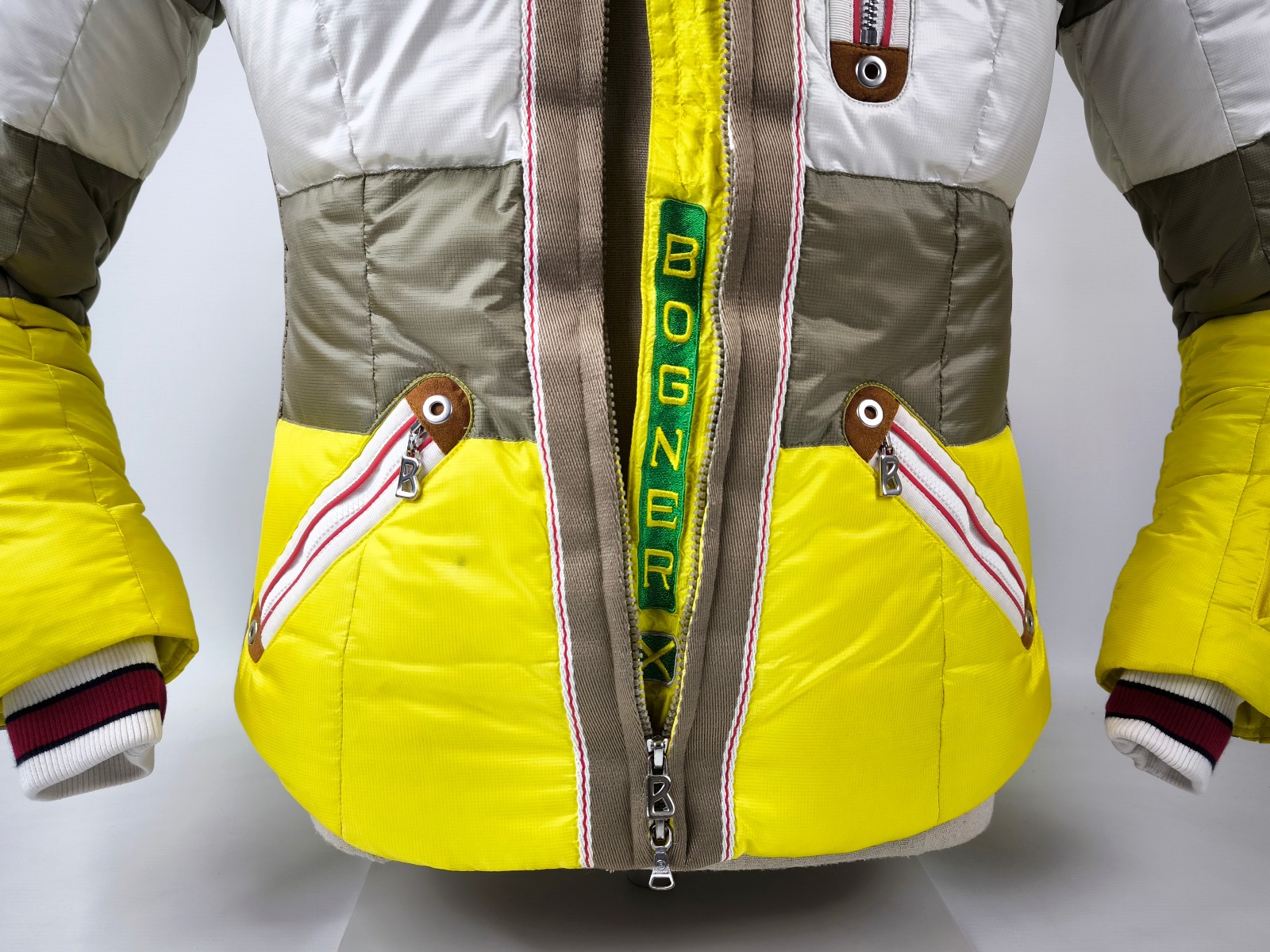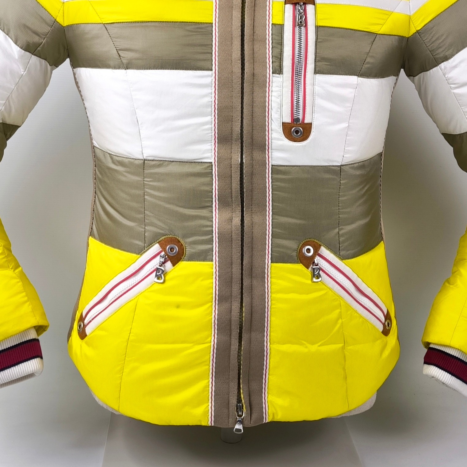 Preisvorschlag für Bogner Skijacke Daunenjacke Damen Gr. 38 (M) gelb-weiß-taupe abnehmbare Kapuze