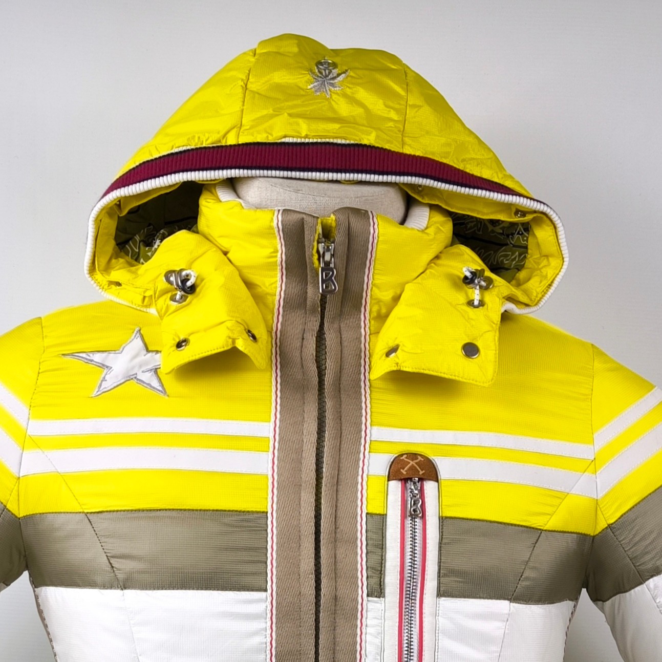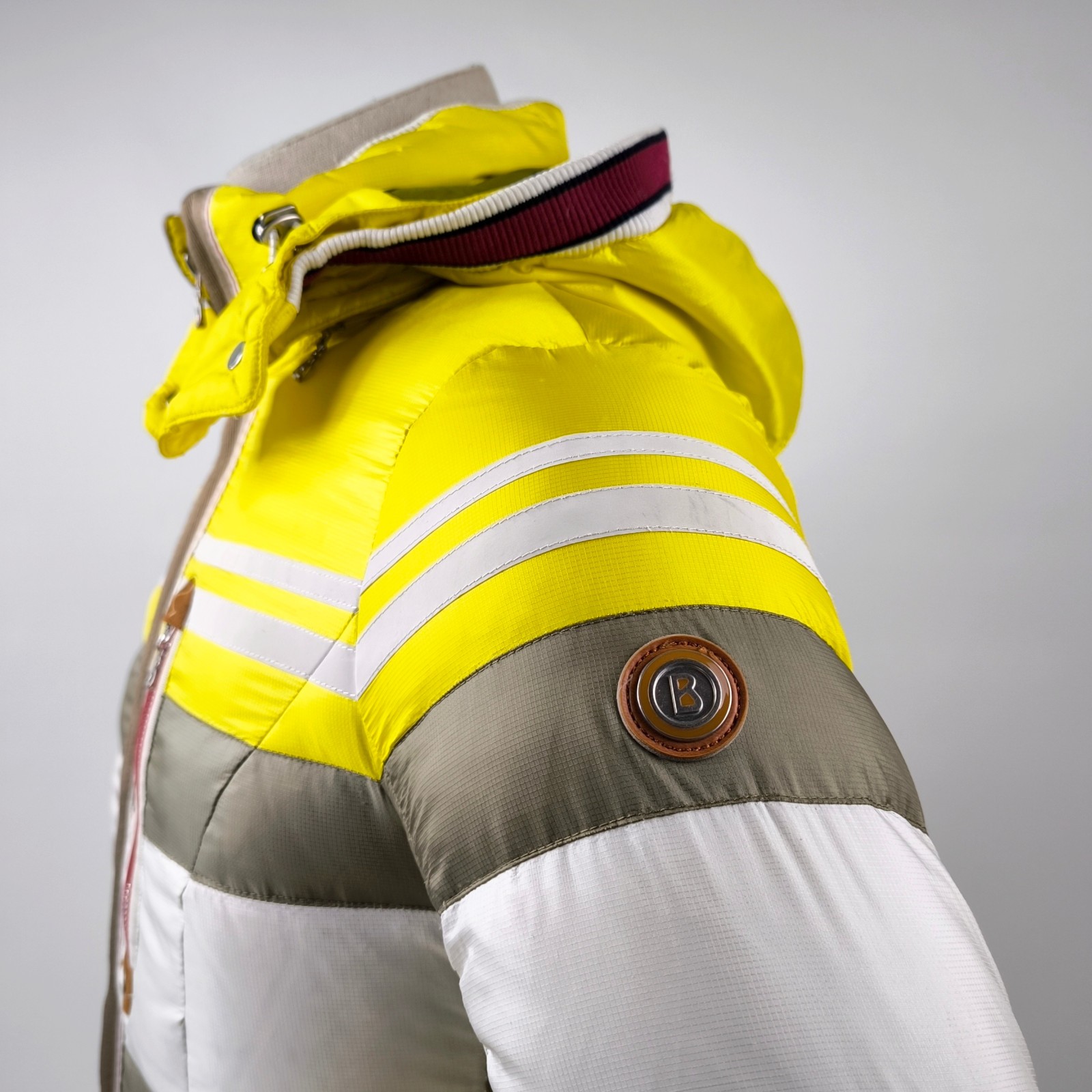 Bogner Skijacke Daunenjacke Damen Gr. 38 (M) gelb-weiß-taupe abnehmbare Kapuze