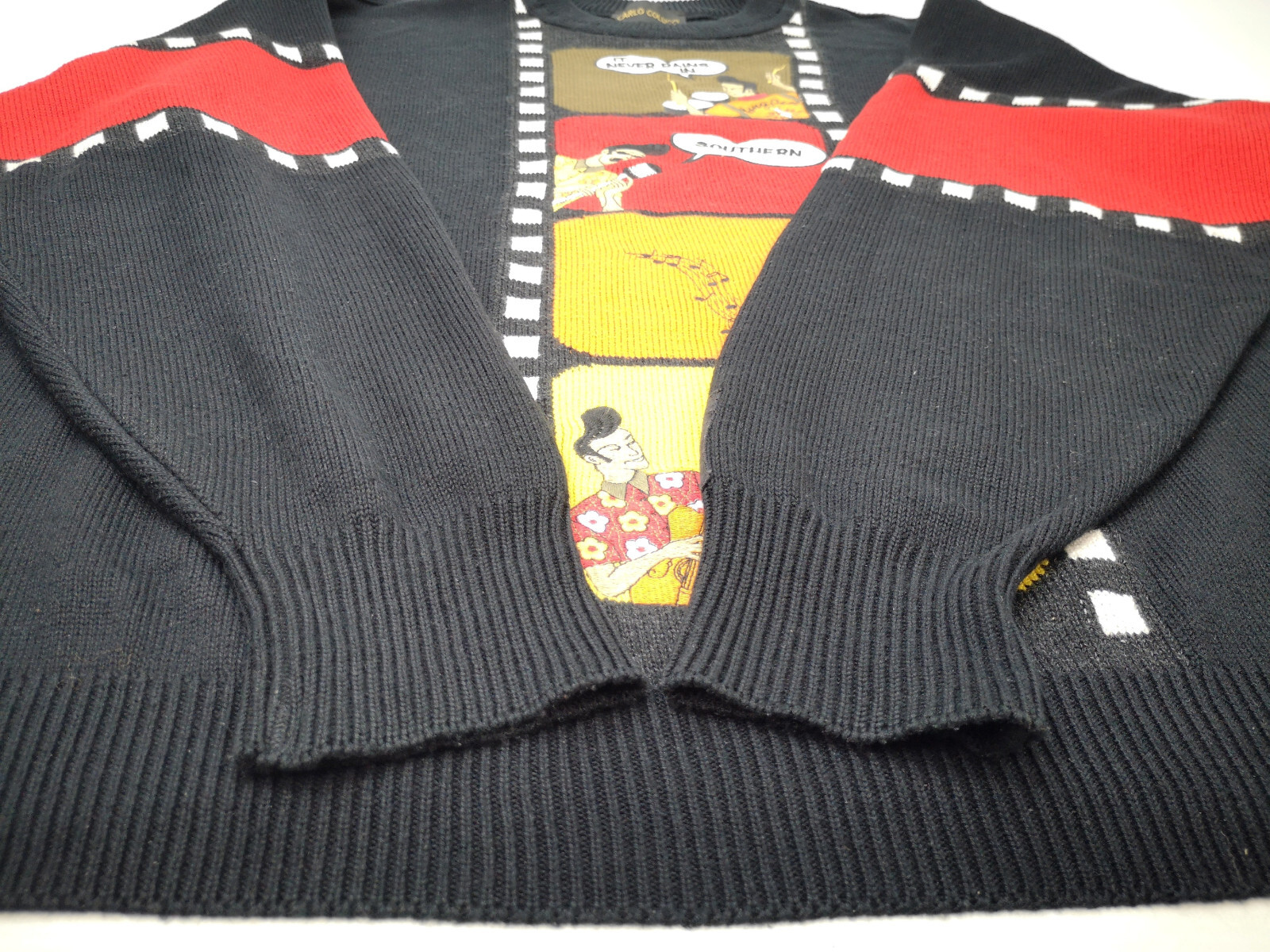 ________________________________________Marke: J c de CastelbajacGröße: 54 (XL)Farbe: mehrfarbig Zustand: neuwertig________________________________________Beschreibung: Der Pullover befindet sich in einem neuwertigen Zustand.Es sind keine Gebrauchsspuren zu erkennen.Wahnsinnig toller Strickpullover mit hochwertigen Materialien.Sehr seltenes Motiv der 1990er Jahre. Bitte die Maße prüfen für eine perfekte Passform.________________________________________Die ca. Maße sind wie folgt:Brustbreite von Achsel zu Achsel: 63cmÄrmellänge ab Höhe Schulter: 69cmRückenlänge inkl. Kragen: 71cm________________________________________Material lt. Innenetikett:Oberstoff: 35% Schurwolle / 25% Polyacryl / 20% Mohair / 20% Polyamid________________________________________ Pflegeanleitung:professionelle Textilreinigung