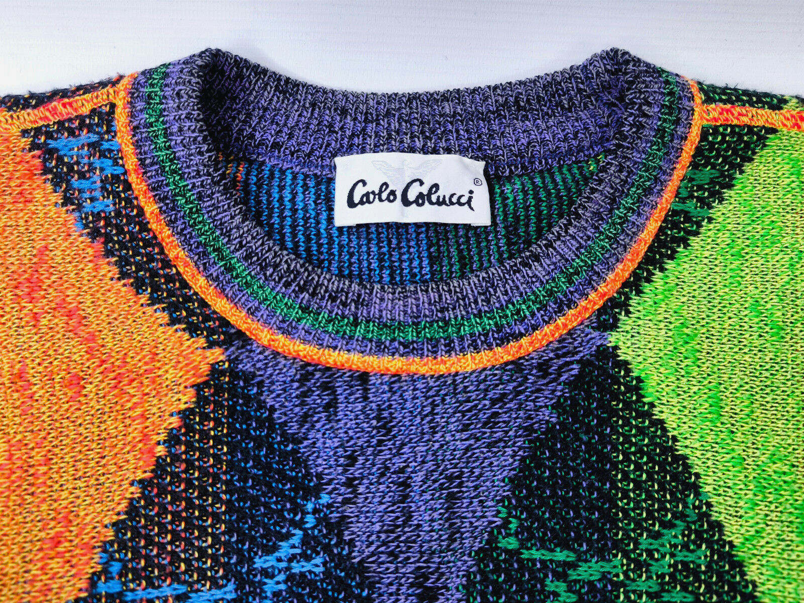 ________________________________________Marke: Carlo ColucciGröße: 56 (XXL)Farbe: bunt getreift Zustand: sehr gut________________________________________Beschreibung:Der Pullover befindet sich in einem sehr guten Zustand.Es sind nur minimalste und sehr sehr kleine Tragespuren zu erkennen.Ein grandioses Design und eine gelungene Farbgebung für diesen "Pullover im Pullover".Made in Germany.Im Pullover ist die Größe 56 angegeben. Im Vergleich mit anderen Carlo Colucci Pullovern die wir hier anbieten, fällt er wie eine sehr gute Größe XL bis XXL.Bitte die Maße prüfen für eine perfekte Passform.________________________________________Die ca. Maße sind wie folgt:Brustbreite von Achsel zu Achsel: 67cmÄrmellänge ab Achsel: 60cmRückenlänge inkl. Kragen: 72cm________________________________________Material lt. Innenetikett:Oberstoff:80% Baumwolle / 20% Polyacryl ________________________________________ Pflegeanleitung:Handwäsche kalt / Maschinenschonwaschgang 30 Grad
