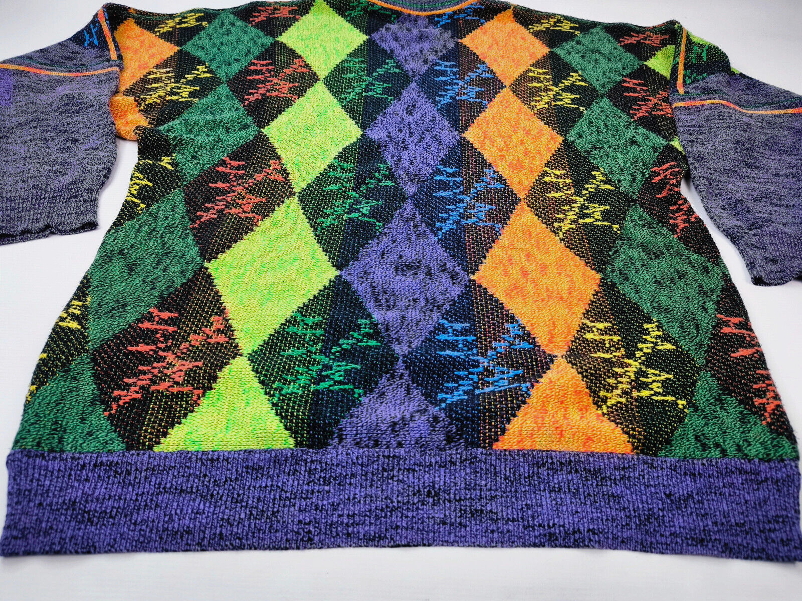 ________________________________________Marke: J c de CastelbajacGröße: 54 (XL)Farbe: mehrfarbig Zustand: neuwertig________________________________________Beschreibung: Der Pullover befindet sich in einem neuwertigen Zustand.Es sind keine Gebrauchsspuren zu erkennen.Wahnsinnig toller Strickpullover mit hochwertigen Materialien.Sehr seltenes Motiv der 1990er Jahre. Bitte die Maße prüfen für eine perfekte Passform.________________________________________Die ca. Maße sind wie folgt:Brustbreite von Achsel zu Achsel: 63cmÄrmellänge ab Höhe Schulter: 69cmRückenlänge inkl. Kragen: 71cm________________________________________Material lt. Innenetikett:Oberstoff: 35% Schurwolle / 25% Polyacryl / 20% Mohair / 20% Polyamid________________________________________ Pflegeanleitung:professionelle Textilreinigung