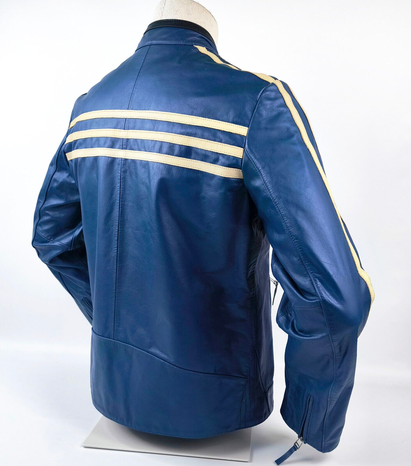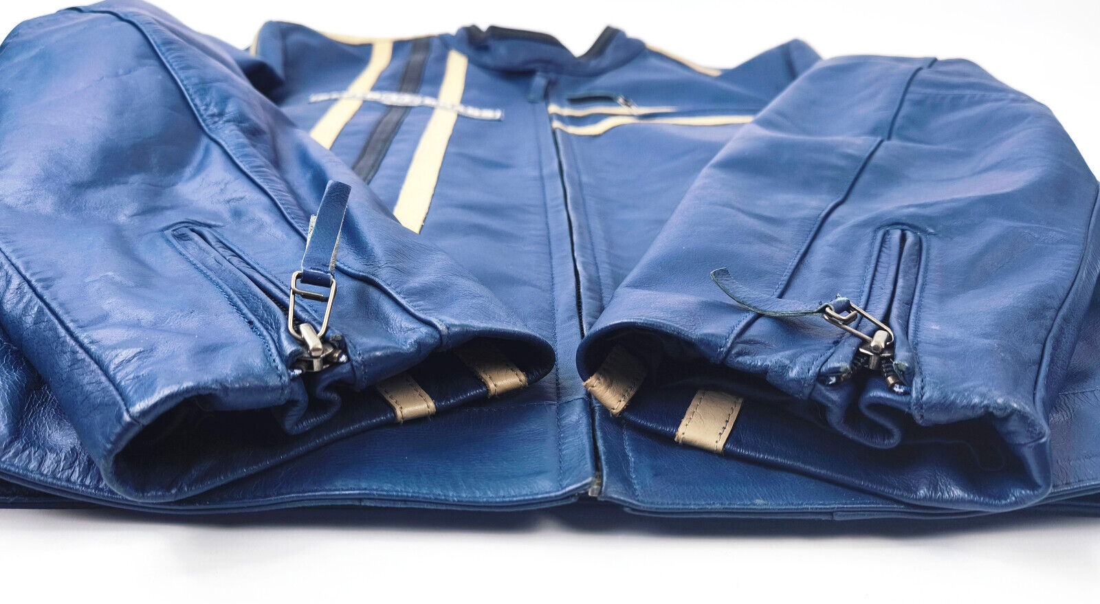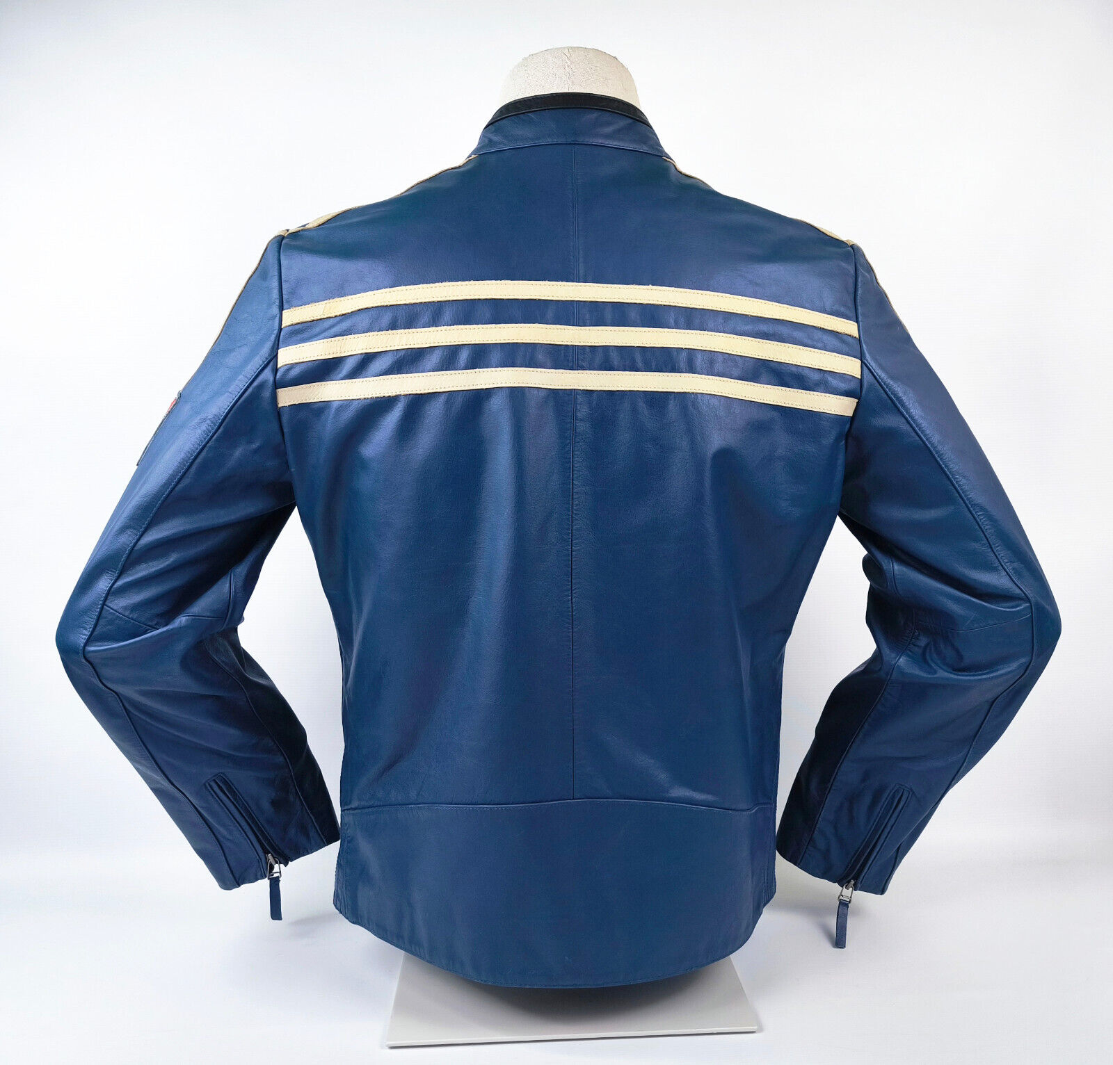 ________________________________________Marke: Jc de CastelbajacGröße: 50 (L)Farbe: blau / braun Zustand: sehr gut________________________________________Beschreibung:Die Jacke befindet sich in einem sehr guten Zustand.Es sind nur sehr wenige und dann kleine Trage- und Gebrauchsspuren zu erkennen.Außenbereich mit wenigen und dann kleinen Tragespuren und sehr gut erhalten.Innenfutter und Bündchen ebenfalls, sehr guter Zustand !Reißverschluß funktioniert tadellos.Materialmix aus Leder, Baumwolle und Polyamid.Ein tolles Motiv mit Wile E. Coyote.Castelbajac...Made in Italy...90s.In der Jacke ist die Größe 50 angegeben, was einer Größe L entspricht.Bitte die Maße prüfen für eine perfekte Passform.________________________________________Die ca. Maße sind wie folgt:Brustbreite von Achsel zu Achsel: 64cmÄrmellänge ab Höhe Schulter: 71cmRückenlänge inkl. Kragen und Bund: 70cm________________________________________Material lt. Innenlabel:Oberstoff: 100% Leder (brauner Bereich)100% Baumwolle (Bereich innen Cord Optik) 65% Polyamid / 35% Polyester (Ärmel)_______________________________________Pflegeanleitung:professionelle Textilreinigung