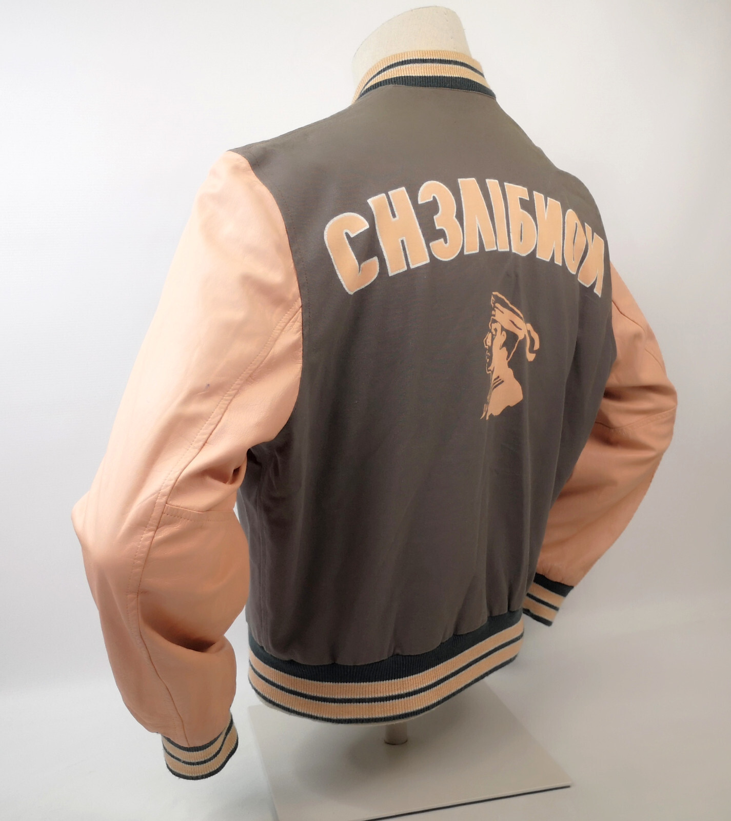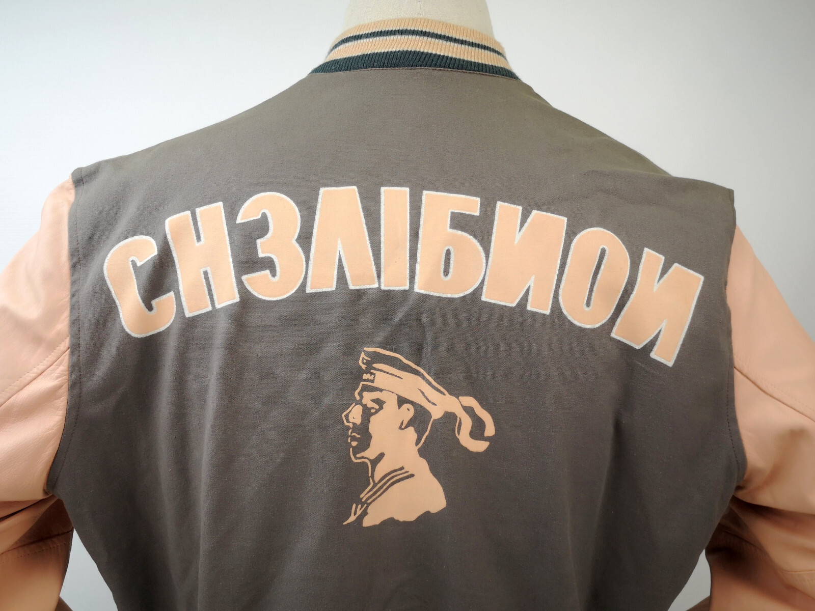 Chevignon Herren Jacke mit russischer Label Schrift auf dem Rücken.