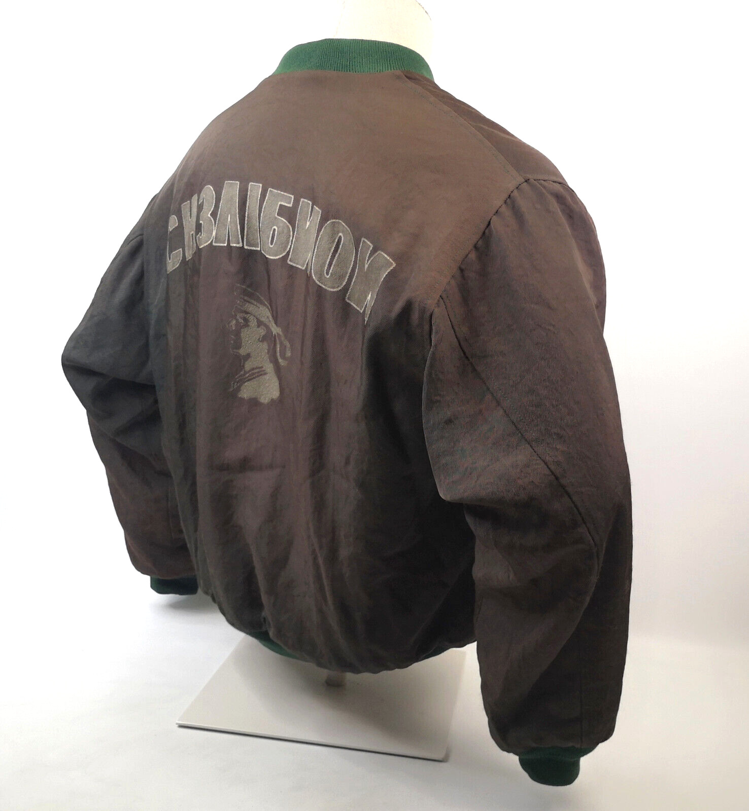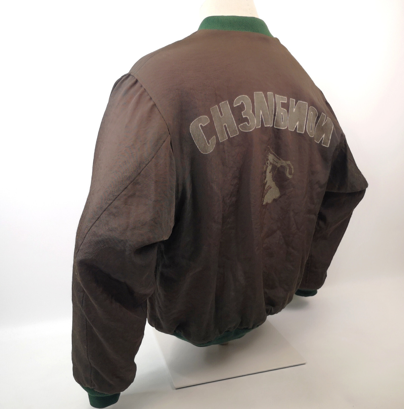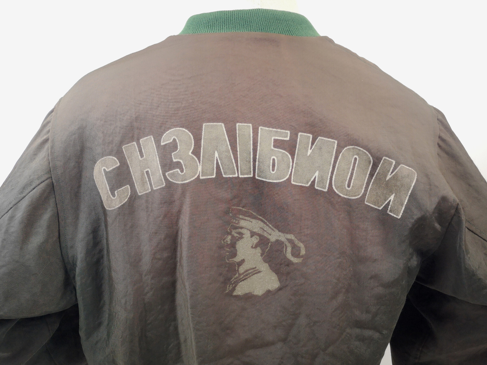 Chevignon Herren Jacke mit russischer Label Schrift auf dem Rücken.