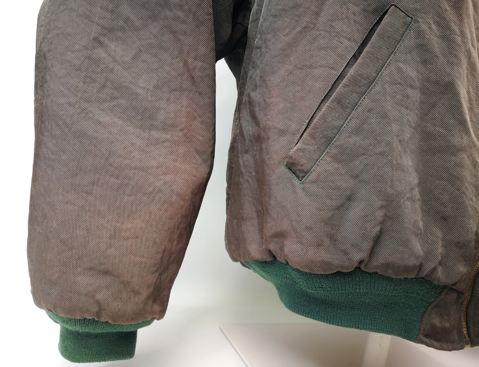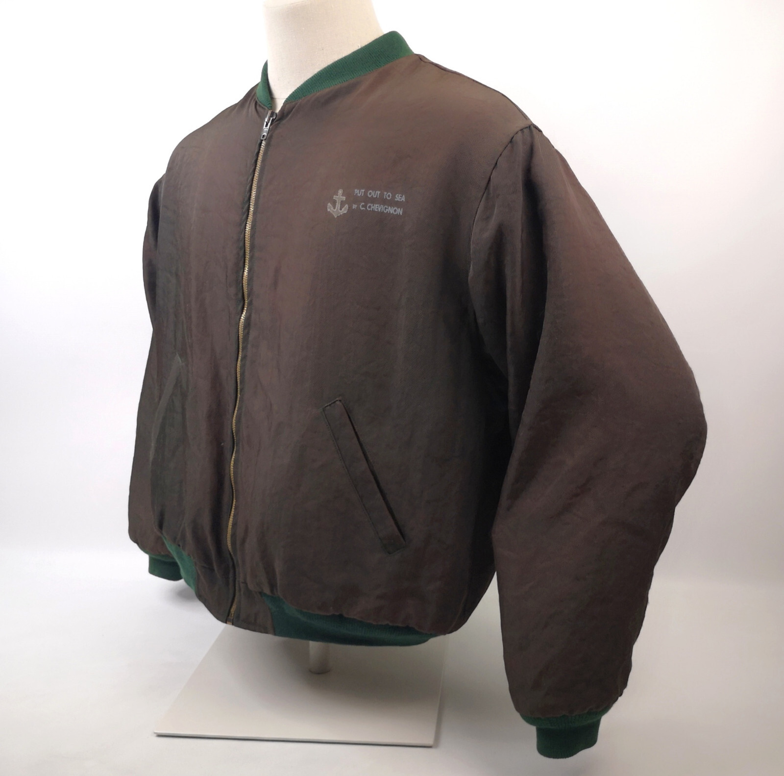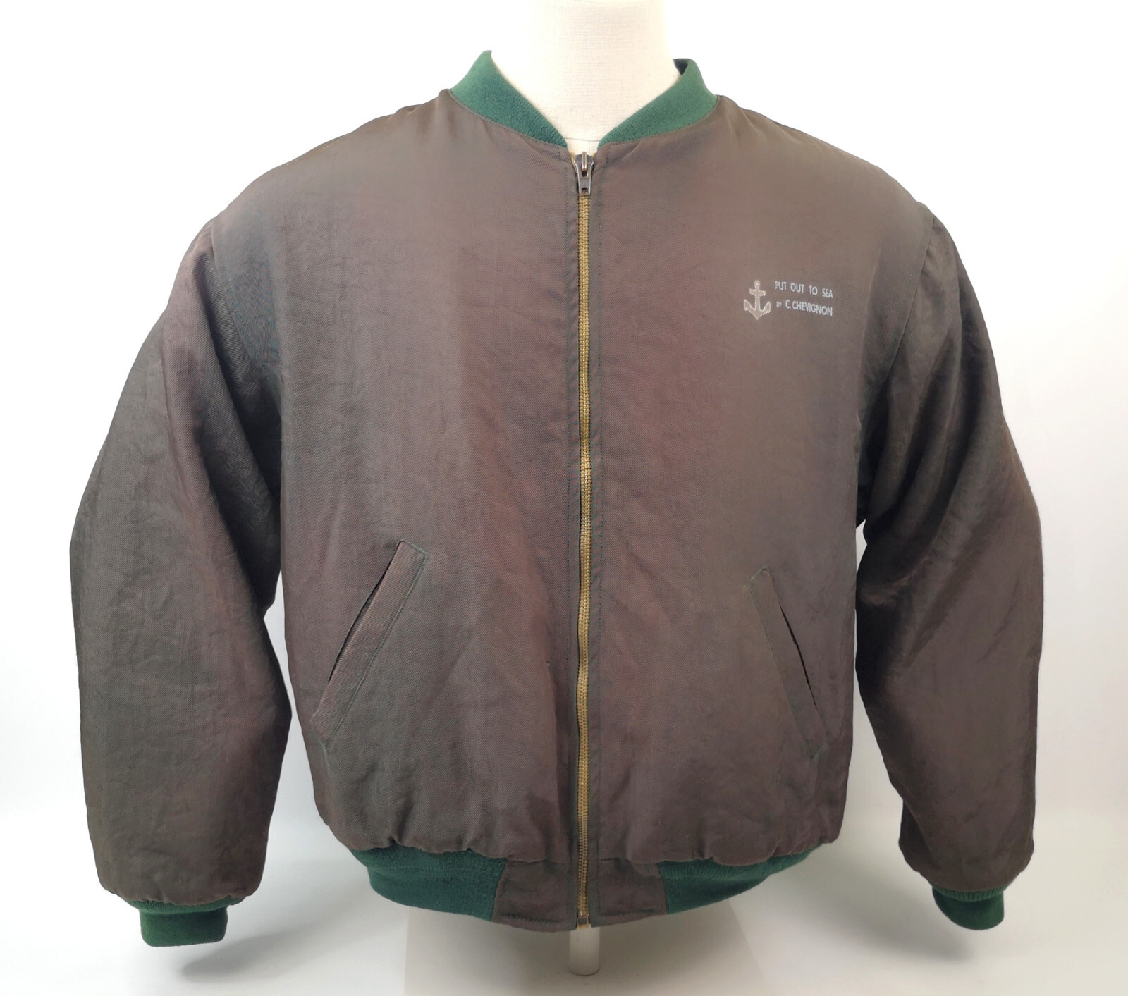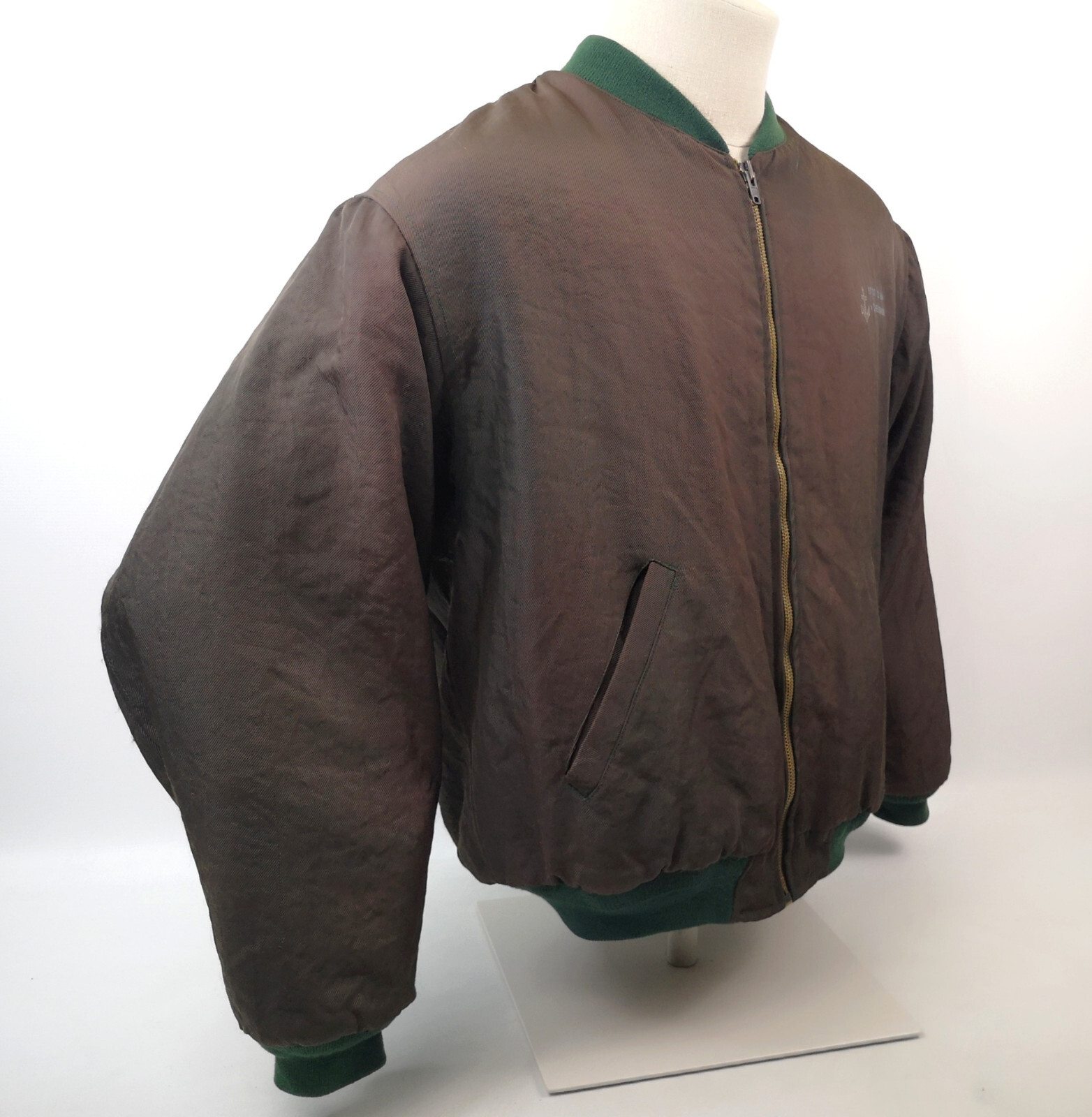 ________________________________________Marke: ChevignonFarbe: olivGröße: XXL (XL) Zustand: getragen_______________________________________Beschreibung:Die Jacke wurden getragen und befindet sich in einem sehr schönen Zustand. Außen mit leichten Trage- und Gebrauchsspuren und super gut erhalten.Innenfutter in einem sehr guten Zustand.Ebenfalls die Bündchen, sehr sehr gut erhalten !Reißverschluß und Druckknöpfe an den Taschen funktionieren tadellos. Mitlerweile sehr seltenes Modell.In der Jacke ist die Größe XXL angegeben. Im Vergleich mit anderen Chevignon Jacken von uns, fällt sie kleiner und tendiert klar zur Größe XL.Typisch der Schnitte der damaligen Zeit ist sie im Brustbereich eher breit und dafür vom Rücken her kürzer geschnitten.Bitte die Maße prüfen für eine perfekte Passform._______________________________________Die ca. Maße sind wie folgt:Brustbreite von Achsel zu Achsel: 67cmÄrmellänge ab Höhe Schulter: 70cmRückenlänge inkl. Kragen und Bund: 68cm_______________________________________Material lt. Etikett:Außen / Innen: 100% Nylon_______________________________________Pflegeanleitung:Maschinenwäsche 30 Grad