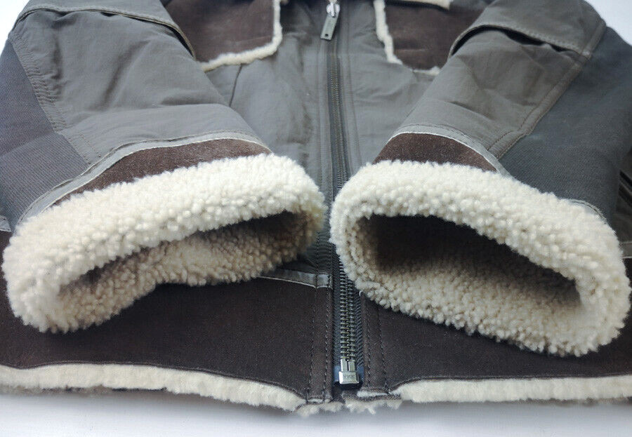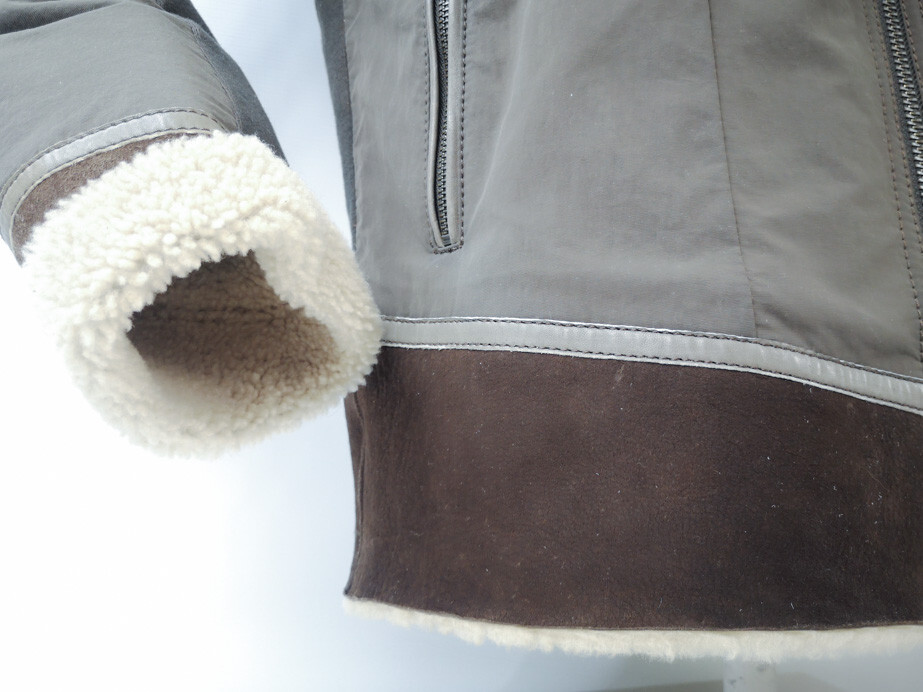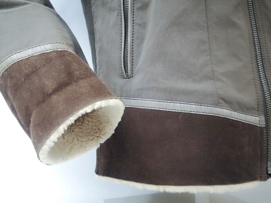________________________________________Marke: ChevignonModell: BoumeGröße: XXL (XL)Farbe: naturfaben Zustand: ausgezeichnet_______________________________________Beschreibung:Die Jacke befindet sich in einem ausgezeichneten Zustand. Es sind nur minimalste und nahezu nicht sichtbare Tragespuren zu erkennen.Außen sowie Innen !Reißverschlüsse und Druckknöpfe an den Taschen funktionieren tadellos.Lammfell Einsätze im Brustbereich, an den Ärmelenden und dem unteren Rücken.Braune Ledereinsätze im vorderen Bereich.Eine sehr schöne Materialkombination aus Lammfell, echtem Leder und Baumwolle.Tadelloser Zustand einer tollen Jacke !In der Jacke ist die Größe XXL angegeben. Im Vergleich mit anderen Chevignon Jacken von uns fällt sie etwas kleiner und tendiert ganz leicht zu einer Größe XL. Bitte die Maße beachten für eine perfekte Passform. _______________________________________Die ca. Maße sind wie folgt:Brustbreite von Achsel zu Achsel: 69cmÄrmellänge ab Höhe Schulter: 74cmRückenlänge inkl. Kragen und Bund: 78cm_______________________________________Material lt. Etikett:Oberstoff: 100% Leder (Lamm / Rind) / BaumwolleFutter+Füllung: 100% Polyester_______________________________________Pflegeanleitung:professionelle Textilreinigung