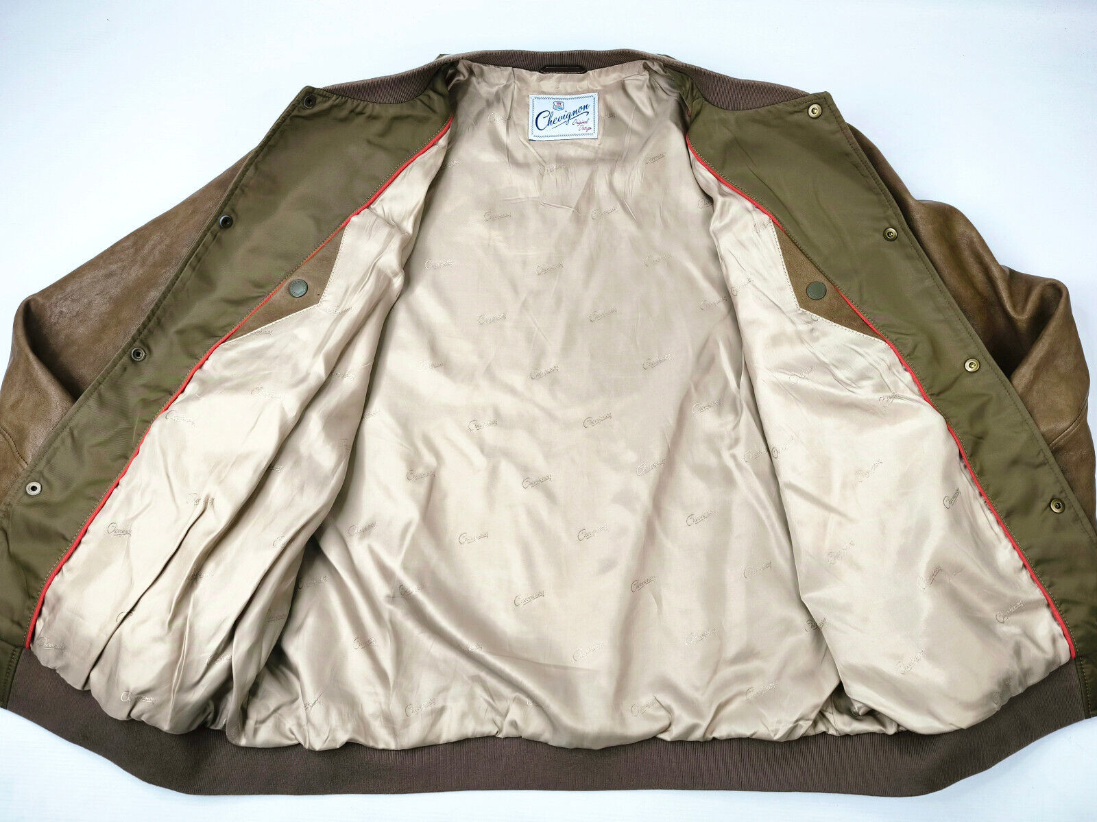 ________________________________________Marke: ChevignonFarbe: olivGröße: XXL (XL) Zustand: getragen_______________________________________Beschreibung:Die Jacke wurden getragen und befindet sich in einem sehr schönen Zustand. Außen mit leichten Trage- und Gebrauchsspuren und super gut erhalten.Innenfutter in einem sehr guten Zustand.Ebenfalls die Bündchen, sehr sehr gut erhalten !Reißverschluß und Druckknöpfe an den Taschen funktionieren tadellos. Mitlerweile sehr seltenes Modell.In der Jacke ist die Größe XXL angegeben. Im Vergleich mit anderen Chevignon Jacken von uns, fällt sie kleiner und tendiert klar zur Größe XL.Typisch der Schnitte der damaligen Zeit ist sie im Brustbereich eher breit und dafür vom Rücken her kürzer geschnitten.Bitte die Maße prüfen für eine perfekte Passform._______________________________________Die ca. Maße sind wie folgt:Brustbreite von Achsel zu Achsel: 67cmÄrmellänge ab Höhe Schulter: 70cmRückenlänge inkl. Kragen und Bund: 68cm_______________________________________Material lt. Etikett:Außen / Innen: 100% Nylon_______________________________________Pflegeanleitung:Maschinenwäsche 30 Grad