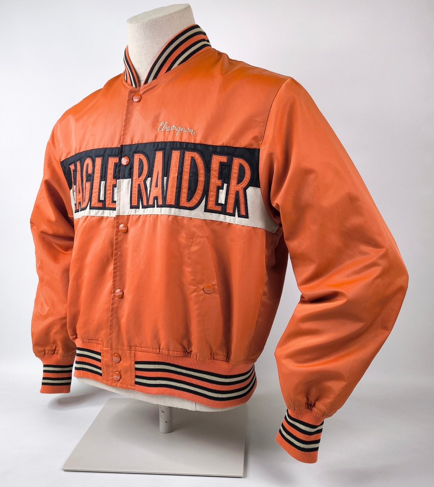 Chevignon Jacke Baseball orange Gr. L (M) Eagle Raider vintage 90s Logo vorn