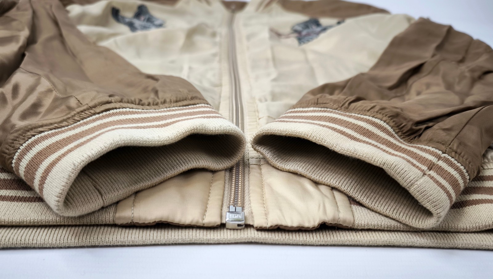 Die Jacke läßt sich von beiden Seiten tragen (Wendejacke).