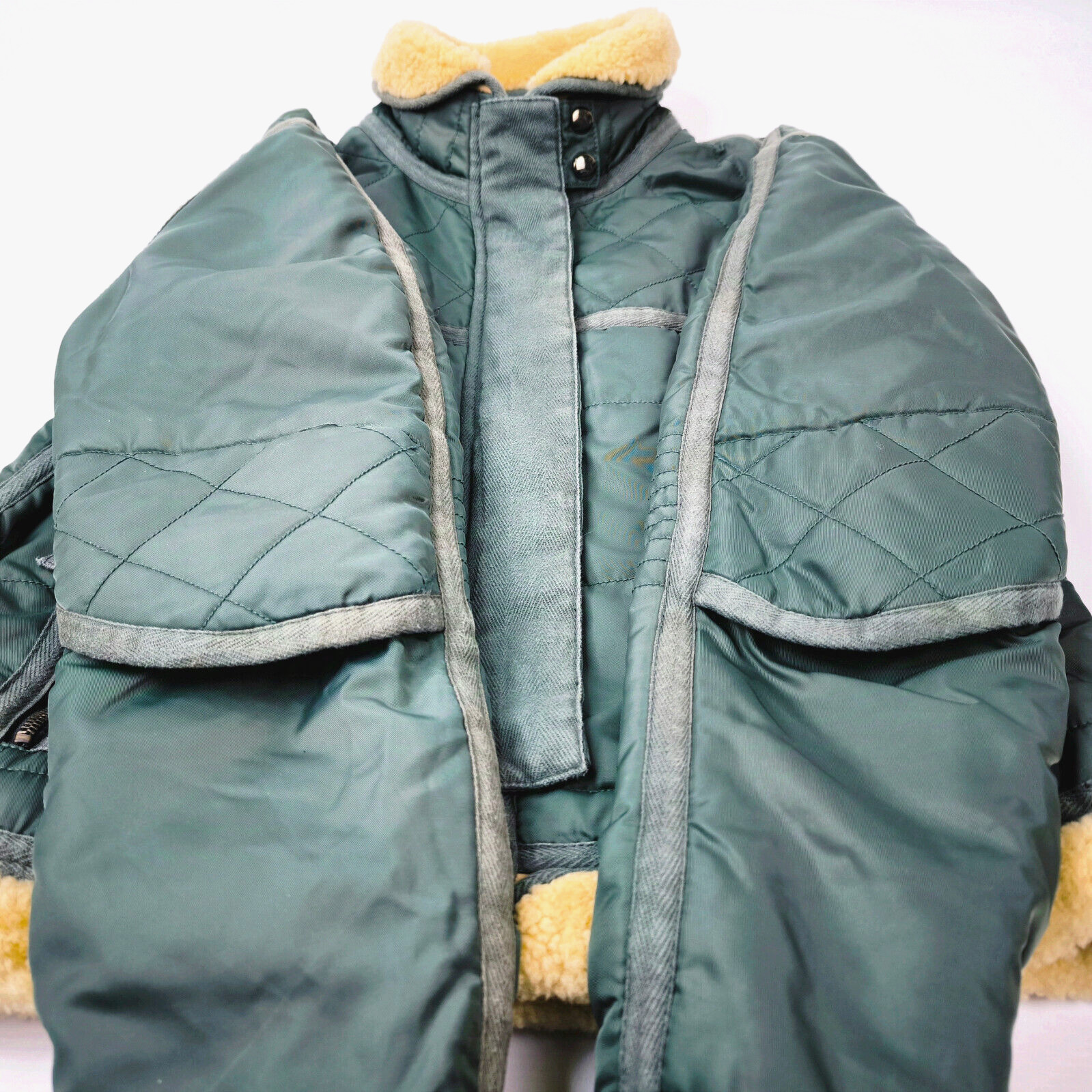 ________________________________________Marke: ChevignonFarbe: olivGröße: XXL (XL) Zustand: getragen_______________________________________Beschreibung:Die Jacke wurden getragen und befindet sich in einem sehr schönen Zustand. Außen mit leichten Trage- und Gebrauchsspuren und super gut erhalten.Innenfutter in einem sehr guten Zustand.Ebenfalls die Bündchen, sehr sehr gut erhalten !Reißverschluß und Druckknöpfe an den Taschen funktionieren tadellos. Mitlerweile sehr seltenes Modell.In der Jacke ist die Größe XXL angegeben. Im Vergleich mit anderen Chevignon Jacken von uns, fällt sie kleiner und tendiert klar zur Größe XL.Typisch der Schnitte der damaligen Zeit ist sie im Brustbereich eher breit und dafür vom Rücken her kürzer geschnitten.Bitte die Maße prüfen für eine perfekte Passform._______________________________________Die ca. Maße sind wie folgt:Brustbreite von Achsel zu Achsel: 67cmÄrmellänge ab Höhe Schulter: 70cmRückenlänge inkl. Kragen und Bund: 68cm_______________________________________Material lt. Etikett:Außen / Innen: 100% Nylon_______________________________________Pflegeanleitung:Maschinenwäsche 30 Grad