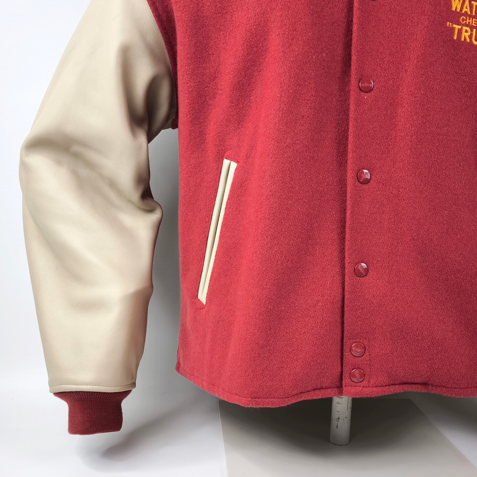 Chevignon Jacke College- / Baseball Gr. L rot / beige Leder / Wolle Mix vintage