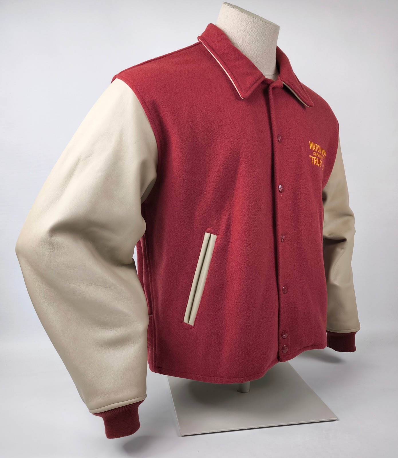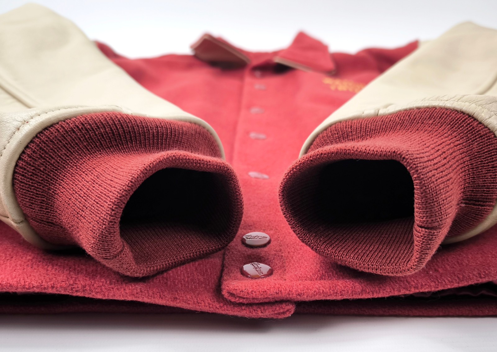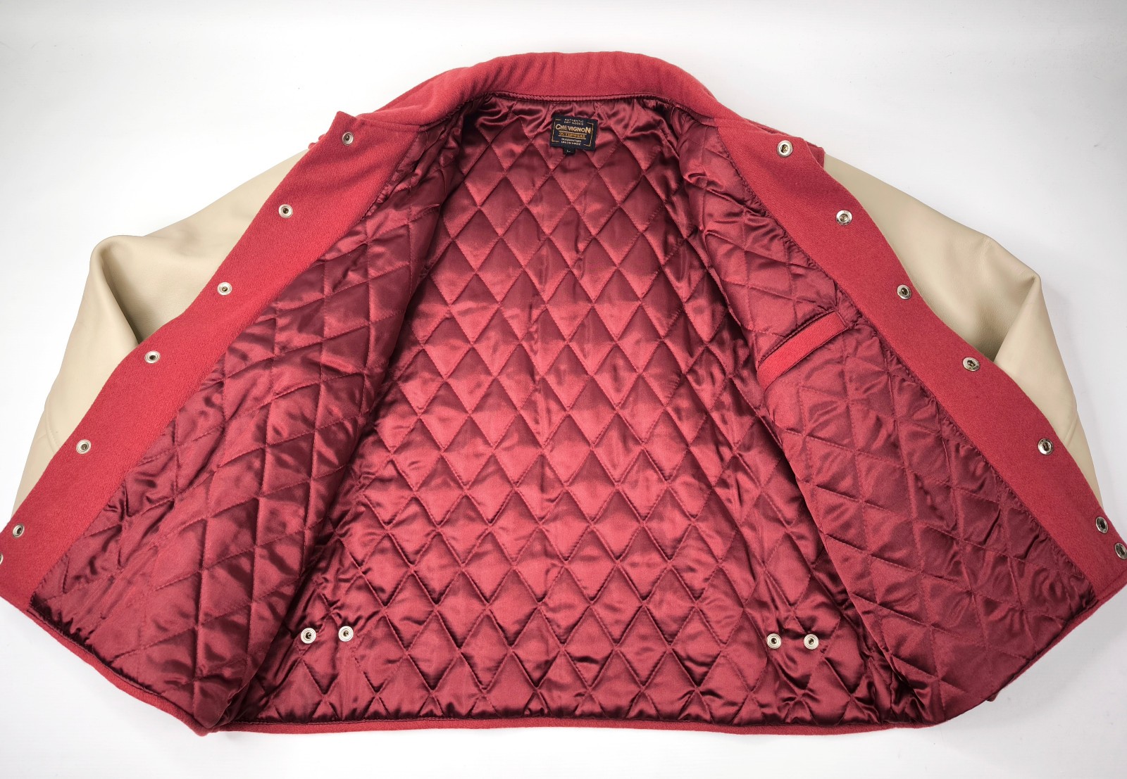 Preisvorschlag für Chevignon Jacke College- / Baseball Gr. L rot / beige Leder / Wolle Mix vintage