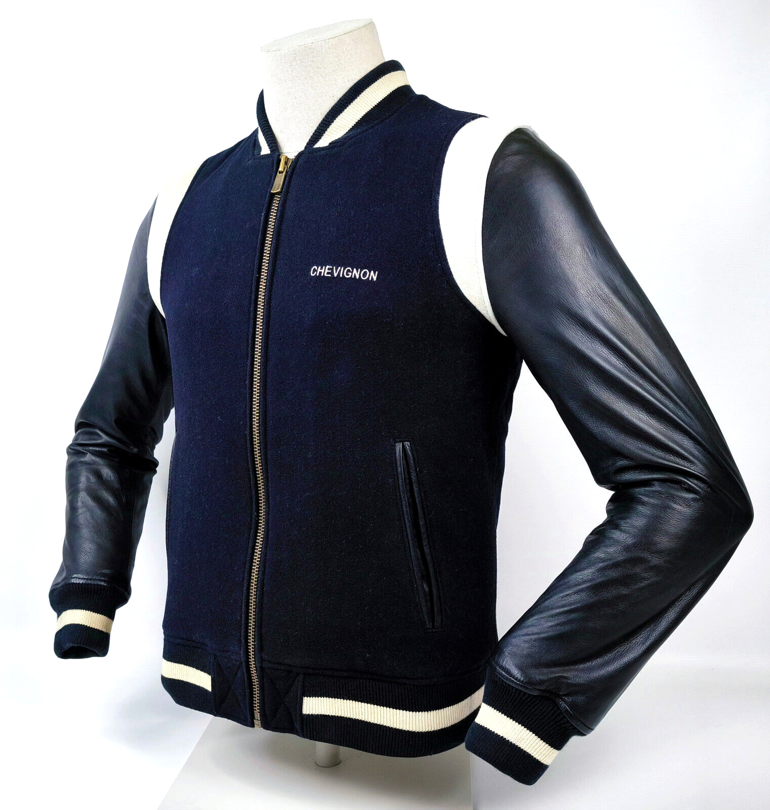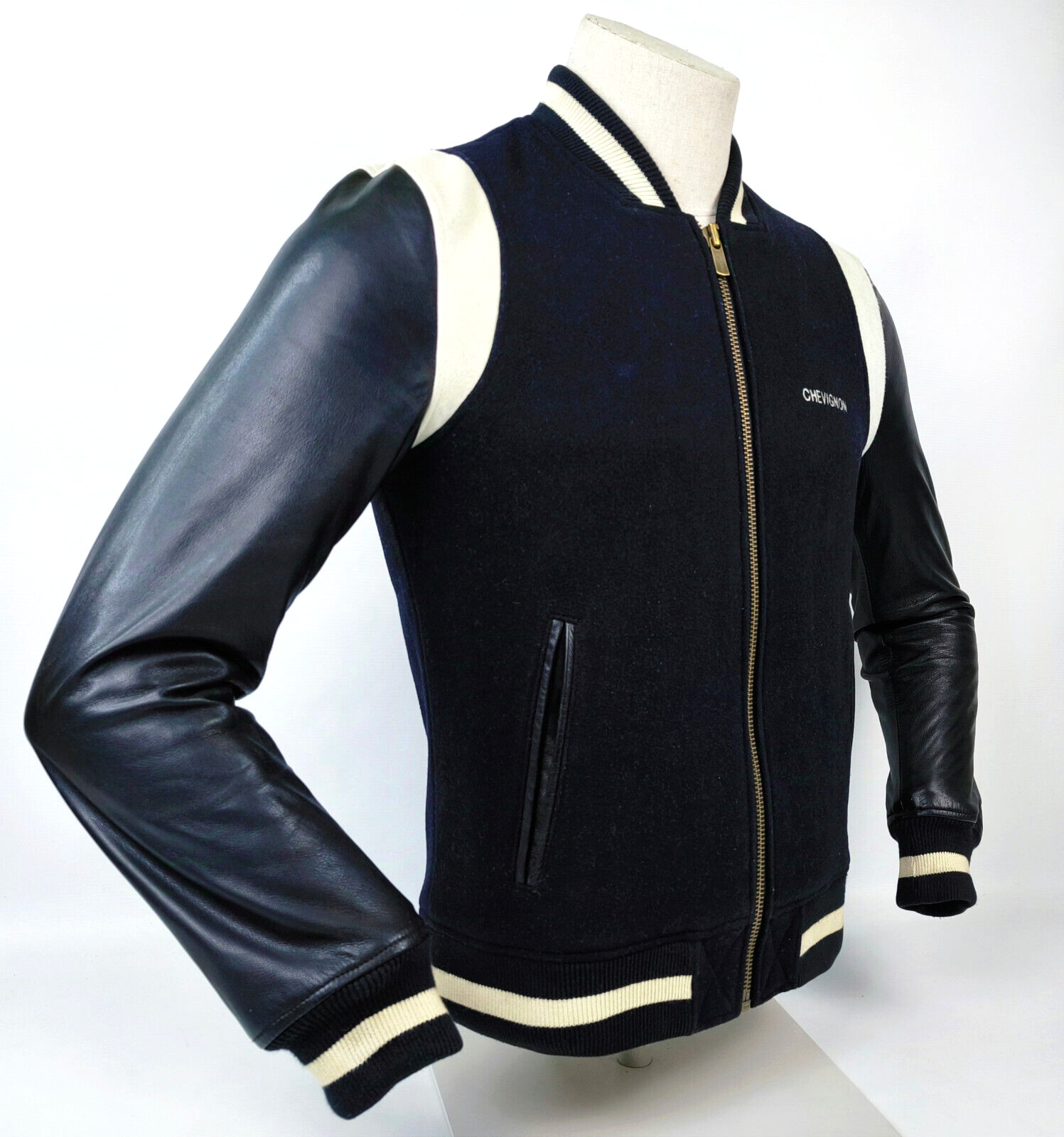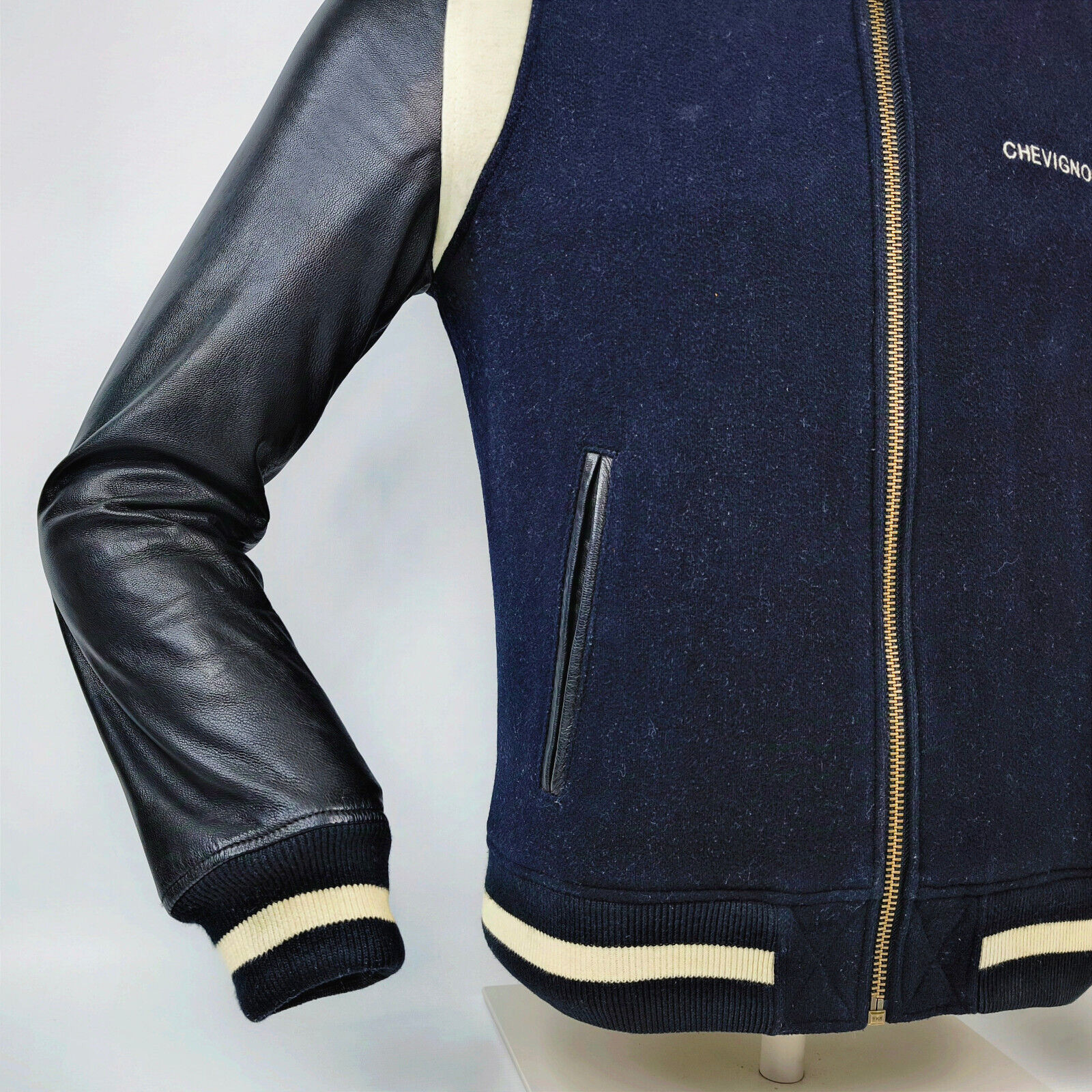 Preisvorschlag für Chevignon Jacke College- / Baseball Gr. M (schmal) schwarz Leder / Wolle Mix