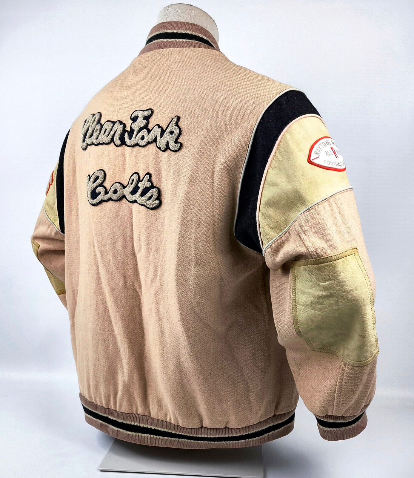 ________________________________________Marke: ChevignonGröße: L (M)Farbe: braun / braun meliert Zustand: sehr gut________________________________________Beschreibung:Die Jacke befindet sich in einem sehr guten Zustand.Es sind nur wenige und dann sehr kleine Tragespuren zu erkennen.Außenbereich Wolle innen sehr gut erhalten.Lederärmel in braun mit sehr kleinen Tragespuren und auch hier, sehr schön im Zustand.Innenfutter sehr guter Zustand.Bündchen mit leichten Tragespuren und ebenfalls, super gut erhalten.Der Hauptreißverschluß, die darüberliegende Druckknopfleiste und die Druckköpfe an den Taschen funktionieren tadellos.In der Jacke ist die Größe L angegeben. Im Vergleich mit anderen Chevignon Jacken von uns, fällt sie kleiner und fällt ganz klar aus wie eine Größe M.Die Jacke fällt recht schmal.Bitte die Maße prüfen für eine perfekte Passform.________________________________________Die ca. Maße sind wie folgt:Brustbreite von Achsel zu Achsel: 54cmÄrmellänge ab Höhe Schulter: 71cmRückenlänge inkl. Kragen und Bund: 68cm________________________________________Material lt. Innenlabel:Oberstoff Ärmel / Innenbereich: 100% Leder / 70% Wolle + 30% andere Materialien_______________________________________Pflegeanleitung:professionelle Textilreinigung