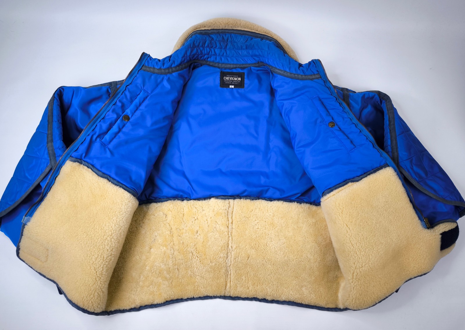 Chevignon Jacke Cosmos royalblau Gr. L vintage 80s Lammfell Bund Marine Stock