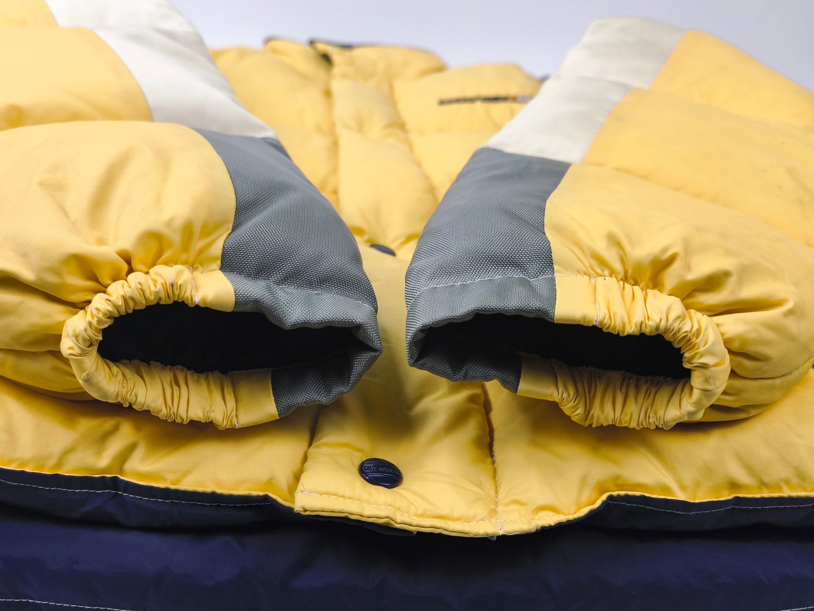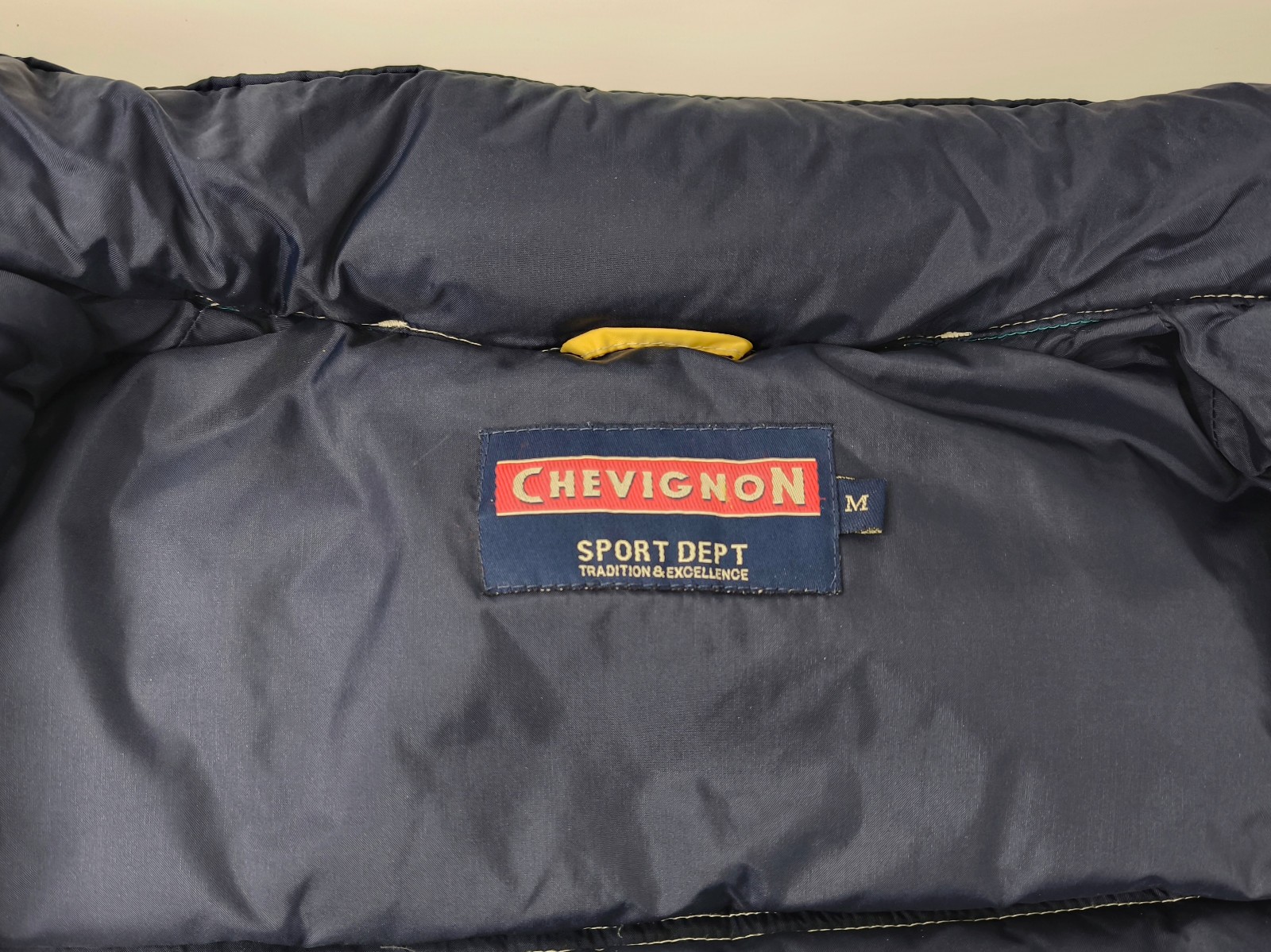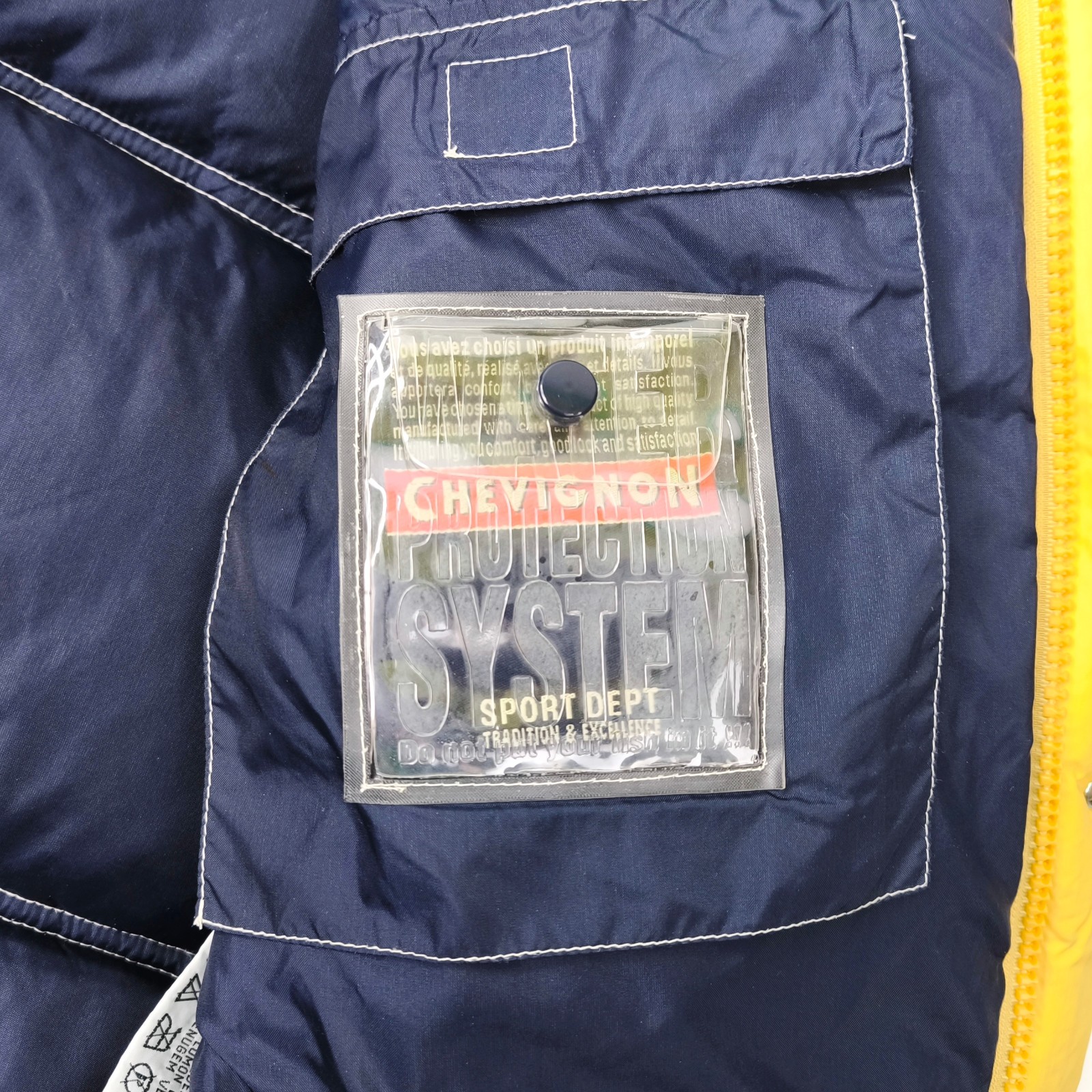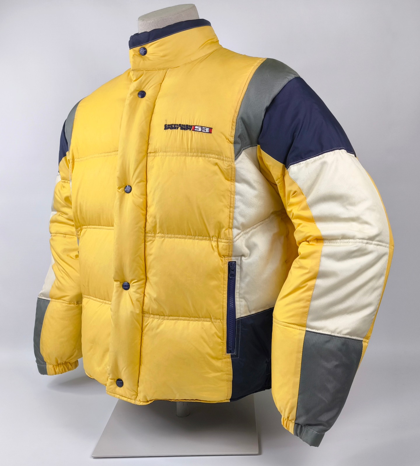 "Chevignon Jacke Daunenjacke Sport Dept. 53 Gr. M (L) gelb-blau-natur Daunen"