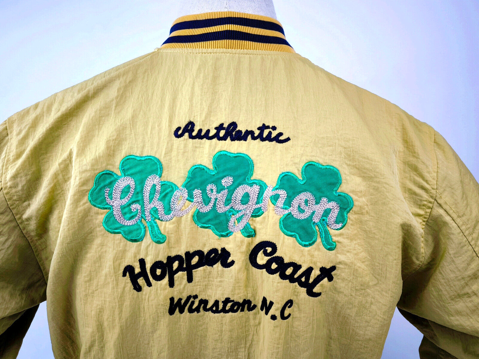 ________________________________________Marke: ChevignonFarbe: olivGröße: XXL (XL) Zustand: getragen_______________________________________Beschreibung:Die Jacke wurden getragen und befindet sich in einem sehr schönen Zustand. Außen mit leichten Trage- und Gebrauchsspuren und super gut erhalten.Innenfutter in einem sehr guten Zustand.Ebenfalls die Bündchen, sehr sehr gut erhalten !Reißverschluß und Druckknöpfe an den Taschen funktionieren tadellos. Mitlerweile sehr seltenes Modell.In der Jacke ist die Größe XXL angegeben. Im Vergleich mit anderen Chevignon Jacken von uns, fällt sie kleiner und tendiert klar zur Größe XL.Typisch der Schnitte der damaligen Zeit ist sie im Brustbereich eher breit und dafür vom Rücken her kürzer geschnitten.Bitte die Maße prüfen für eine perfekte Passform._______________________________________Die ca. Maße sind wie folgt:Brustbreite von Achsel zu Achsel: 67cmÄrmellänge ab Höhe Schulter: 70cmRückenlänge inkl. Kragen und Bund: 68cm_______________________________________Material lt. Etikett:Außen / Innen: 100% Nylon_______________________________________Pflegeanleitung:Maschinenwäsche 30 Grad