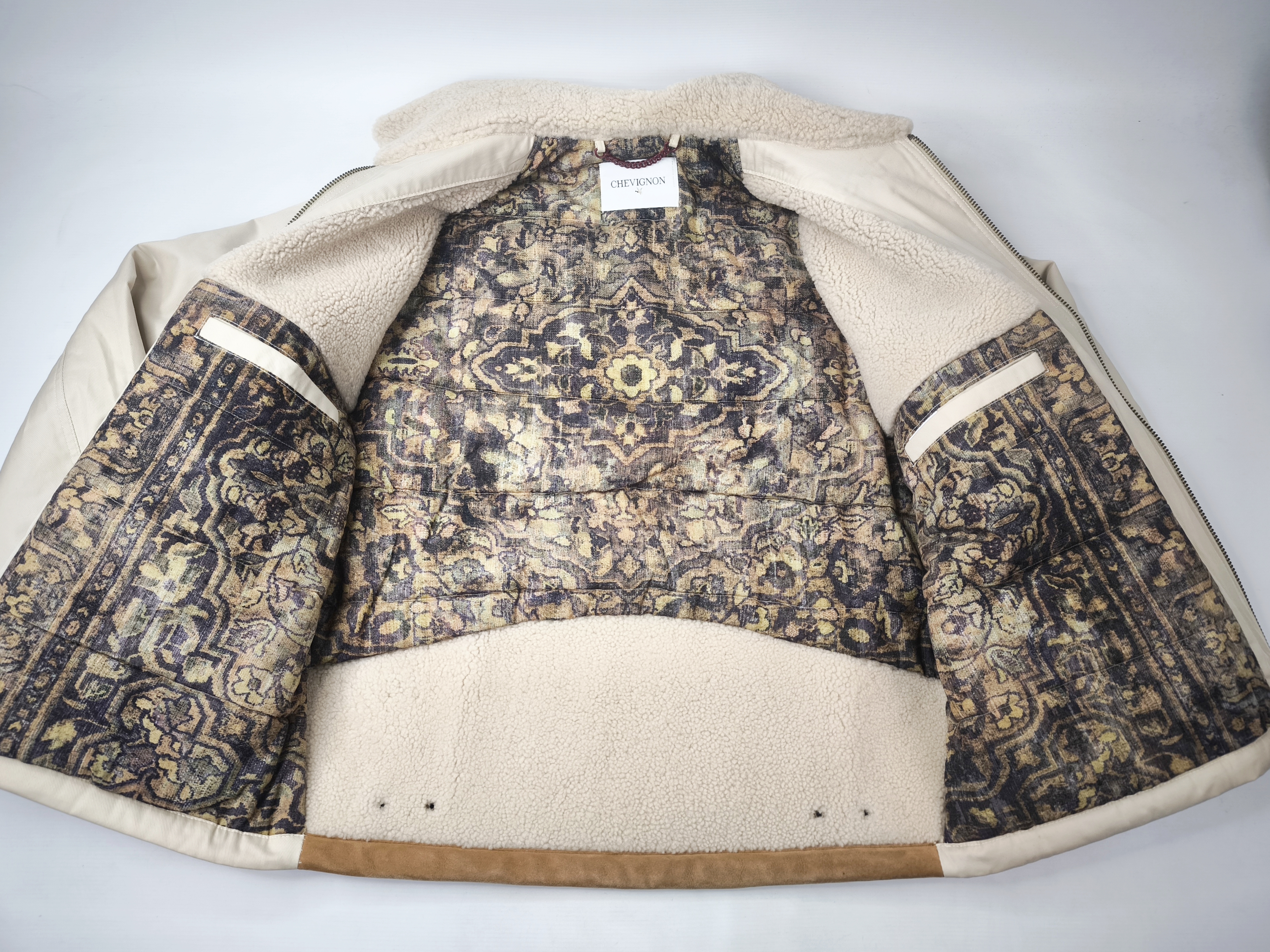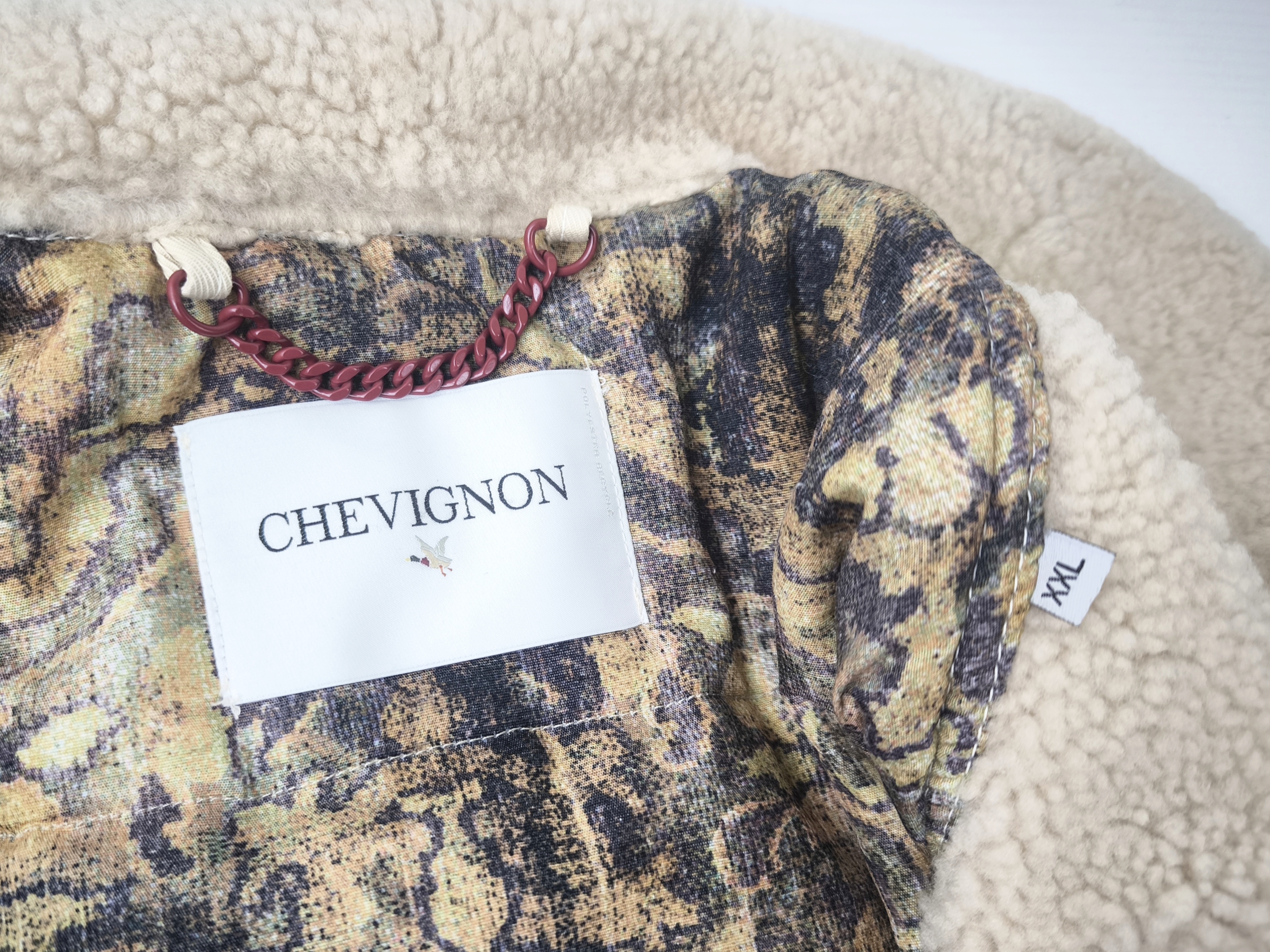 "Chevignon Jacke Lammfell und Leder Besatz Gr. XXL (XL) Webpelz naturfarben"