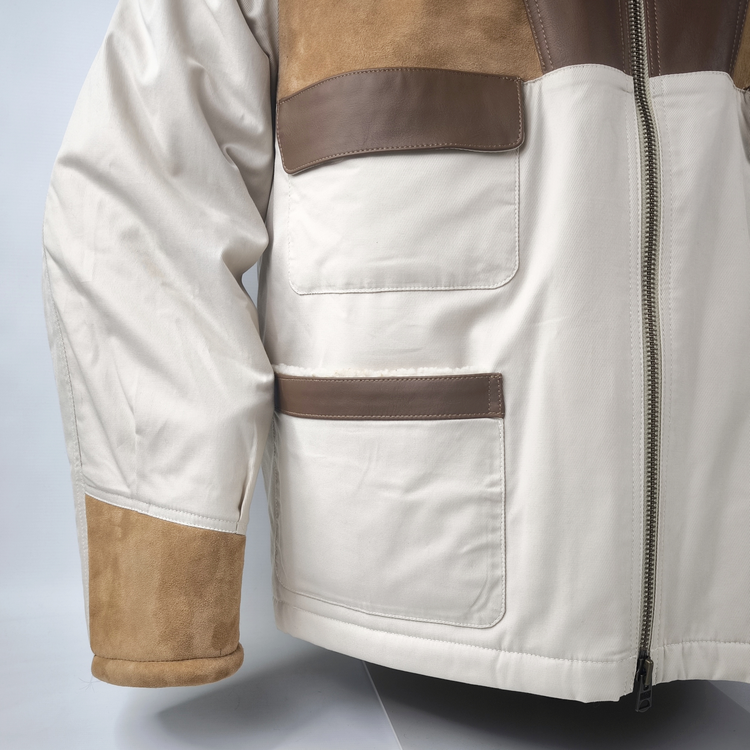 Chevignon Jacke Lammfell und Leder Besatz Gr. XXL (XL) Webpelz naturfarben