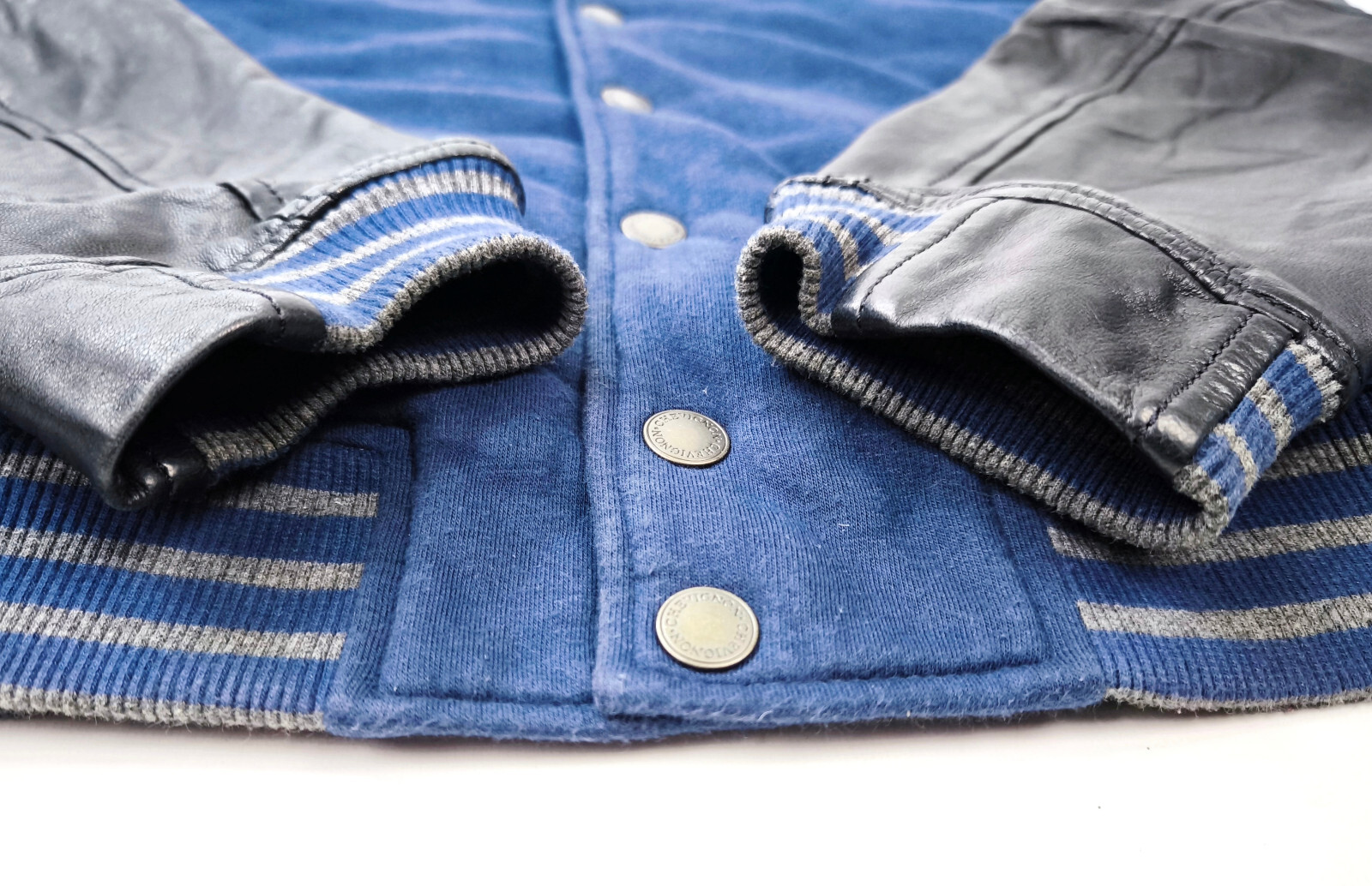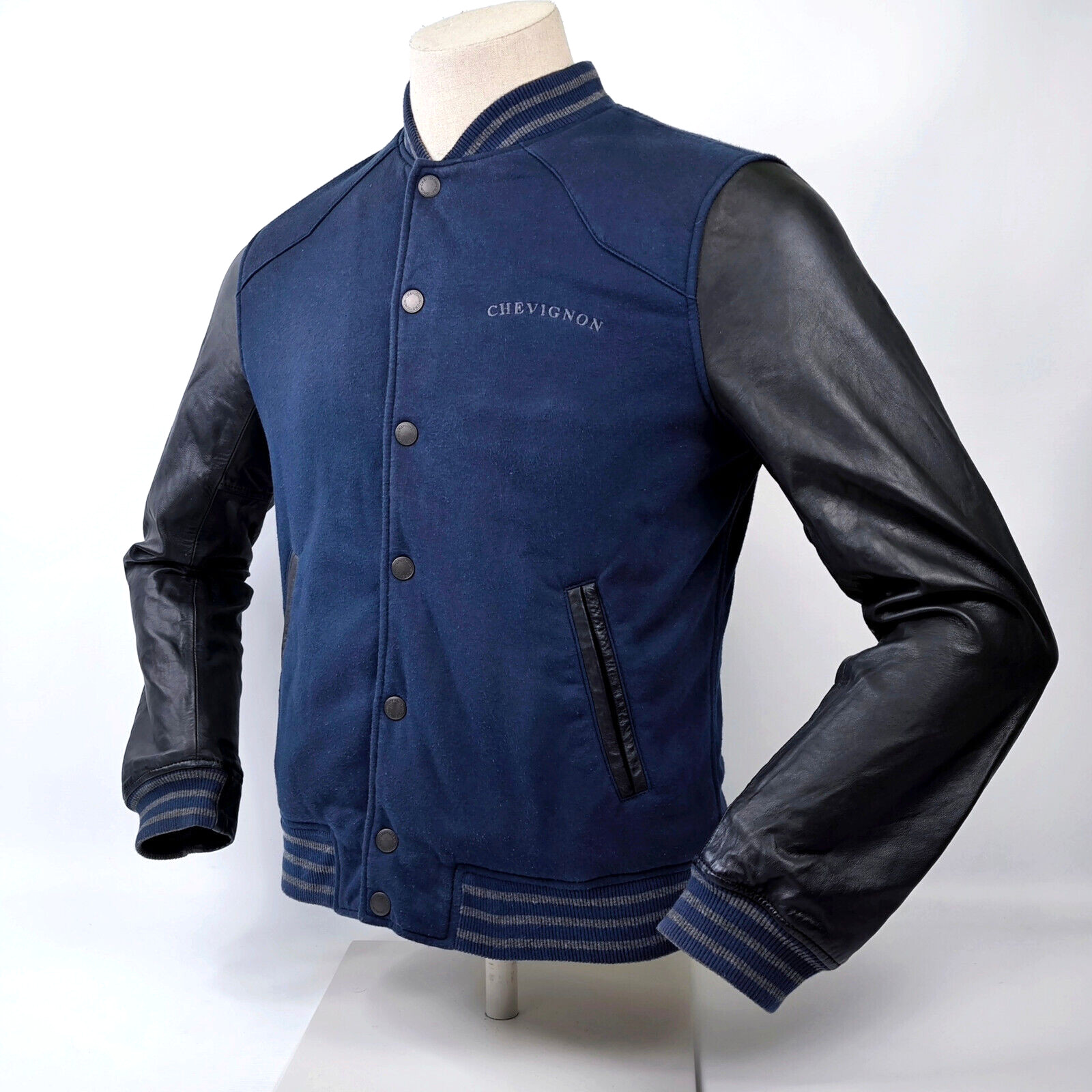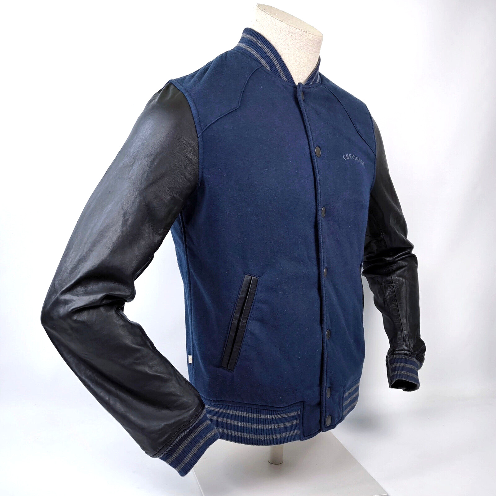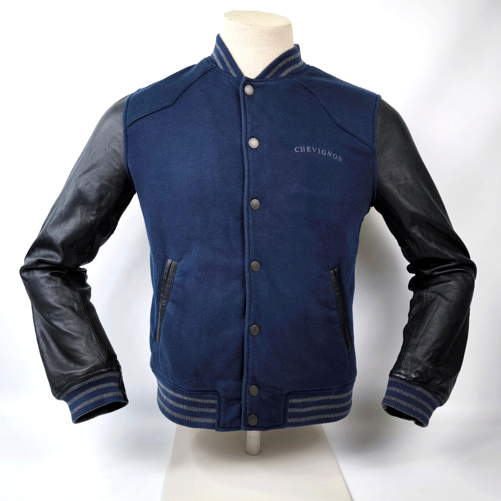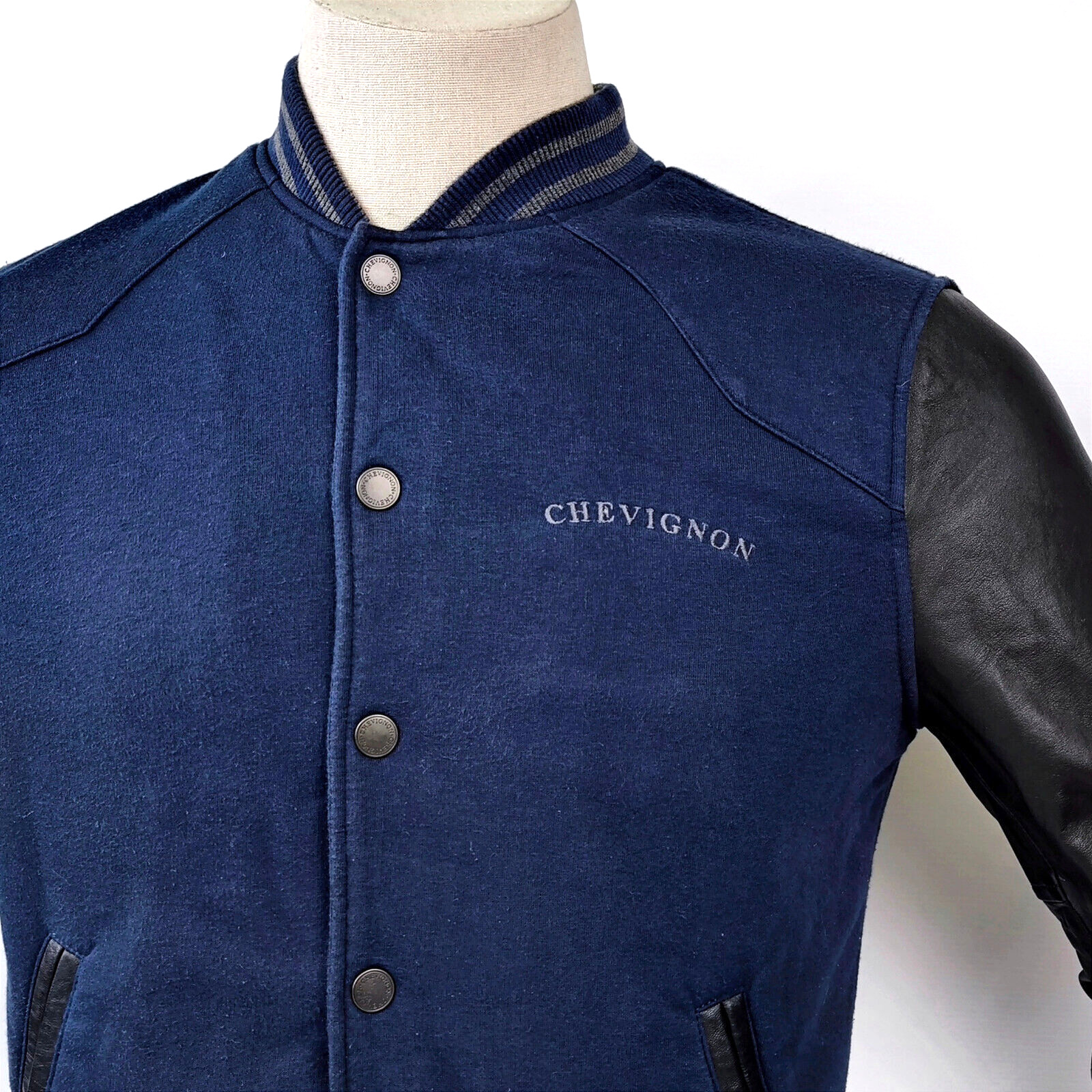 Preisvorschlag für Chevignon Jacke Leder / Stoff Mix Gr. M dunkelblau / Lederärmel schwarz