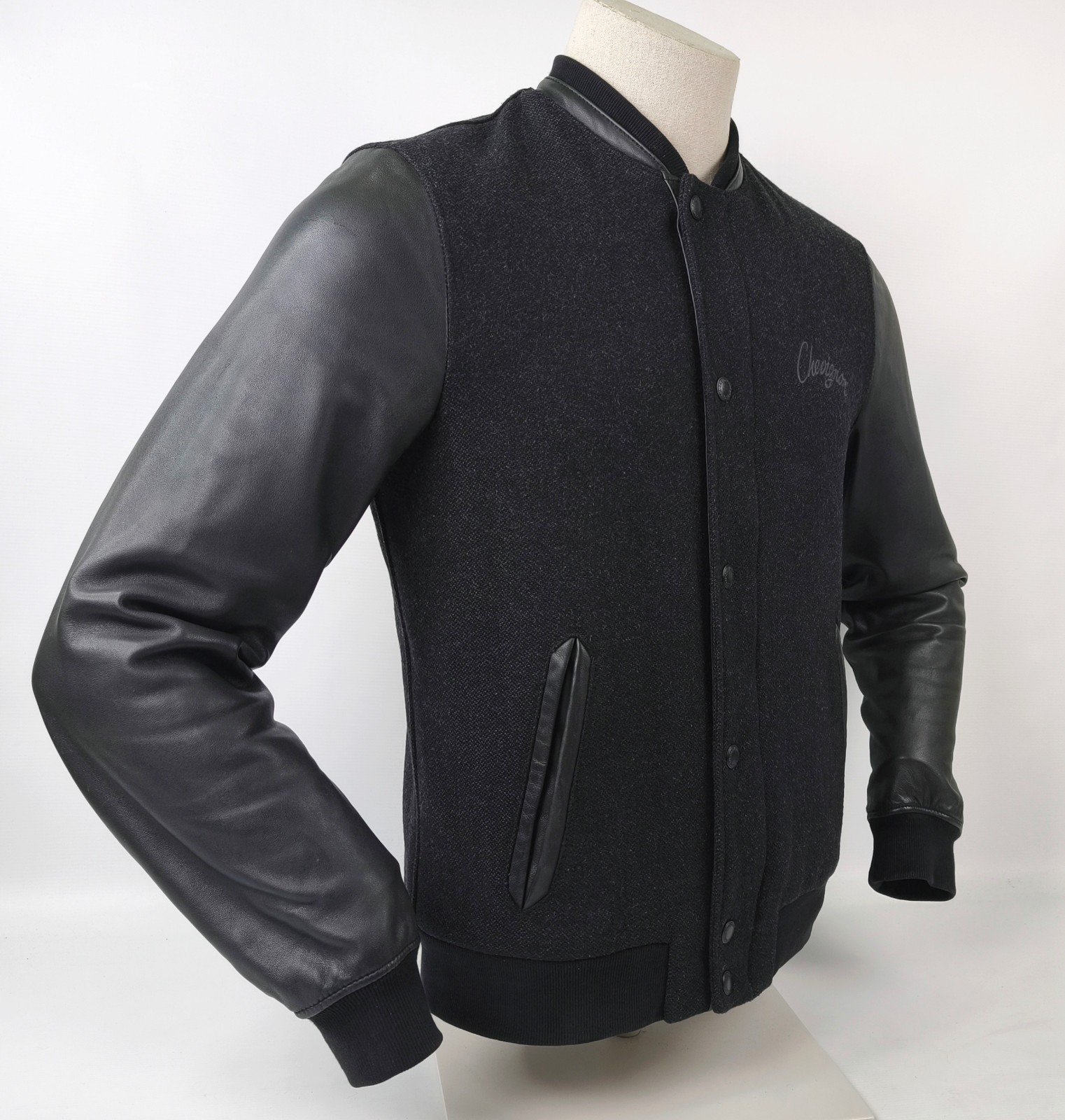 "Chevignon Jacke Lederärmel anthrazit / schwarz Gr. M Wolle / Leder Mix Logo vorn"