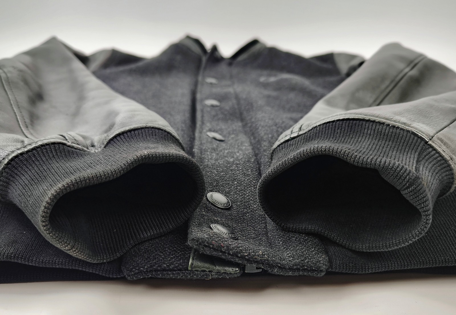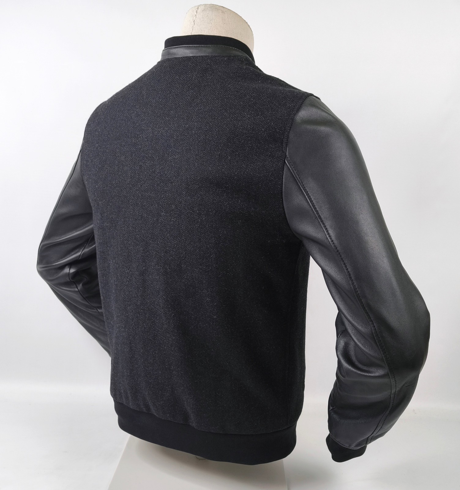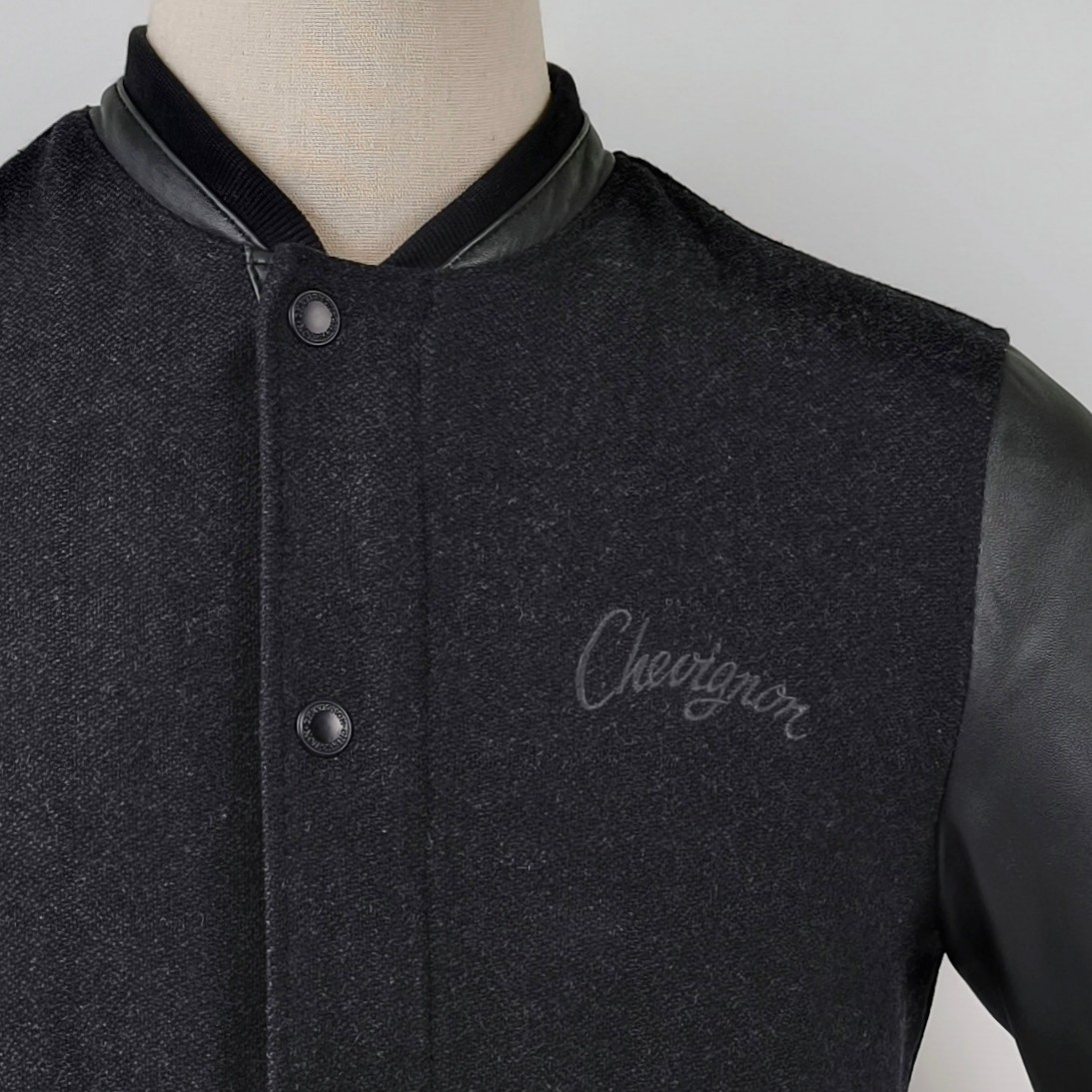 Chevignon Jacke Lederärmel anthrazit / schwarz Gr. M Wolle / Leder Mix Logo vorn