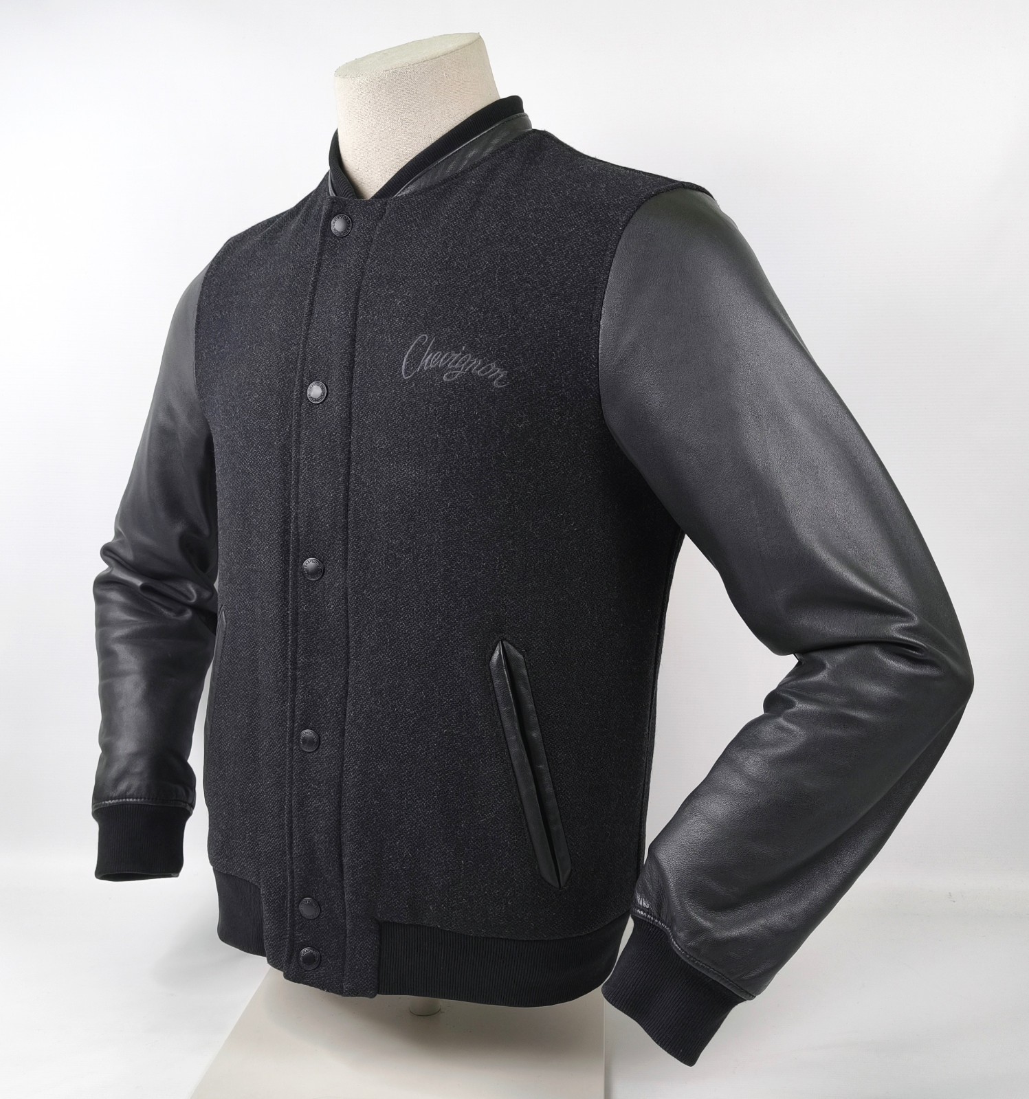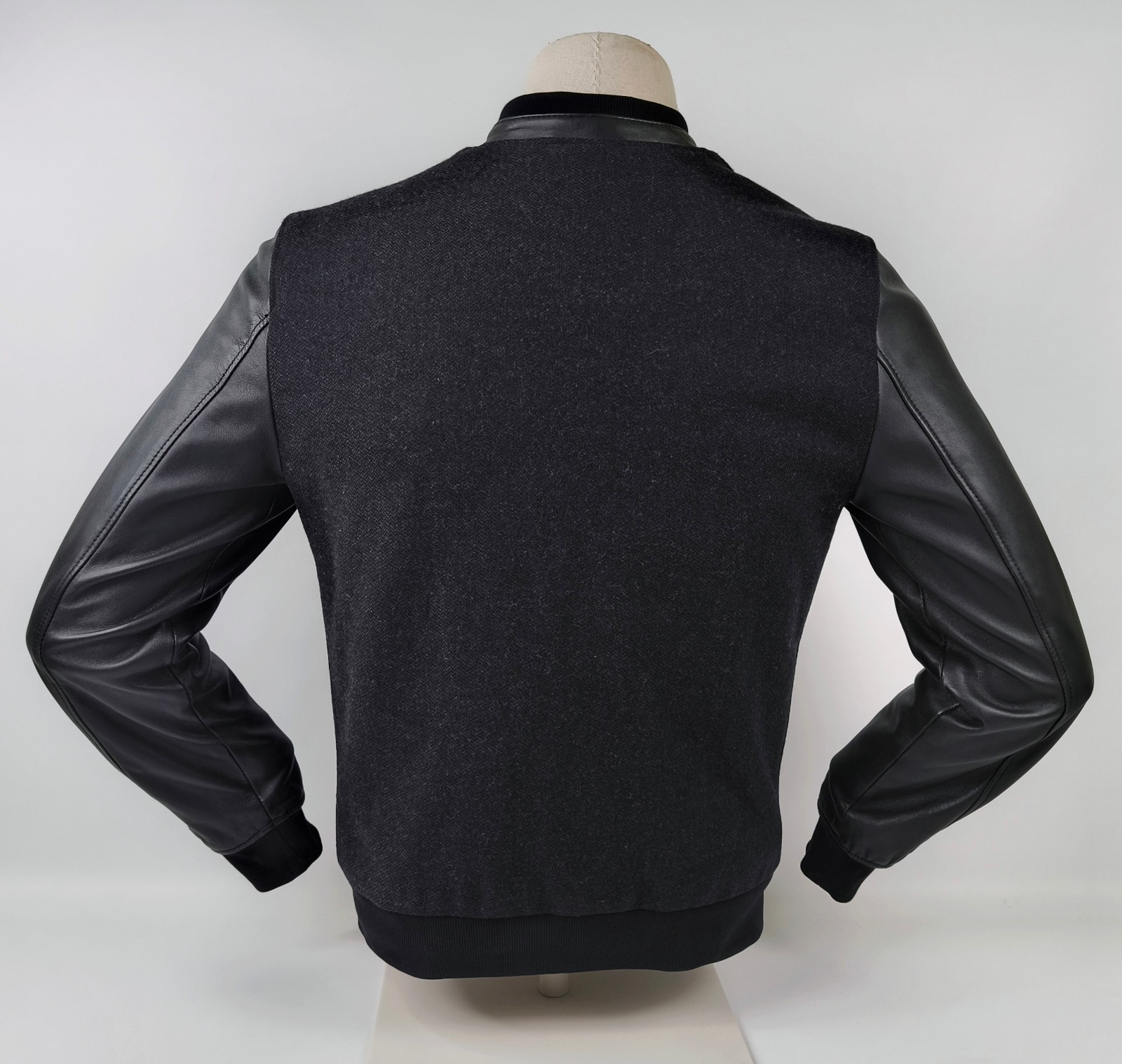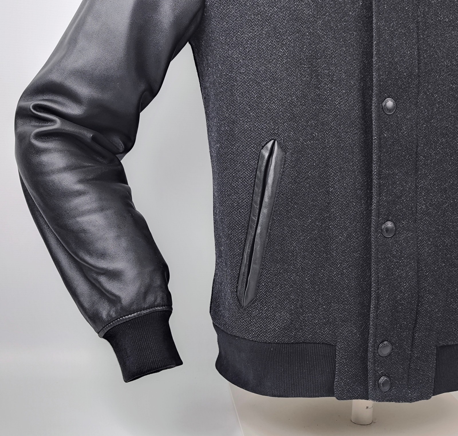 Chevignon Jacke Lederärmel anthrazit / schwarz Gr. M Wolle / Leder Mix Logo vorn
