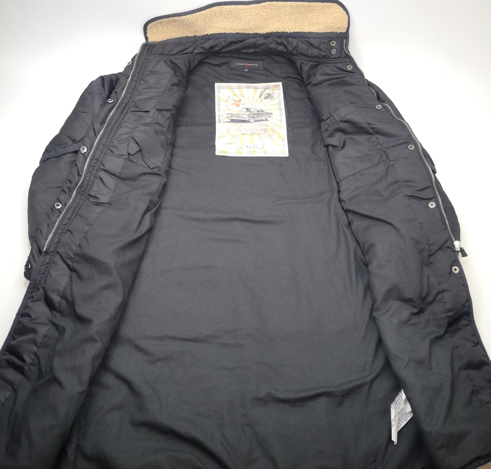 ________________________________________Marke: ChevignonModell: BosmosGröße: M Farbe: schwarz Zustand: sehr gut_______________________________________Beschreibung:Die Jacke befindet sich in einem sehr guten Zustand.Es sind nur minimale und sehr kleine Tragespuren zu erkennen.Außen, Innen sowie die Bündchen im sehr guten Zustand !Reißverschlüsse funktionieren tadellos.Zwei Außen- und zwei Innentaschen.Tolles Modell in Anlehnung an das Modell Cosmos.Bitte die Maße prüfen für eine perfekte Passform._______________________________________Die ca. Maße sind wie folgt:Brustbreite von Achsel zu Achsel: 59cmÄrmellänge ab Höhe Schulter: 70cmRückenlänge inkl. Kragenoberkante und Bund: 75cm_______________________________________Material lt. Etikett:Oberstoff:100% PolyamidFutter :65% Polyester + 35% Baumwolle_______________________________________Pflegeanleitung: professionelle Textilreinigung