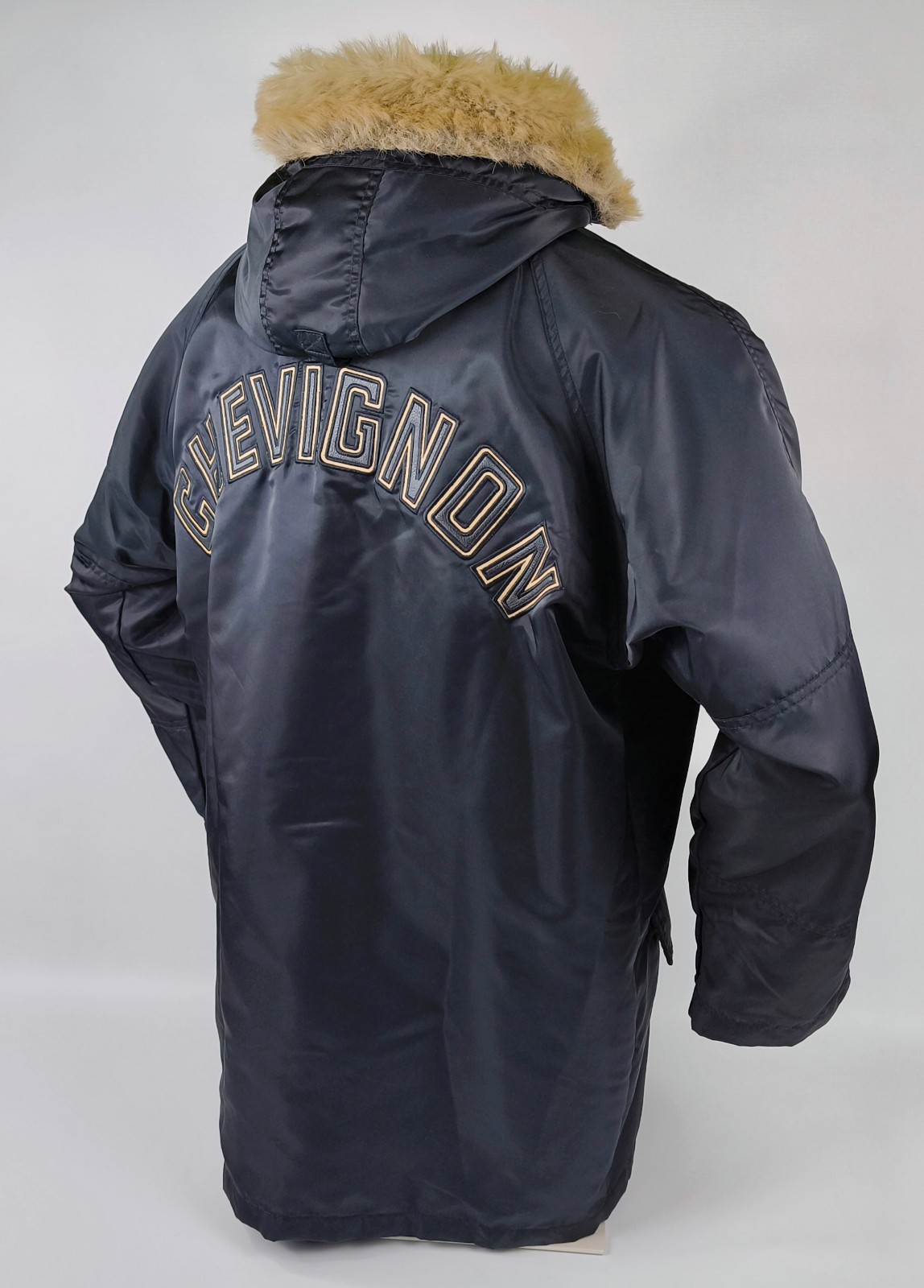 Im Vergleich mit anderen Chevignon Jacken von uns fällt sie eindeutig größer und ist eine Größe L.