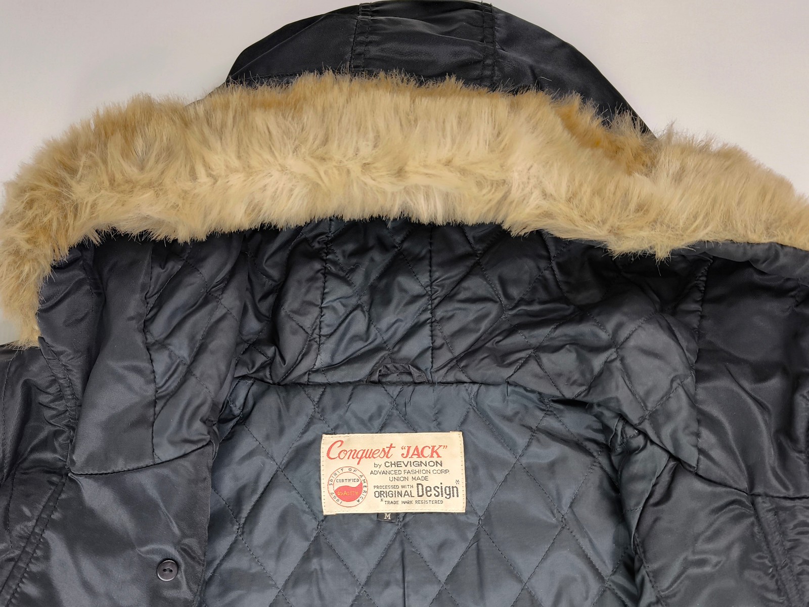 ________________________________________Marke: ChevignonFarbe: olivGröße: XXL (XL) Zustand: getragen_______________________________________Beschreibung:Die Jacke wurden getragen und befindet sich in einem sehr schönen Zustand. Außen mit leichten Trage- und Gebrauchsspuren und super gut erhalten.Innenfutter in einem sehr guten Zustand.Ebenfalls die Bündchen, sehr sehr gut erhalten !Reißverschluß und Druckknöpfe an den Taschen funktionieren tadellos. Mitlerweile sehr seltenes Modell.In der Jacke ist die Größe XXL angegeben. Im Vergleich mit anderen Chevignon Jacken von uns, fällt sie kleiner und tendiert klar zur Größe XL.Typisch der Schnitte der damaligen Zeit ist sie im Brustbereich eher breit und dafür vom Rücken her kürzer geschnitten.Bitte die Maße prüfen für eine perfekte Passform._______________________________________Die ca. Maße sind wie folgt:Brustbreite von Achsel zu Achsel: 67cmÄrmellänge ab Höhe Schulter: 70cmRückenlänge inkl. Kragen und Bund: 68cm_______________________________________Material lt. Etikett:Außen / Innen: 100% Nylon_______________________________________Pflegeanleitung:Maschinenwäsche 30 Grad