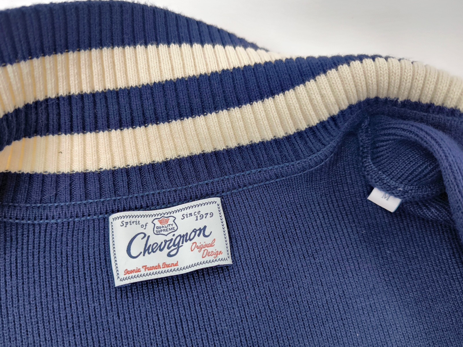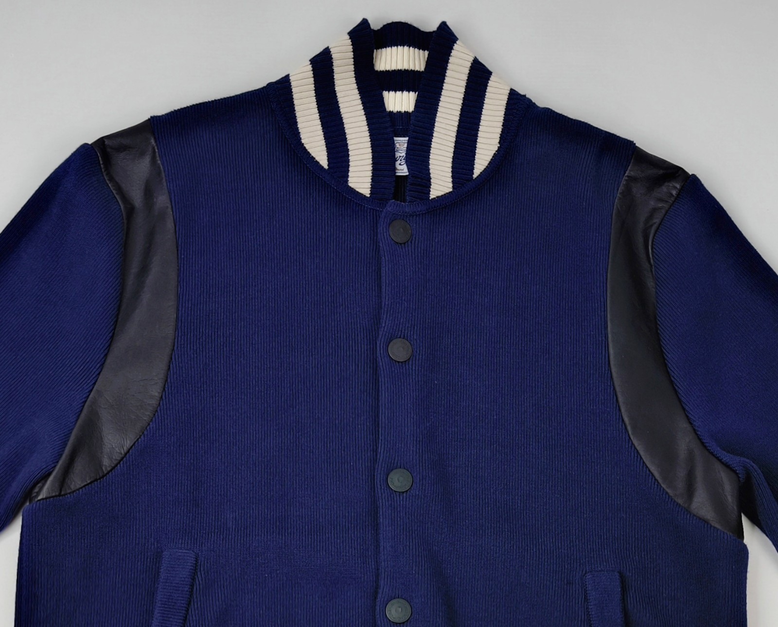 Chevignon Jacke Strickjacke dunkelblau Gr. M (S) mit Lederapplikation und Logo