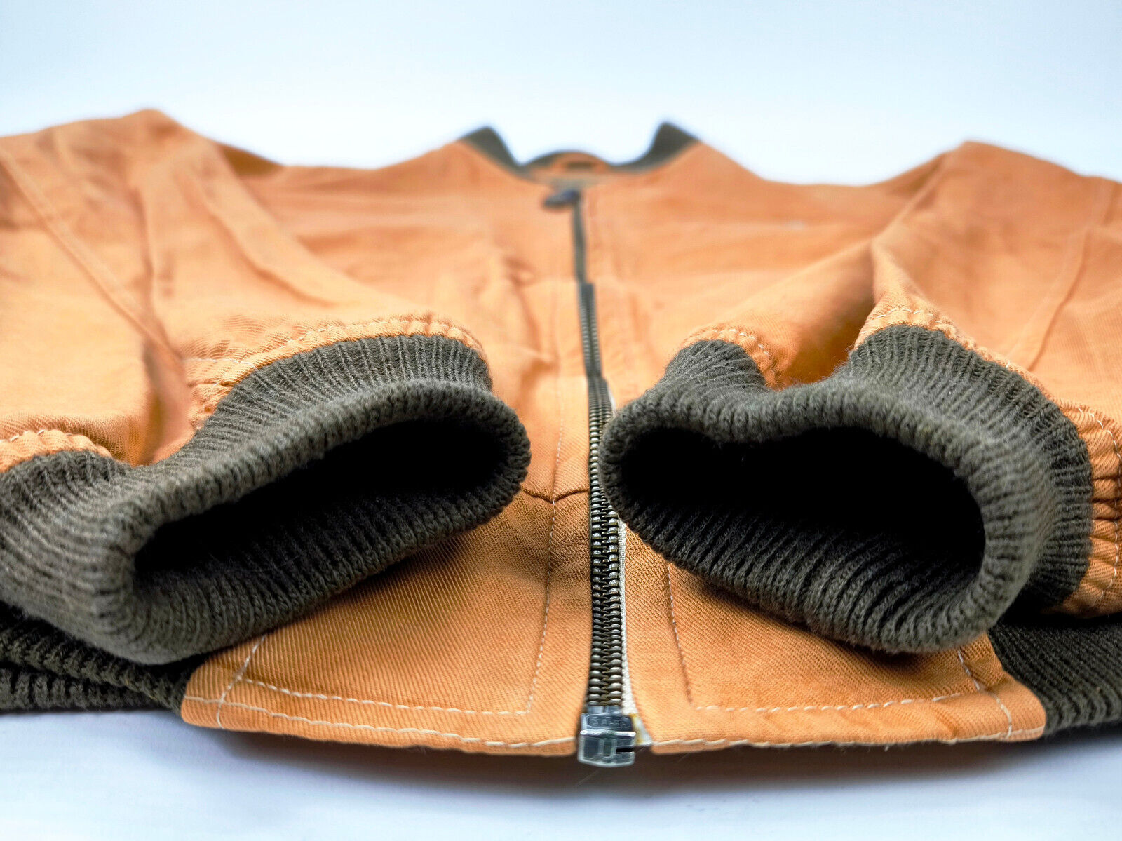 _______________________________________ Marke: ChevignonFarbe: Innen beige / Lederärmel lachsfarbenGröße: L Zustand: getragen _______________________________________ Beschreibung:Chevignon Herren Jacke mit russischer Label Schrift auf dem Rücken.Die Jacke befindet sich in einem sehr schönen Zustand.Leichte Gebrauchsspuren im beigen Baumwollbereich.Lederärmel sehr gut erhalten !Innenfutter ganz leichte Scheuerung über dem Bund und unter dem Kragen.Sonst sehr schön erhalten.Bündchen...sehr schön !Druckknöpfe schließen tadellos.Sehr alte und seltene Chevignon Jacke im immer noch tollen Zustand ! _______________________________________ Die ca.Maße sind wie folgt:Brustbreite von Achsel zu Achsel: 63cmÄrmellänge ab Schulter: 67cmRückenlänge inkl. Kragen und Bund: 66cm _______________________________________ Material lt Innenetikett:Außen:Ärmel 100% Leder und innen 100% BaumwolleFutter: 100% Acetate _______________________________________ Pflegeanleitung:professionelle Textilreinigung