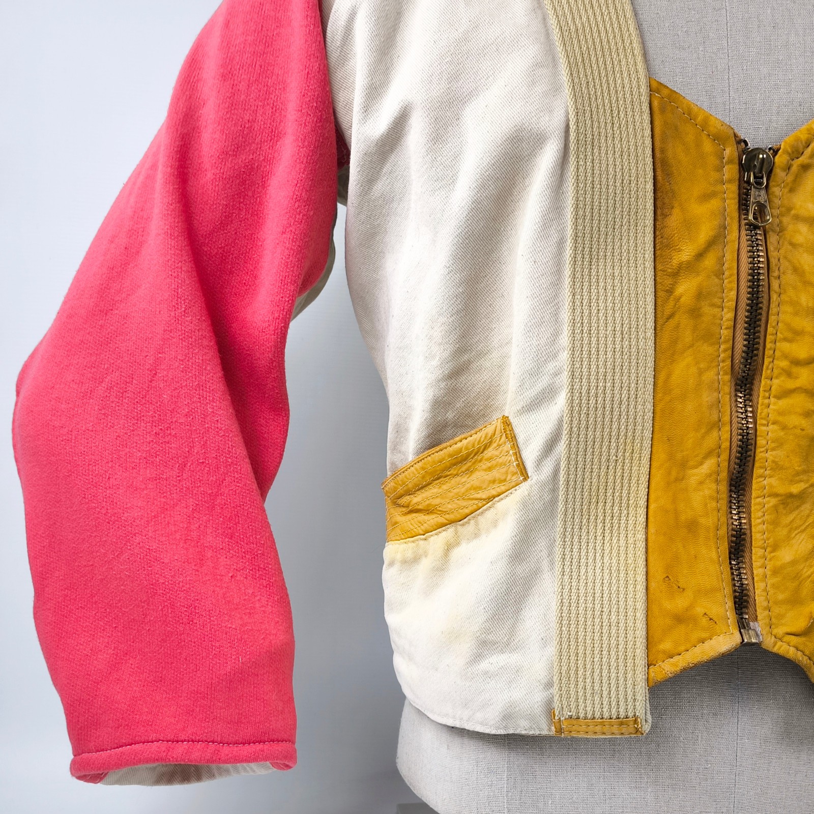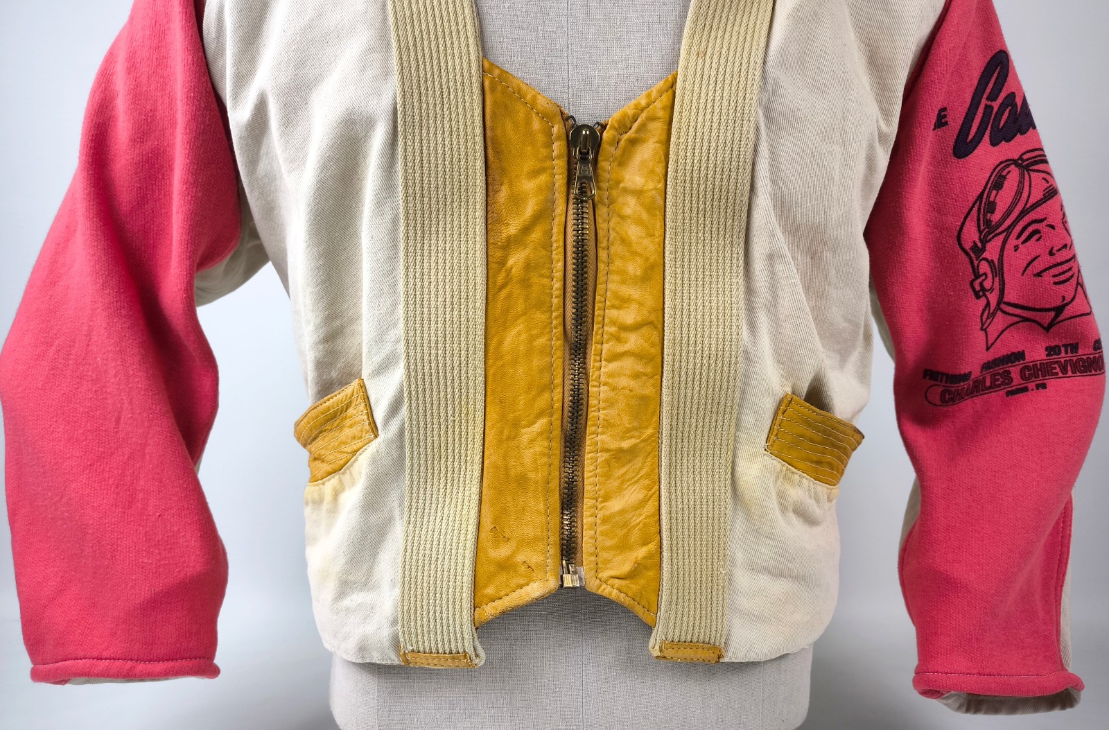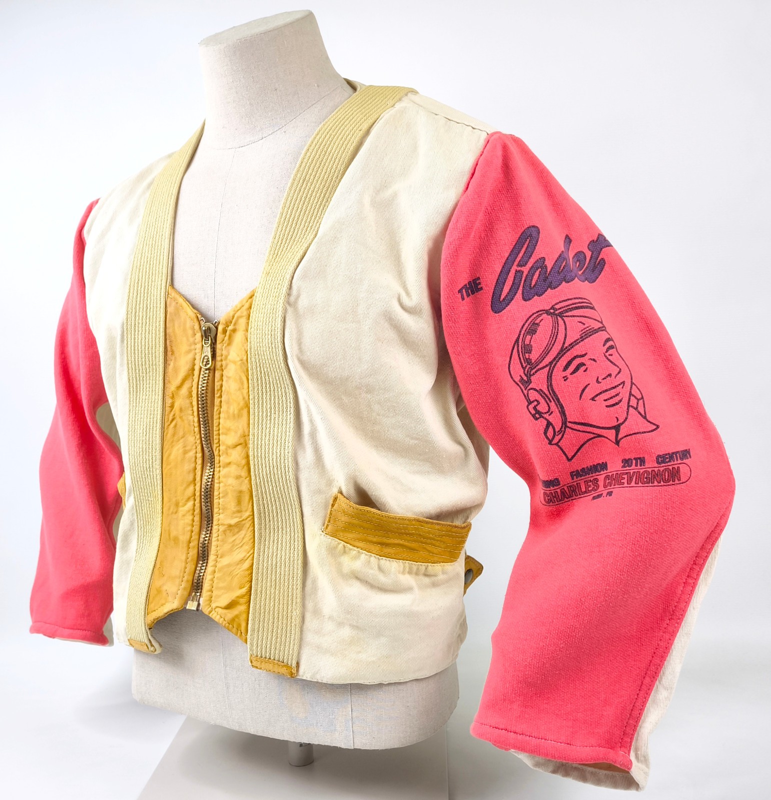 Chevignon Jacke THE CADET Gr. S (M) naturfarben rot / Leder Stoff Mix vintage