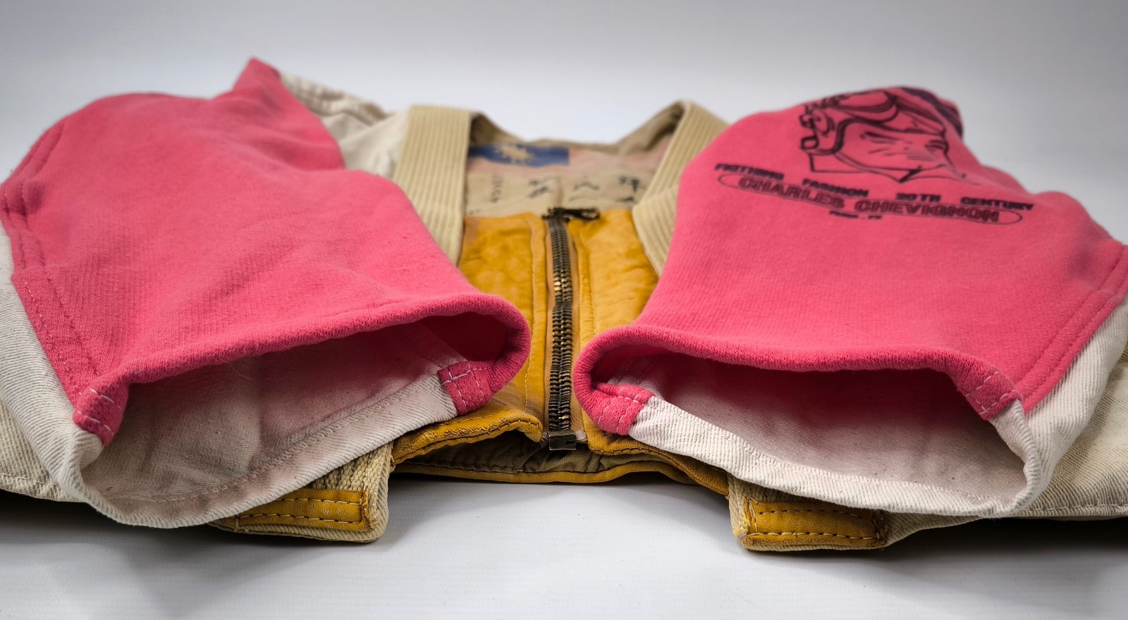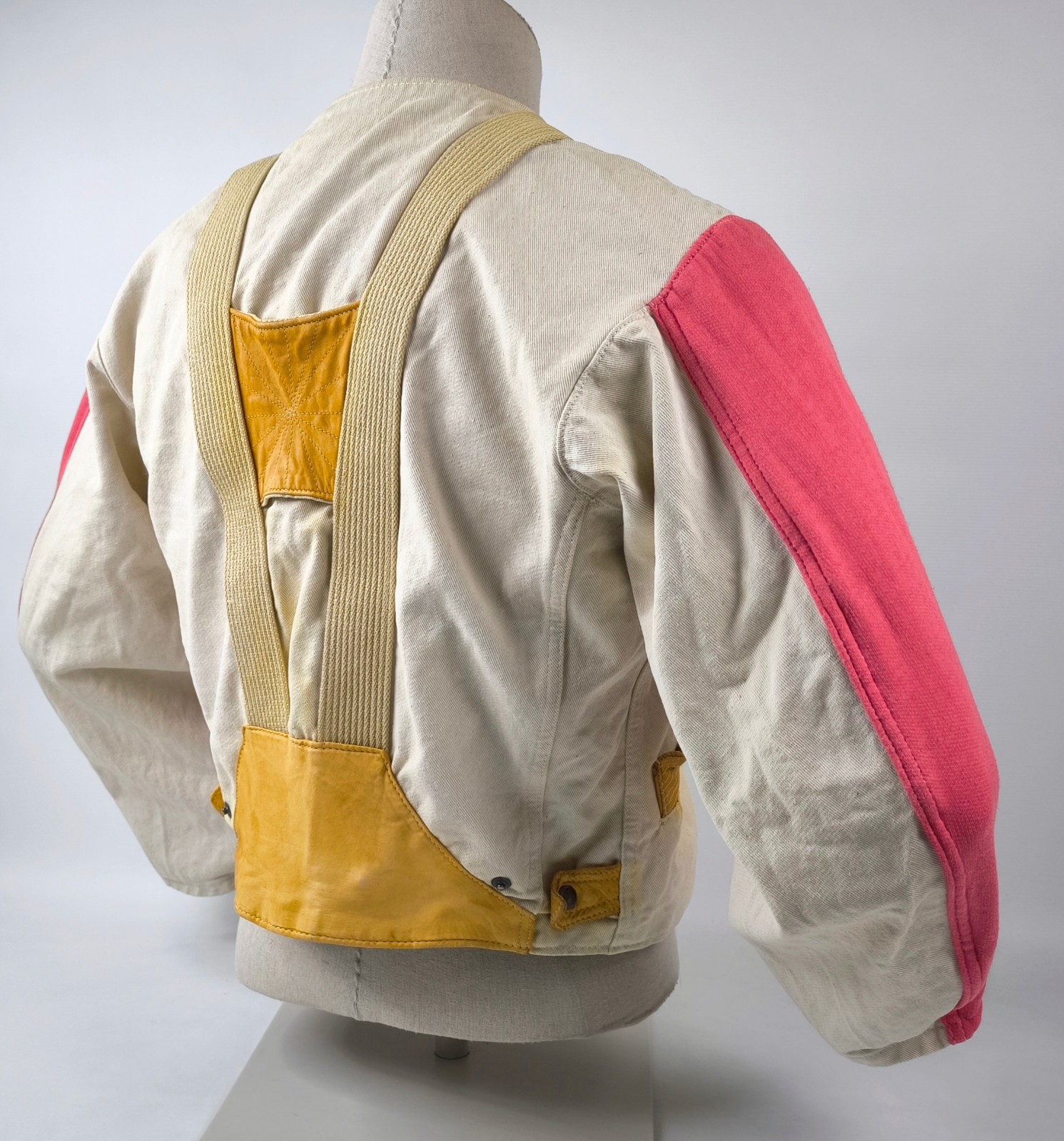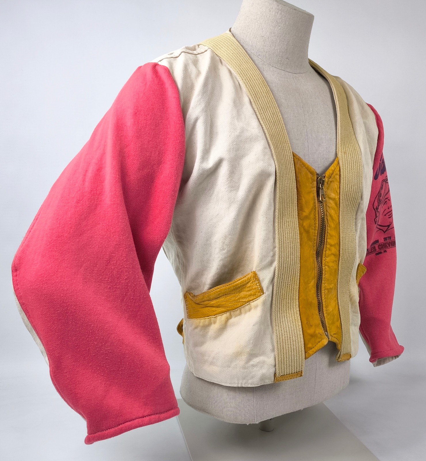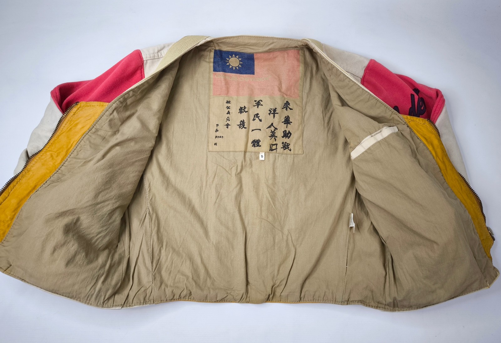Chevignon Jacke THE CADET Gr. S (M) naturfarben rot / Leder Stoff Mix vintage