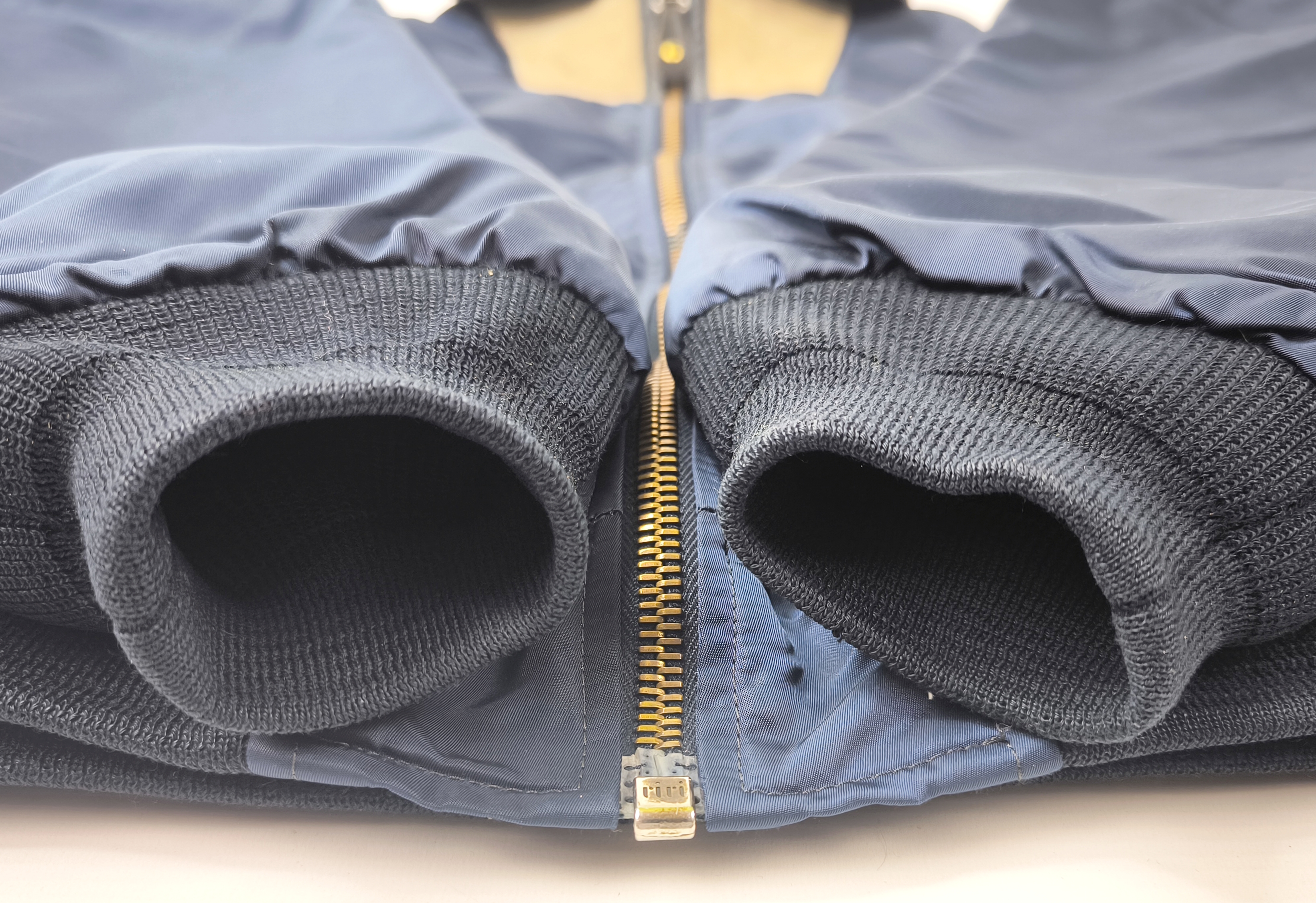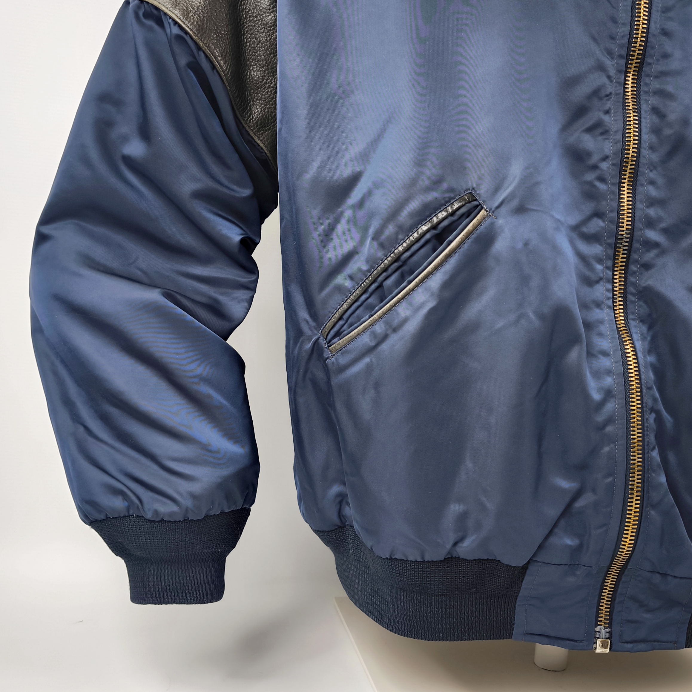 ________________________________________Marke: ChevignonFarbe: dunkelblauGröße: M Zustand: getragen_______________________________________Beschreibung:Die Jacke wurde getragen und befindet sich in einem sehr schönen Zustand. Es sind nur wenige und dann kleine Trage- und Gebrauchsspuren zu erkennen.Außen mit wenigen und kleinen Trage- und Gebrauchsspuren und super gut erhalten.Innenfutter im sehr guten Zustand.Ebenfalls die Bündchen, ganz leichte Trage- und Gebrauchsspuren und super gut erhalten.Reißverschluß funktioniert tadellos. Zwei Außen- und eine Innentasche.Lammfell / Lammleder im Kragenbereich.Lederabsetzung in schwarz an den Schultern und den Außentaschen mit wunderschöner leichter Patina.Typisch der Schnitte der damaligen Zeit, ist die Jacke im Brustbereich breit und vom Rücken her recht kurz geschnitten.Die Größe ist keine Größe zu finden. Im Vergleich mit anderen Chevignon Jacken von uns, fällt sie wie eine Größe M.Bitte die Maße prüfen für eine perfekte Passform._____________________________________Die ca. Maße sind wie folgt:Brustbreite von Achsel zu Achsel: 63cmÄrmellänge ab Höhe Schulter: 68cmRückenlänge inkl. Kragen und Bund: 67cm_______________________________________Material:Außen+Futter / Kragen / Schultern: 100% Nylon - 100% Baumwolle / 100% Lammleder / 100% Leder (Rind)_______________________________________Pflegeanleitung:professionelle Textilreinigung