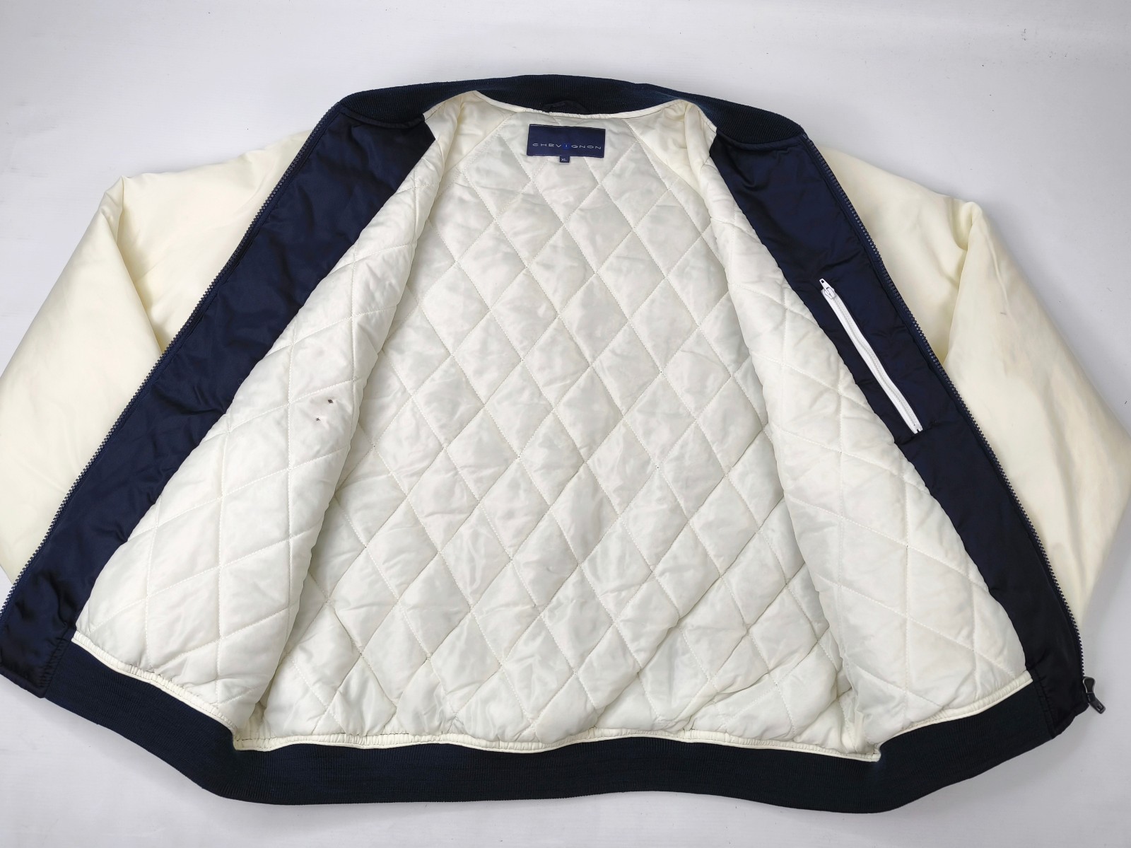 Preisvorschlag für Chevignon Jacke dunkelblau /natur Gr. XL Baseball College großes Rückenlogo
