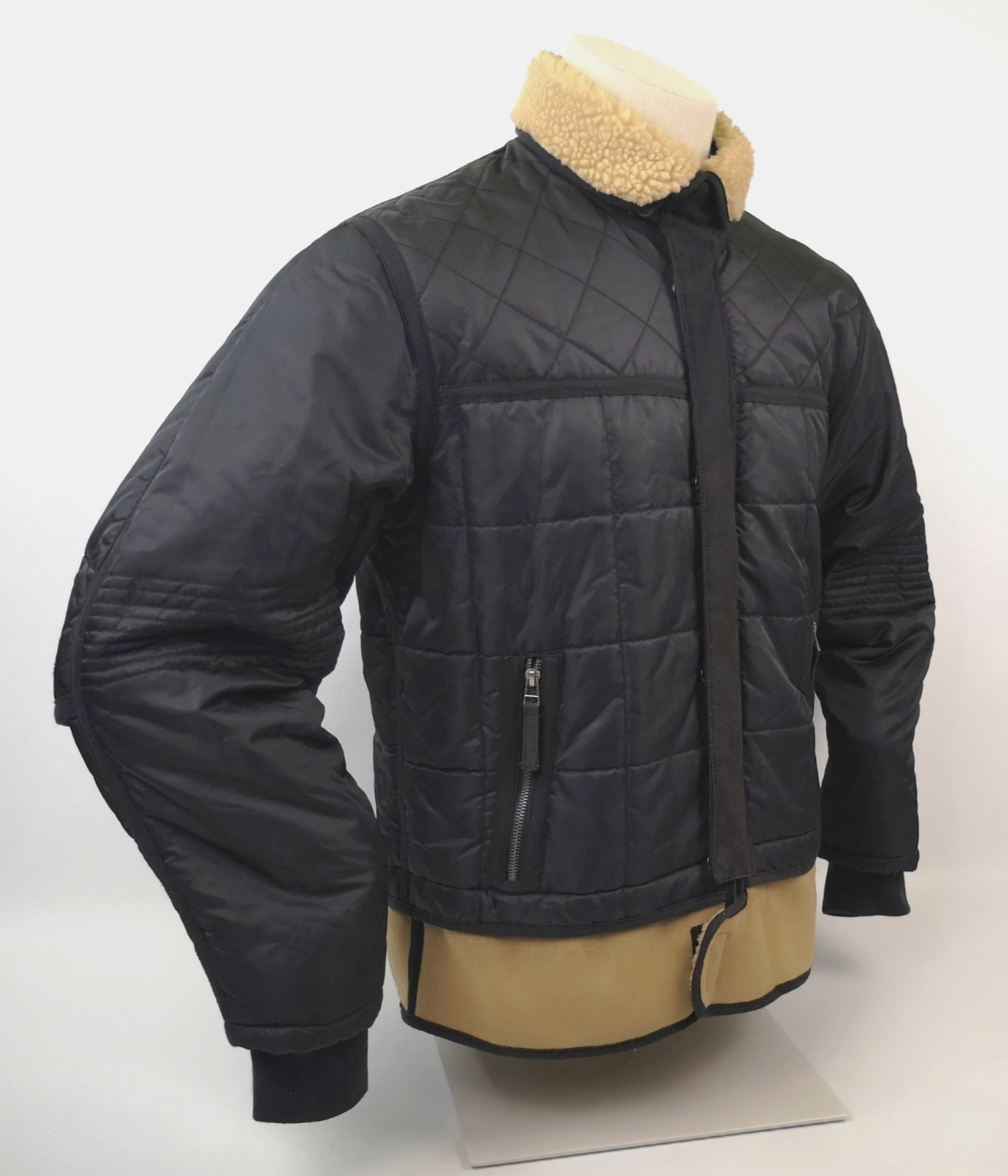 ________________________________________Marke: ChevignonModell: BarronarGröße: XL (L)Farbe: schwarz Zustand: sehr gut_______________________________________Beschreibung:Die Jacke befindet sich in einem sehr guten Zustand. Es sind nur wenige und dann sehr kleine Tragespuren zu erkennen.Innenfutter mit minimalsten Tragespuren und sehr gut erhalten.Leder außen mit ganz leichter Patina, antik (light used) hergestellt und sehr gut im Zustand.Breitenverstellbare Bündchen ebenfalls sehr gut erhalten.Reißverschlüsse und funktionieren tadellos.Sehr robuste Lederjacke aus Büffel-Leder.In der Jacke ist die Größe XL angegeben. Im Vergleich mit anderen Chevignon Jacken von uns fällt sie etwas kleiner und tendiert zu einer Größe XL, da sie auch etwas schmaler geschnitten ist. Bitte die Maße beachten für eine perfekte Passform. _______________________________________Die ca. Maße sind wie folgt:Brustbreite von Achsel zu Achsel: 56cmÄrmellänge ab Höhe Schulter: 70cmRückenlänge inkl. Kragen und Bund: 70cm_______________________________________Material lt. Etikett:Oberstoff: 100% Leder (Büffel-Leder)Futter+Füllung: 100% Polyester_______________________________________Pflegeanleitung:professionelle Lederreinigung