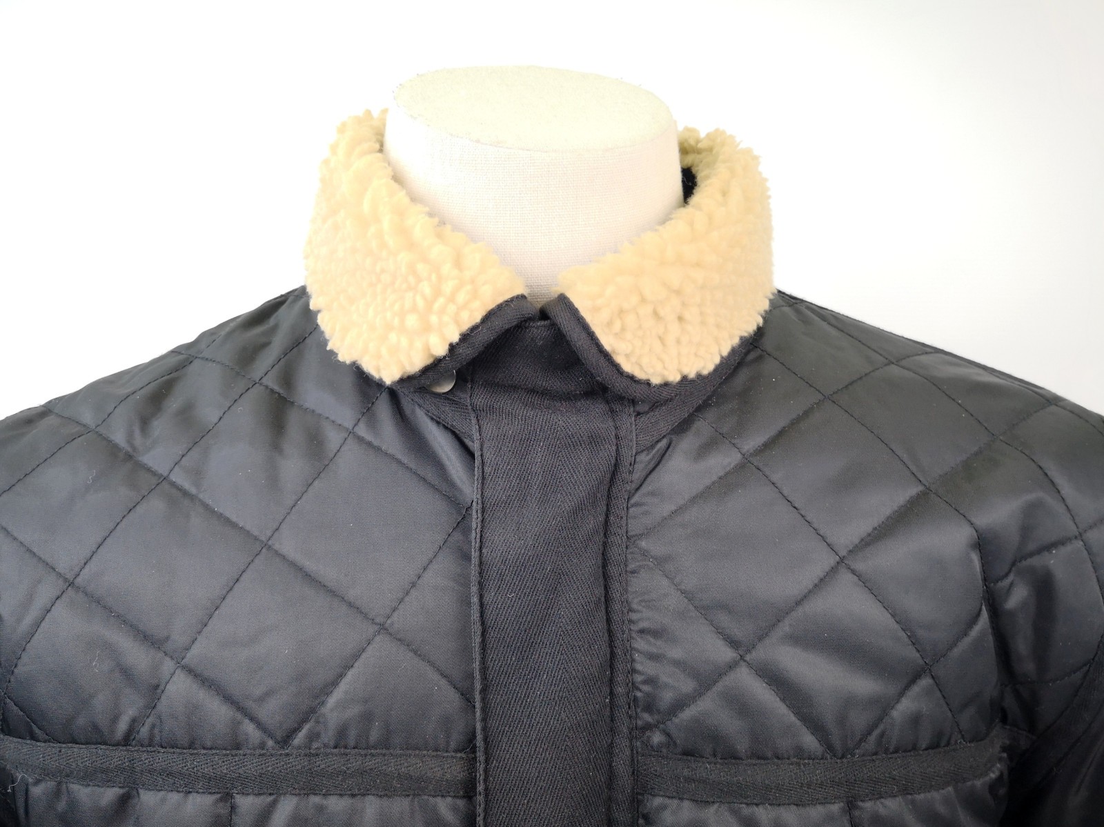 _______________________________________ Marke: ChevignonGröße: MFarbe: dunkelblau / schwarz Zustand: sehr gut _______________________________________ Beschreibung:Die Jacke befindet sich in einem sehr guten Zustand !Es sind nur wenige und dann kleine Tragespuren zu erkennen !Innenfutter sehr schön, ebenfalls die Bündchen.Lammleder Ärmel auch hier sehr guter Zustand.Druckknöpfe schließen tadellos.Sehr schönes Logo auf dem Rücken.Bitte die Maße beachten für eine perfekte Passform. _______________________________________ Die ca. Maße sind wie folgt:Brustbreite von Achsel zu Achsel: 51cmÄrmellänge ab Schulternaht Leder: 66cmRückenlänge inkl. Kragen und Bund: 65cm _______________________________________ Material:Ärmel:100% LammlederInnenbereich:70% Baumwolle / 30% PolyesterFutter: 65% Baumwolle / 35% Polyester _______________________________________ Pflegeanleitung:professionelle Textilreinigung