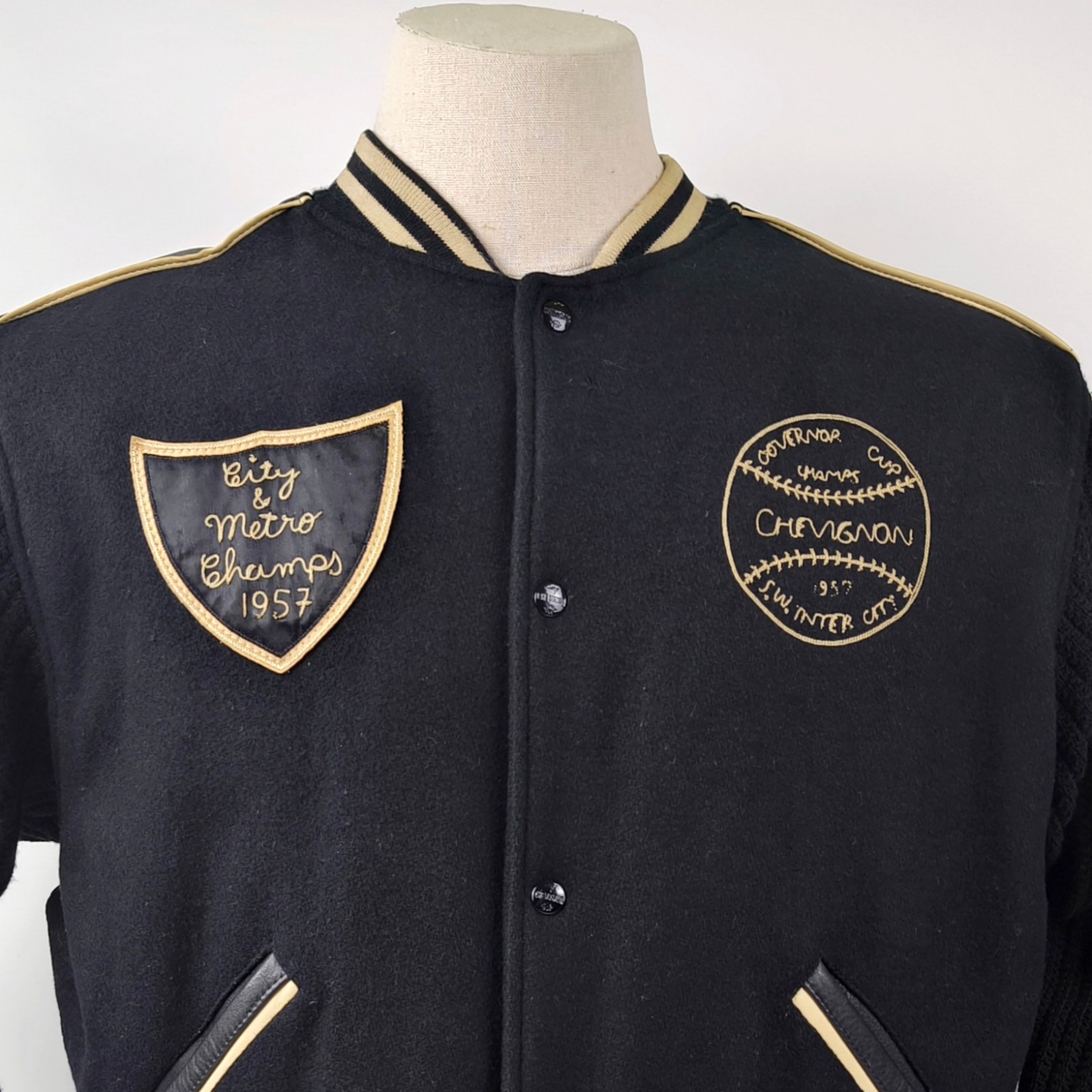 Chevignon Jacke schwarz Gr. XL (L) vorn Wolle hinten Daunen mit Steppung vintage