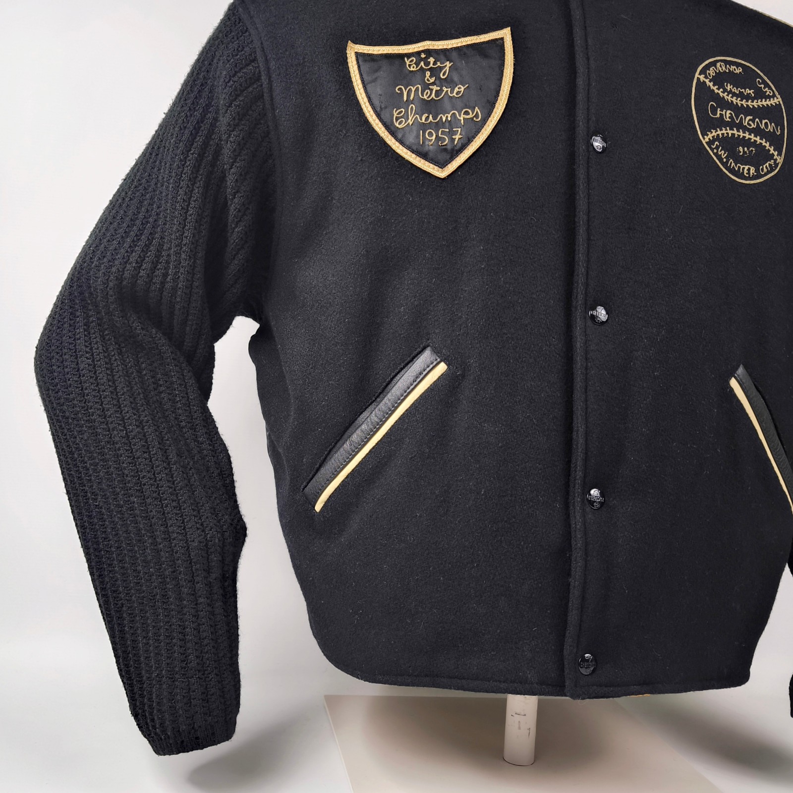 "Chevignon Jacke schwarz Gr. XL (L) vorn Wolle hinten Daunen mit Steppung vintage"