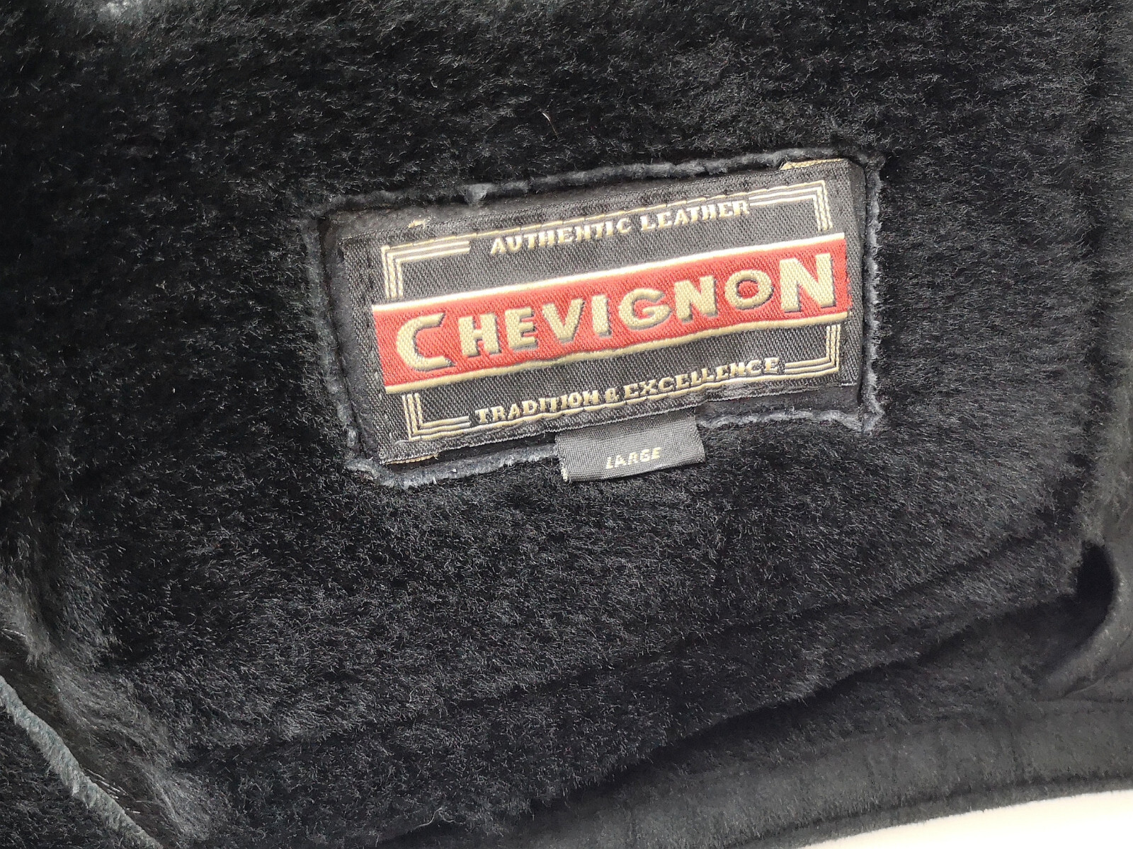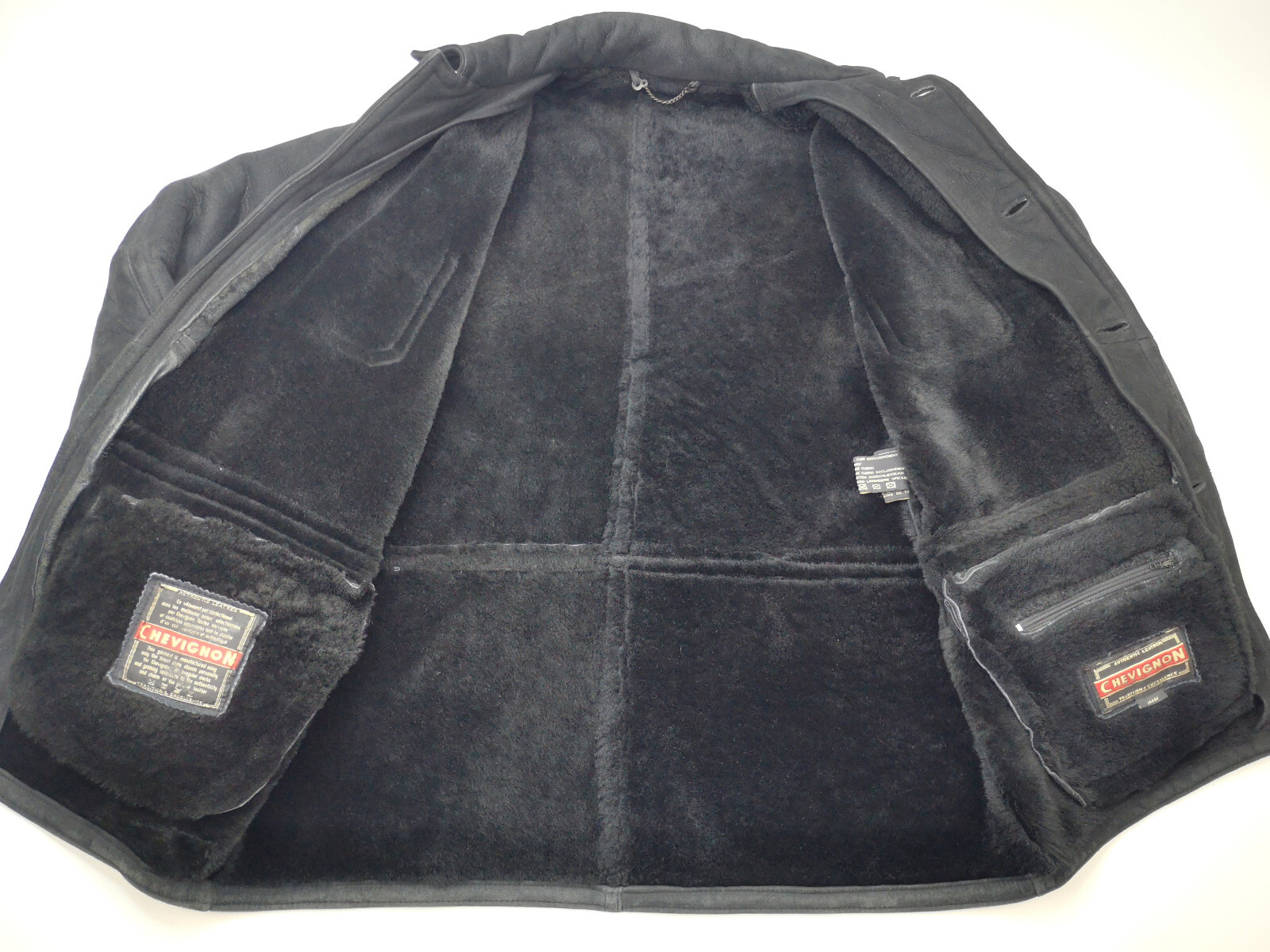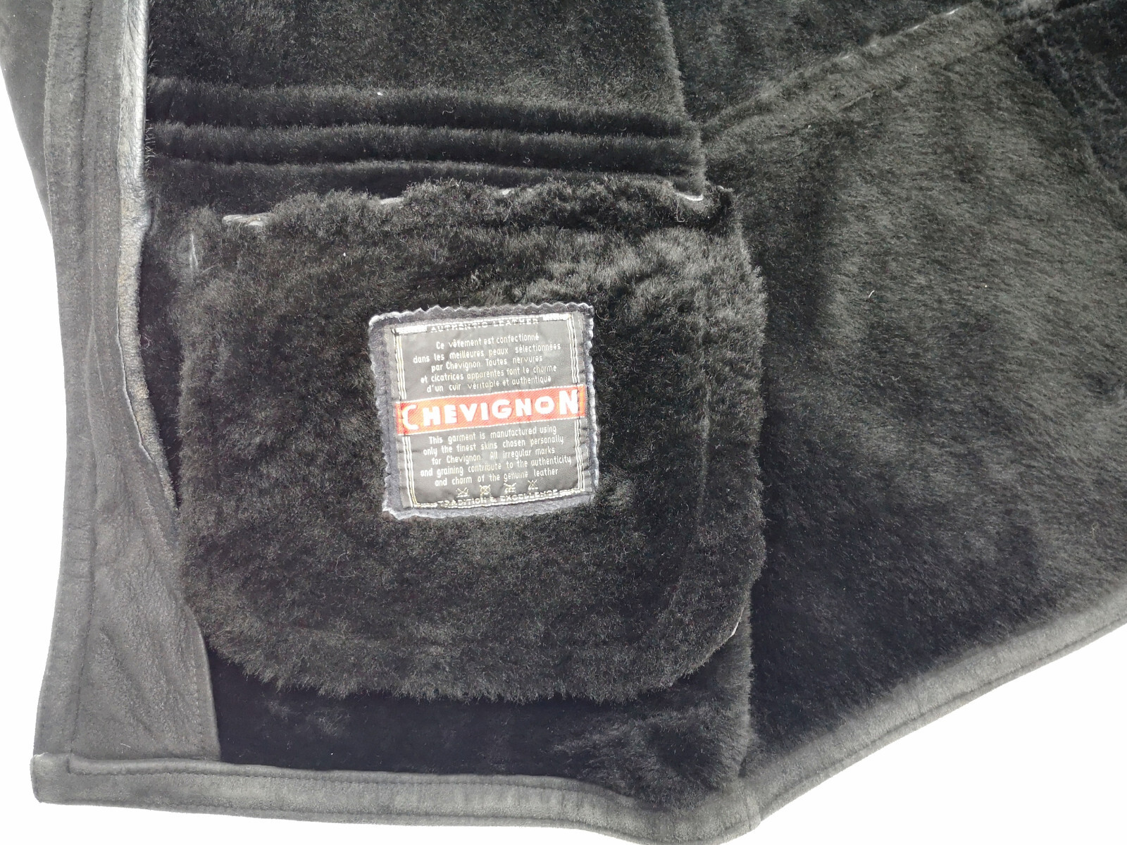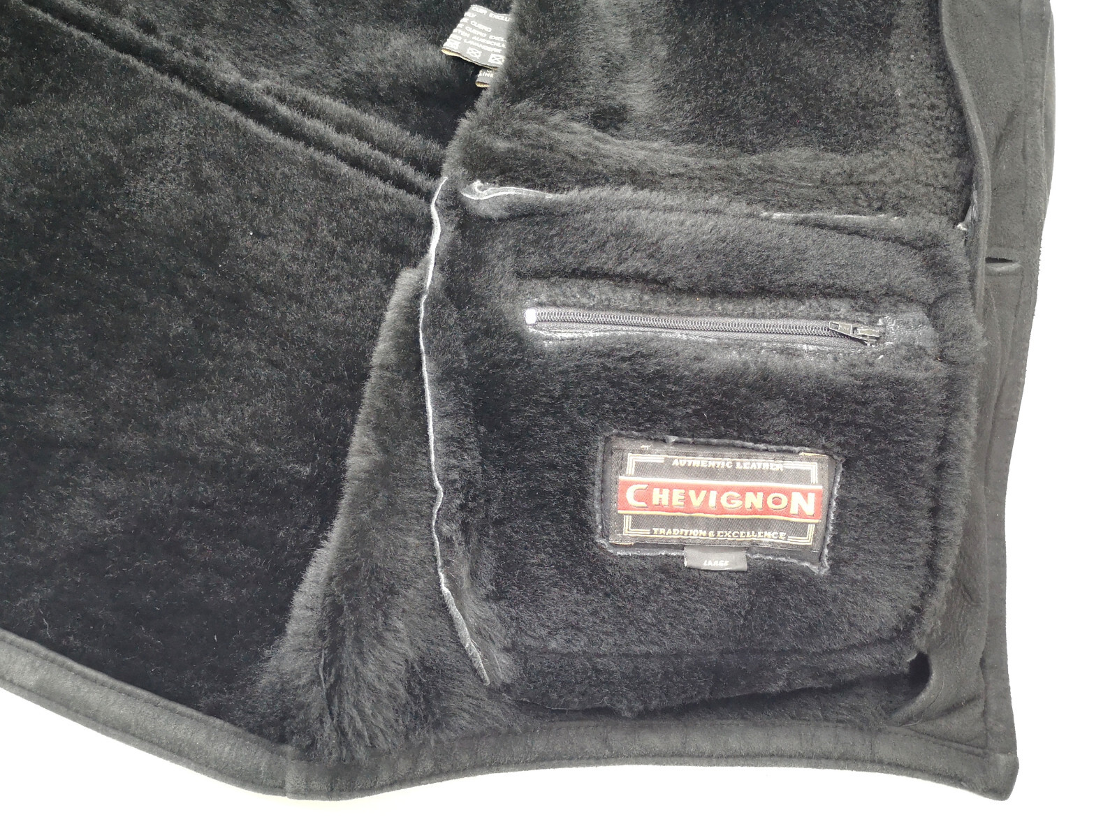 Chevignon Lammfell Lederjacke Mantel schwarz Gr. L