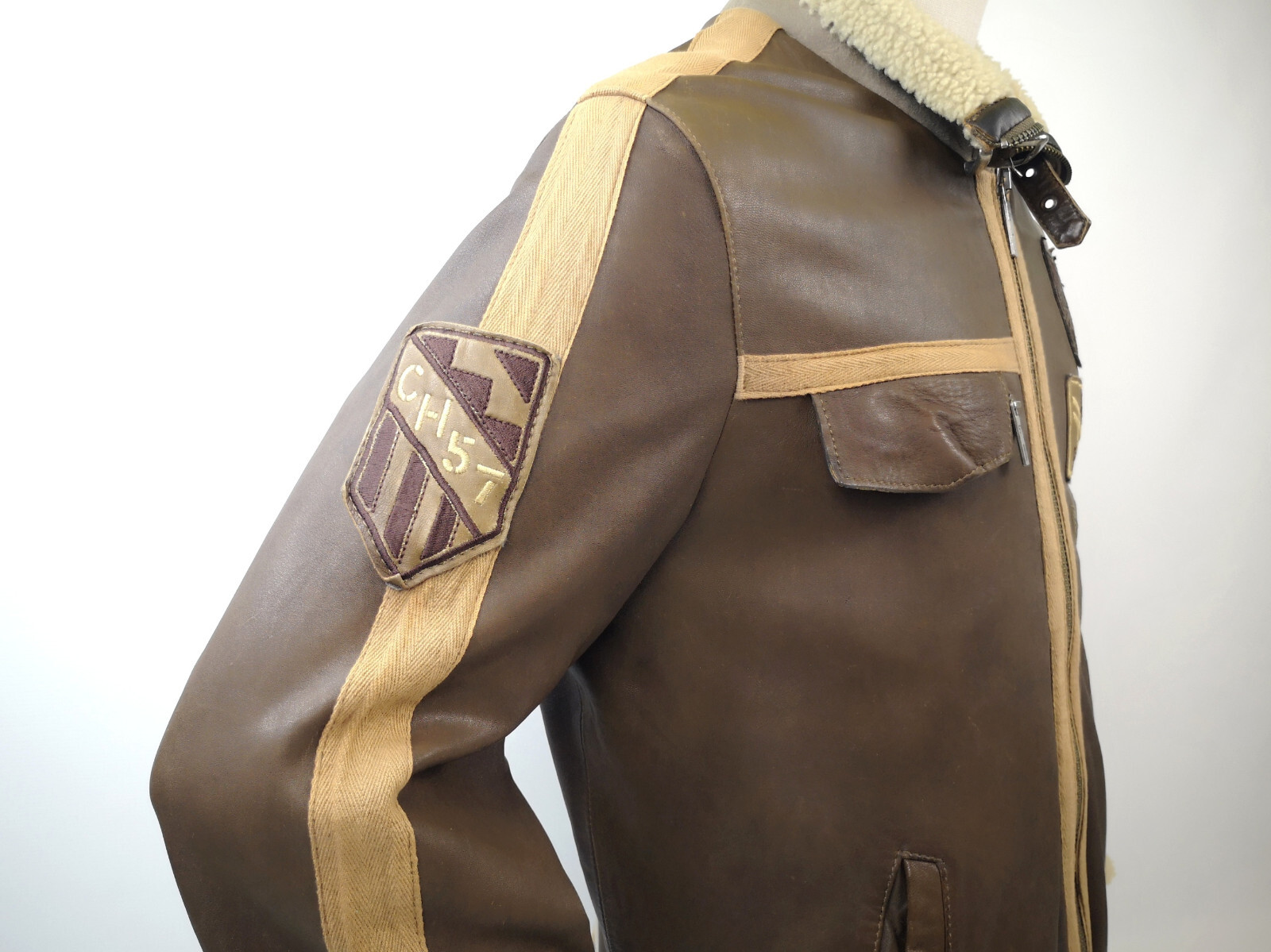 ________________________________________Marke: ChevignonGröße: L (M)Farbe: braun / braun meliert Zustand: sehr gut________________________________________Beschreibung:Die Jacke befindet sich in einem sehr guten Zustand.Es sind nur wenige und dann sehr kleine Tragespuren zu erkennen.Außenbereich Wolle innen sehr gut erhalten.Lederärmel in braun mit sehr kleinen Tragespuren und auch hier, sehr schön im Zustand.Innenfutter sehr guter Zustand.Bündchen mit leichten Tragespuren und ebenfalls, super gut erhalten.Der Hauptreißverschluß, die darüberliegende Druckknopfleiste und die Druckköpfe an den Taschen funktionieren tadellos.In der Jacke ist die Größe L angegeben. Im Vergleich mit anderen Chevignon Jacken von uns, fällt sie kleiner und fällt ganz klar aus wie eine Größe M.Die Jacke fällt recht schmal.Bitte die Maße prüfen für eine perfekte Passform.________________________________________Die ca. Maße sind wie folgt:Brustbreite von Achsel zu Achsel: 54cmÄrmellänge ab Höhe Schulter: 71cmRückenlänge inkl. Kragen und Bund: 68cm________________________________________Material lt. Innenlabel:Oberstoff Ärmel / Innenbereich: 100% Leder / 70% Wolle + 30% andere Materialien_______________________________________Pflegeanleitung:professionelle Textilreinigung