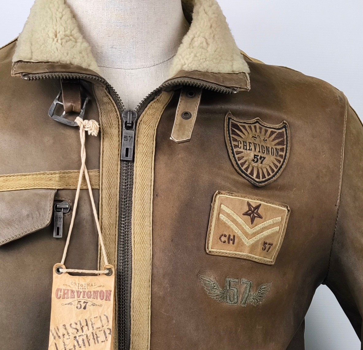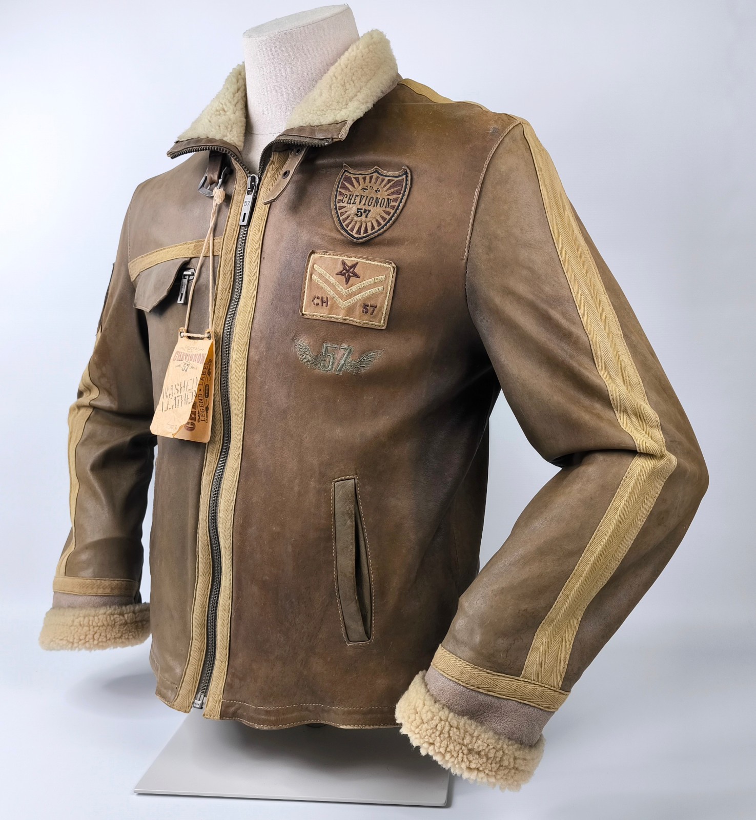 Preisvorschlag für Chevignon Lederjacke 57 braun antik washed Gr. L (M) Broken NEU und Ungetragen