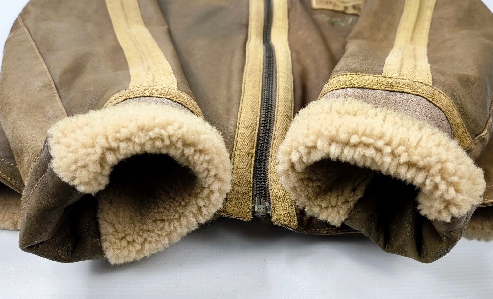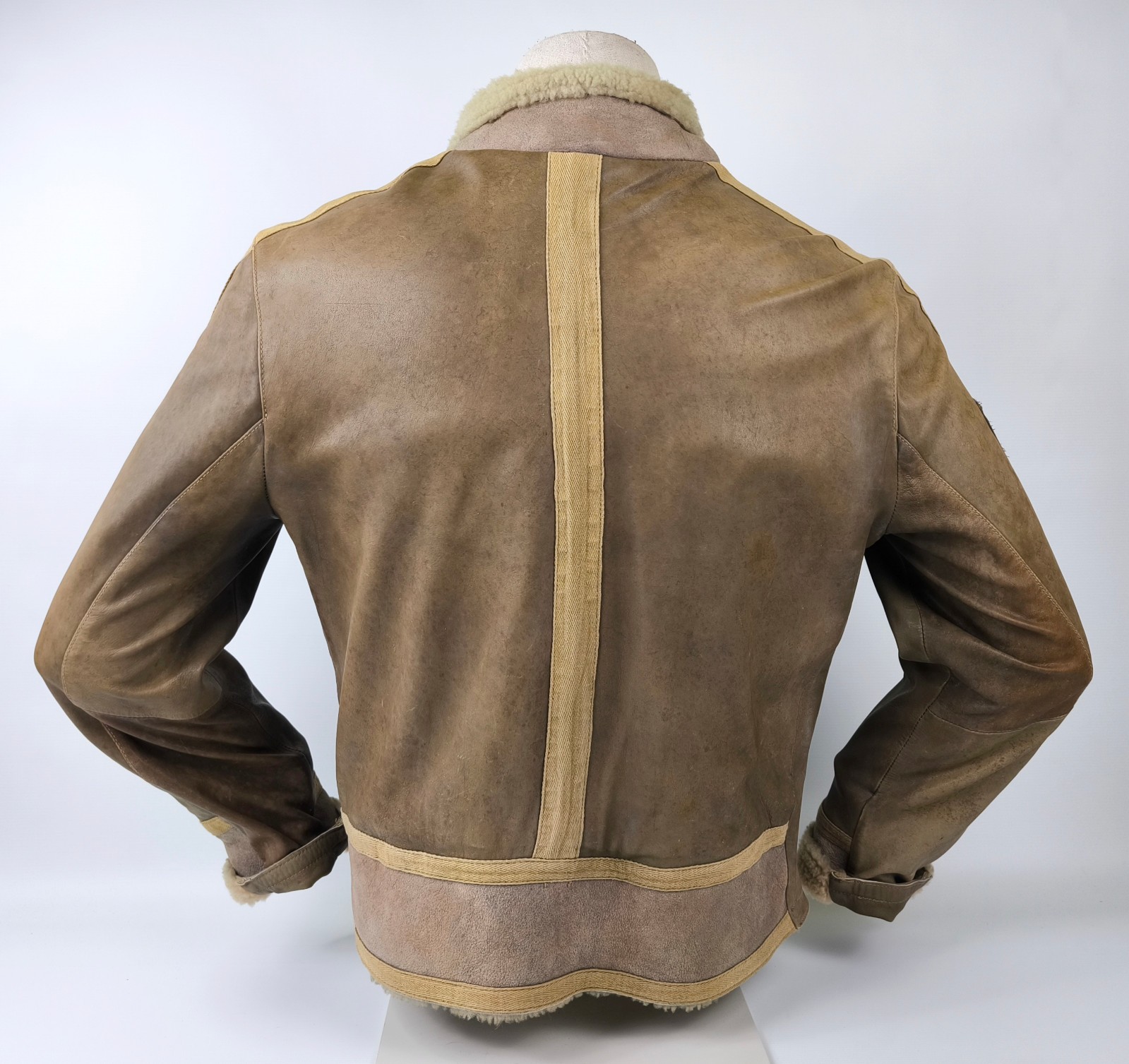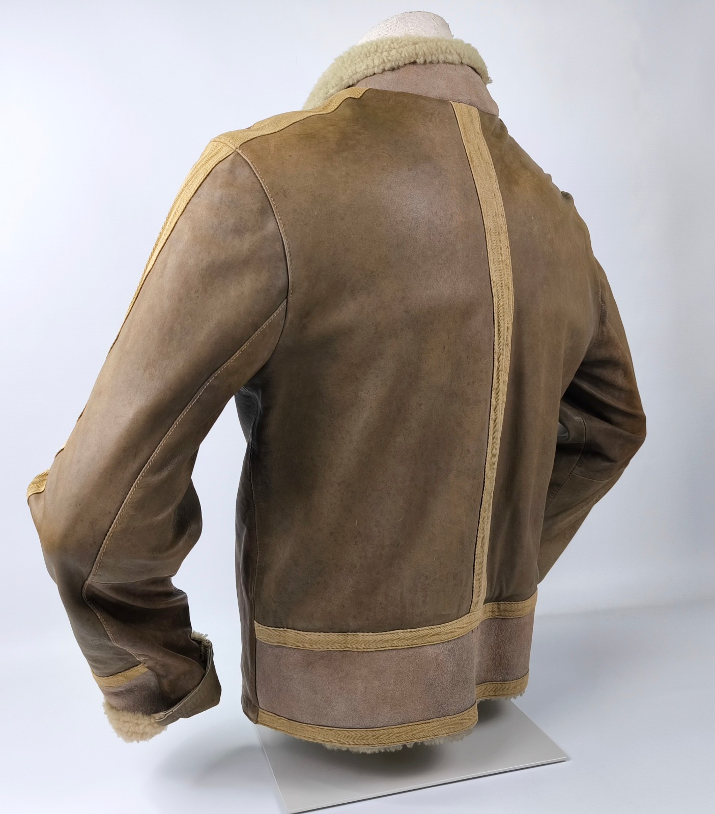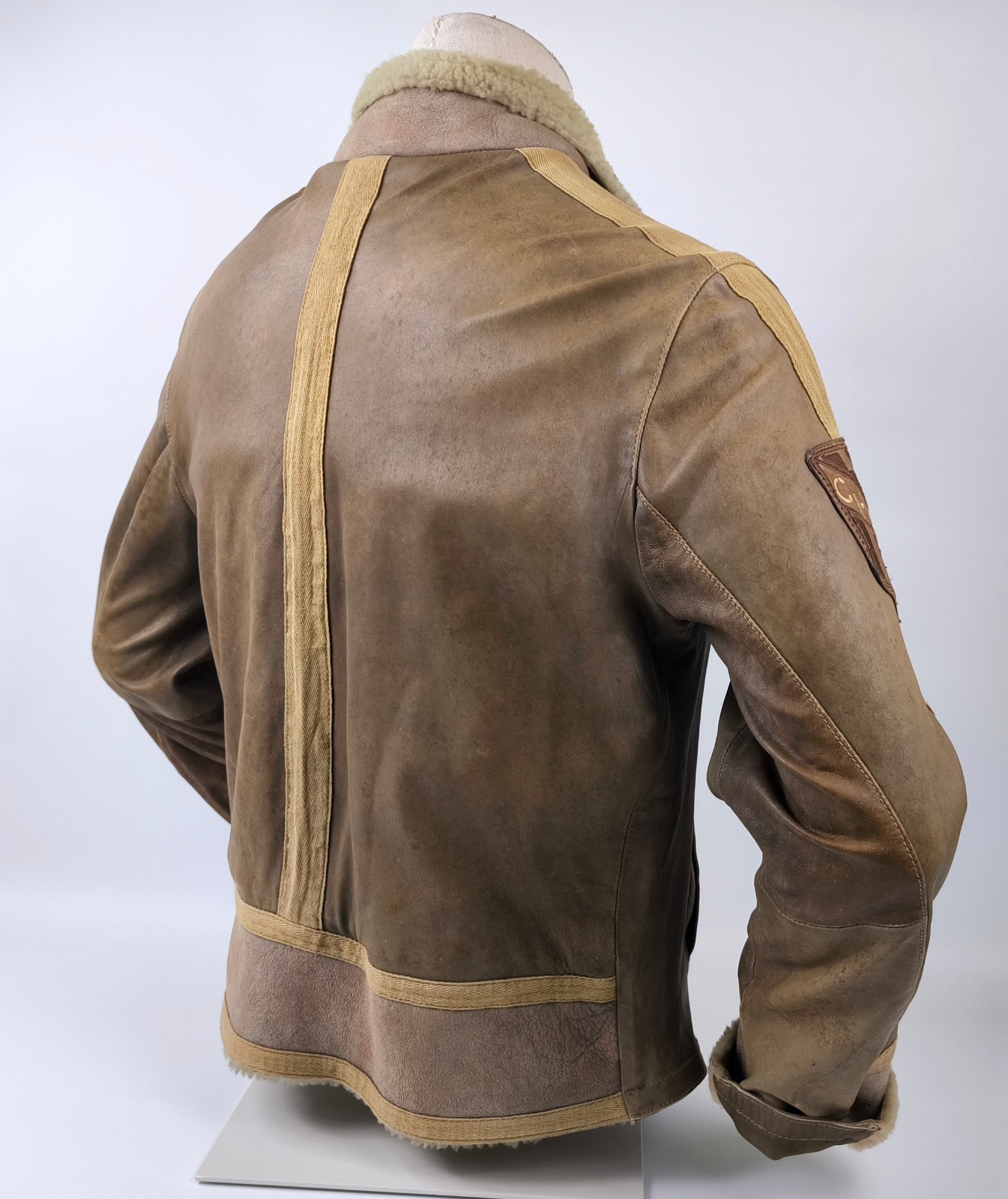 ________________________________________Marke: ChevignonModell: BoumeGröße: XXL (XL)Farbe: naturfaben Zustand: ausgezeichnet_______________________________________Beschreibung:Die Jacke befindet sich in einem ausgezeichneten Zustand. Es sind nur minimalste und nahezu nicht sichtbare Tragespuren zu erkennen.Außen sowie Innen !Reißverschlüsse und Druckknöpfe an den Taschen funktionieren tadellos.Lammfell Einsätze im Brustbereich, an den Ärmelenden und dem unteren Rücken.Braune Ledereinsätze im vorderen Bereich.Eine sehr schöne Materialkombination aus Lammfell, echtem Leder und Baumwolle.Tadelloser Zustand einer tollen Jacke !In der Jacke ist die Größe XXL angegeben. Im Vergleich mit anderen Chevignon Jacken von uns fällt sie etwas kleiner und tendiert ganz leicht zu einer Größe XL. Bitte die Maße beachten für eine perfekte Passform. _______________________________________Die ca. Maße sind wie folgt:Brustbreite von Achsel zu Achsel: 69cmÄrmellänge ab Höhe Schulter: 74cmRückenlänge inkl. Kragen und Bund: 78cm_______________________________________Material lt. Etikett:Oberstoff: 100% Leder (Lamm / Rind) / BaumwolleFutter+Füllung: 100% Polyester_______________________________________Pflegeanleitung:professionelle Textilreinigung