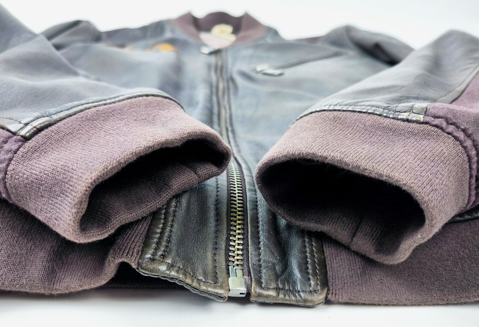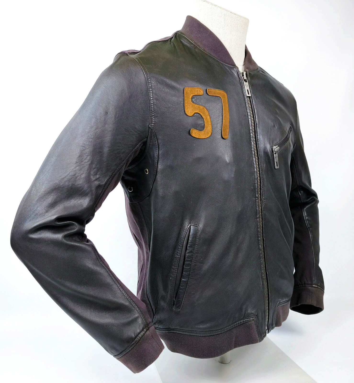 ________________________________________ Marke: ReplayGröße: LFarbe: schwarz Zustand: sehr gut ________________________________________ Beschreibung:Die Jacke befindet sich in einem sehr guten Zustand.Es sind nur minimalste und sehr kleine Tragespuren zu erkennen.Jede dieser Jacken ein Unikat durch die gewollten used Effekte am schwarz, am hellen Leder sowie den großen Buchstaben auf dem Rücken.Weitenregulierbare Armenden.Logo auf der linken Brustseite und dem Rücken.Tolle Jacke im used Look.Bitte die Maße beachten für eine perfekte Passform. ________________________________________ Die ca. Maße sind wie folgt:Brustbreite von Achsel zu Achsel: 55cmÄrmellänge ab Ärmelnaht Schulter: 64cmRückenlänge inkl. Kragen und Bund: 67cm ________________________________________ Material lt. Innenetikett:Oberstoff:50% Baumwolle / 50% PVCFutter:100% Polyester ________________________________________ Pflegeanleitung:professionelle Textilreinigung