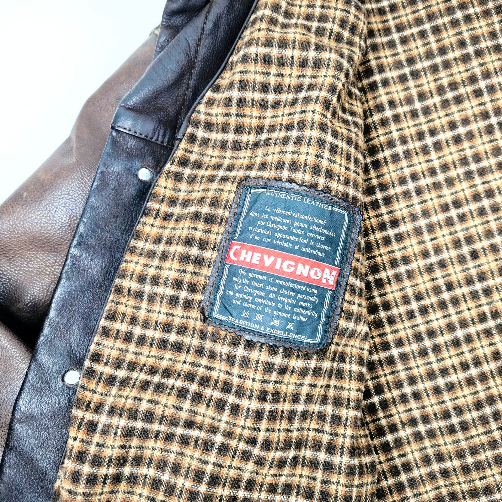 ________________________________________Marke: ChevignonGröße: L (M)Farbe: braun / braun meliert Zustand: sehr gut________________________________________Beschreibung:Die Jacke befindet sich in einem sehr guten Zustand.Es sind nur wenige und dann sehr kleine Tragespuren zu erkennen.Außenbereich Wolle innen sehr gut erhalten.Lederärmel in braun mit sehr kleinen Tragespuren und auch hier, sehr schön im Zustand.Innenfutter sehr guter Zustand.Bündchen mit leichten Tragespuren und ebenfalls, super gut erhalten.Der Hauptreißverschluß, die darüberliegende Druckknopfleiste und die Druckköpfe an den Taschen funktionieren tadellos.In der Jacke ist die Größe L angegeben. Im Vergleich mit anderen Chevignon Jacken von uns, fällt sie kleiner und fällt ganz klar aus wie eine Größe M.Die Jacke fällt recht schmal.Bitte die Maße prüfen für eine perfekte Passform.________________________________________Die ca. Maße sind wie folgt:Brustbreite von Achsel zu Achsel: 54cmÄrmellänge ab Höhe Schulter: 71cmRückenlänge inkl. Kragen und Bund: 68cm________________________________________Material lt. Innenlabel:Oberstoff Ärmel / Innenbereich: 100% Leder / 70% Wolle + 30% andere Materialien_______________________________________Pflegeanleitung:professionelle Textilreinigung