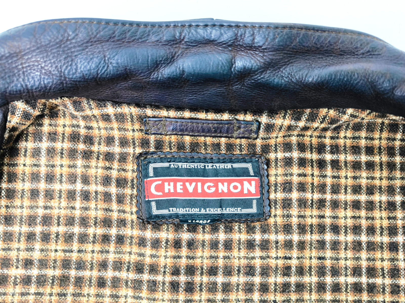 ________________________________________Marke: ChevignonGröße: LFarbe: braun Zustand: sehr gut_______________________________________Beschreibung:Die Jacke befindet sich in einem sehr guten Zustand.Leder außen mit minimaler und ganz leichter Patina und sehr gut erhalten.Sehr weiches, anschmiegsames und trotzdem sehr robustes Leder.Innenfutter und auch die Bündchen, ebenfalls sehr gut im Zustand !Reißverschlüsse und Druckknöpfe an den Innentaschen funktionieren tadellos.Ein Chevignon Flieger Blouson aus den späten 1980er Jahren.Die Jacke hat eine sehr gute Größe L und sitzt relaxed.Bitte die Maße prüfen für eine perfekte Passform._______________________________________Die ca. Maße sind wie folgt:Brustbreite von Achsel zu Achsel: 65cmÄrmellänge ab Höhe Schulter: 71cmRückenlänge inkl. Kragen und Bund: 71cm_______________________________________Material lt. Etikett:Außen / Innen:100% Leder / 100% Baumwolle-AcetatFüllung: 100% Polyester_______________________________________Pflegeanleitung: professionelle Textilreinigung